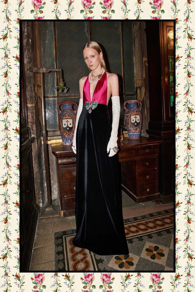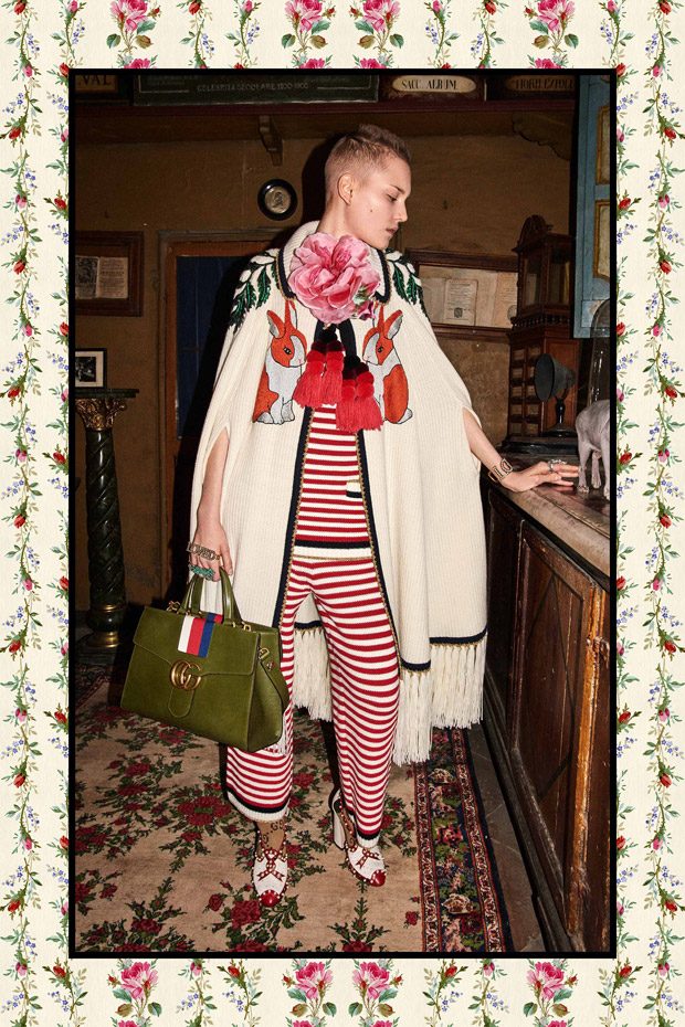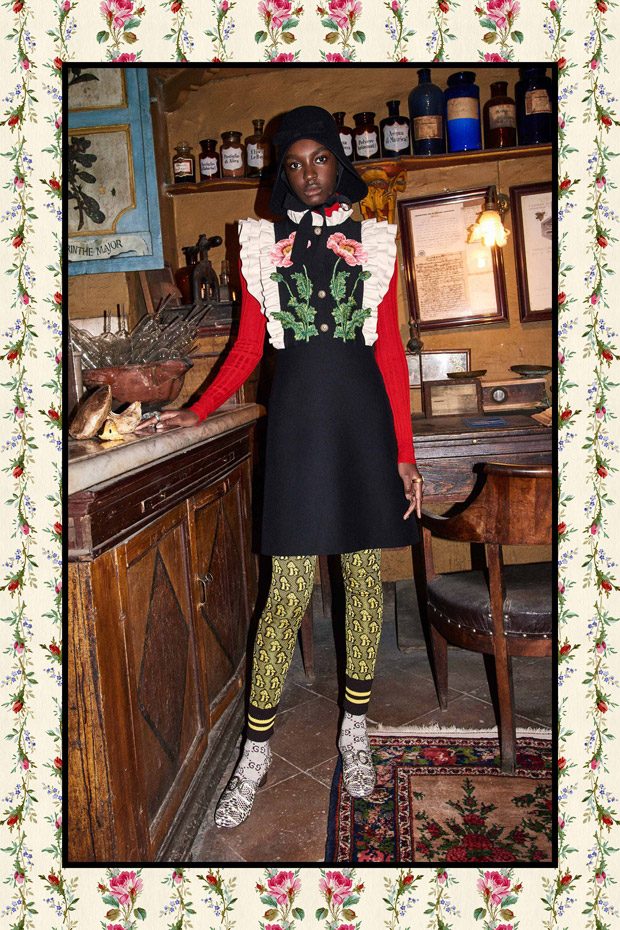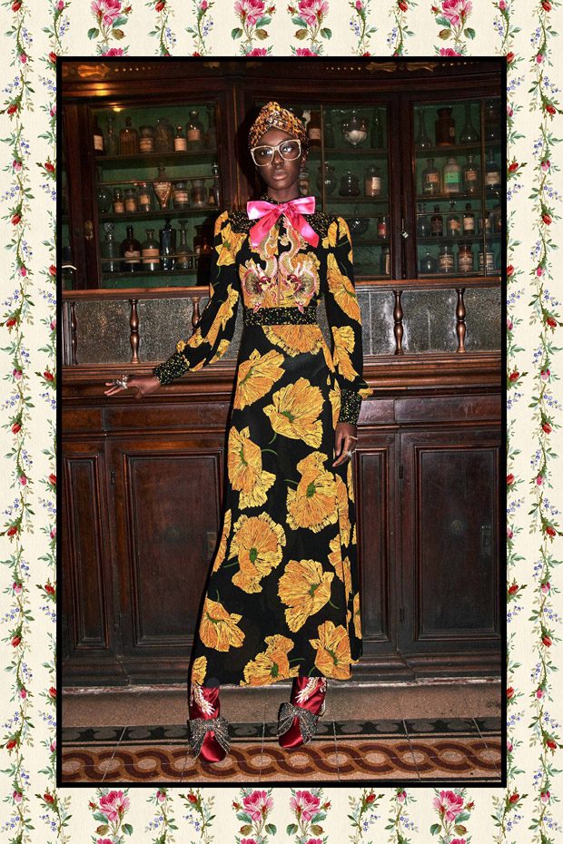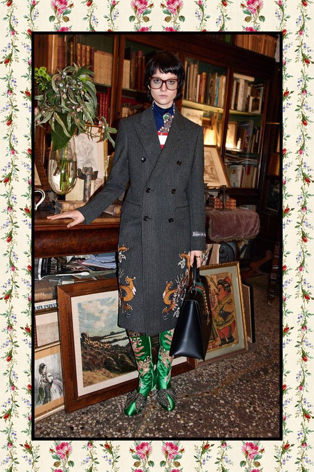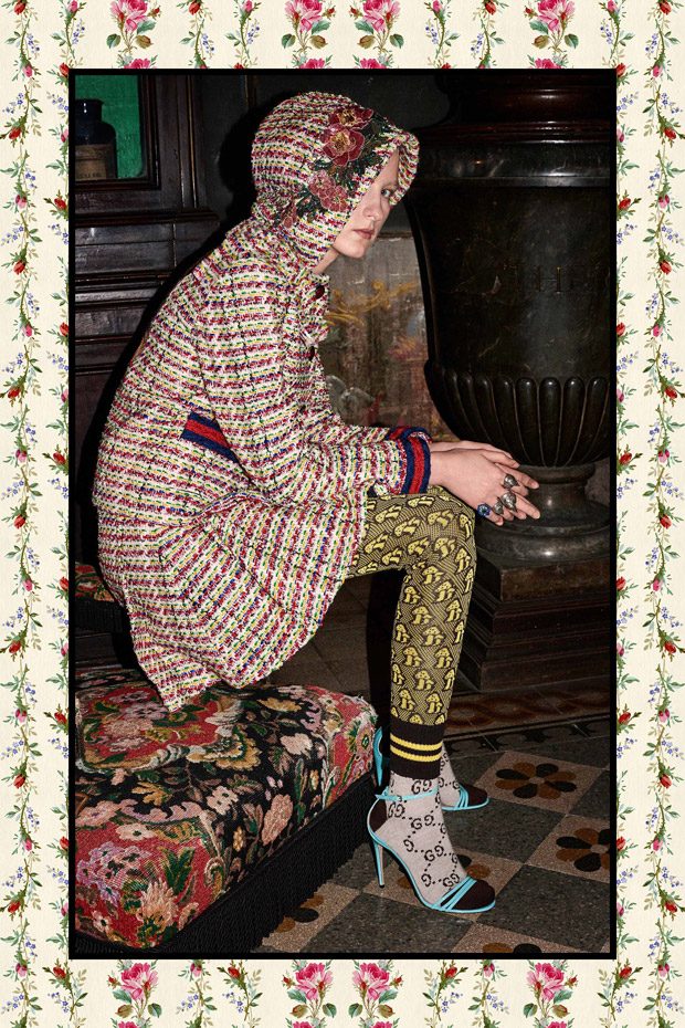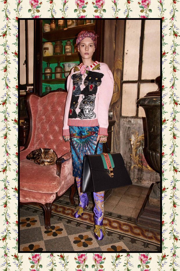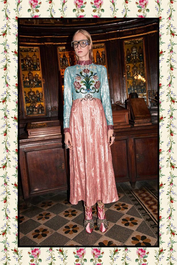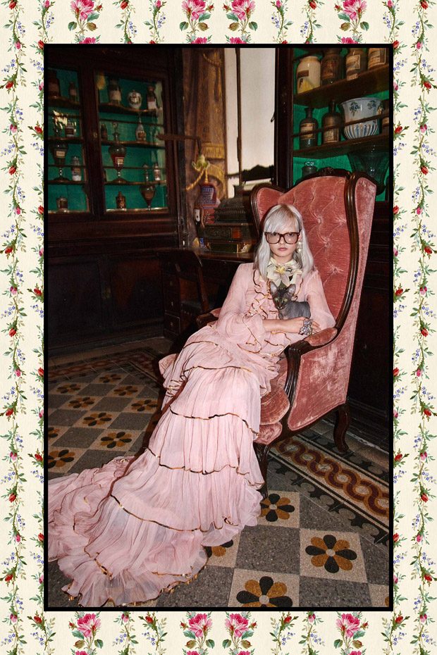 Italian fashion designer Alessandro Michele presented Gucci‘s Pre-Fall 2017 womenswear collection with the latest lookbook captured at Antica Libreria Cascianelli and Antica Spezieria di Santa Maria della Scala, in Rome.