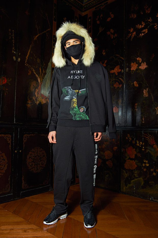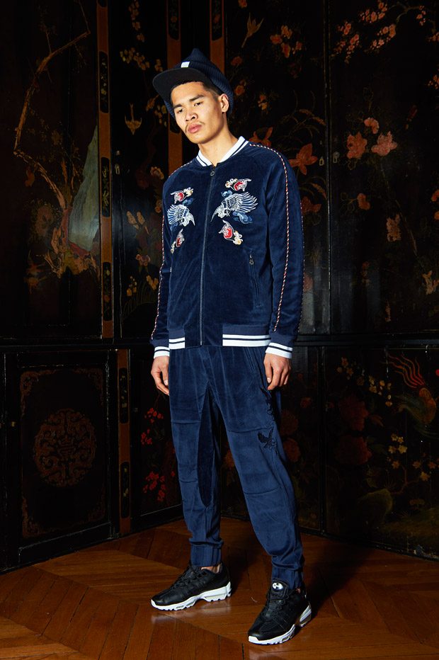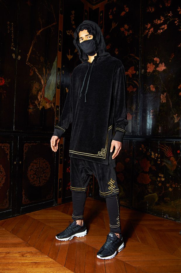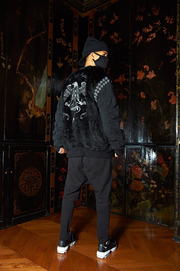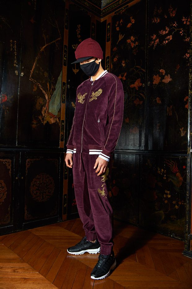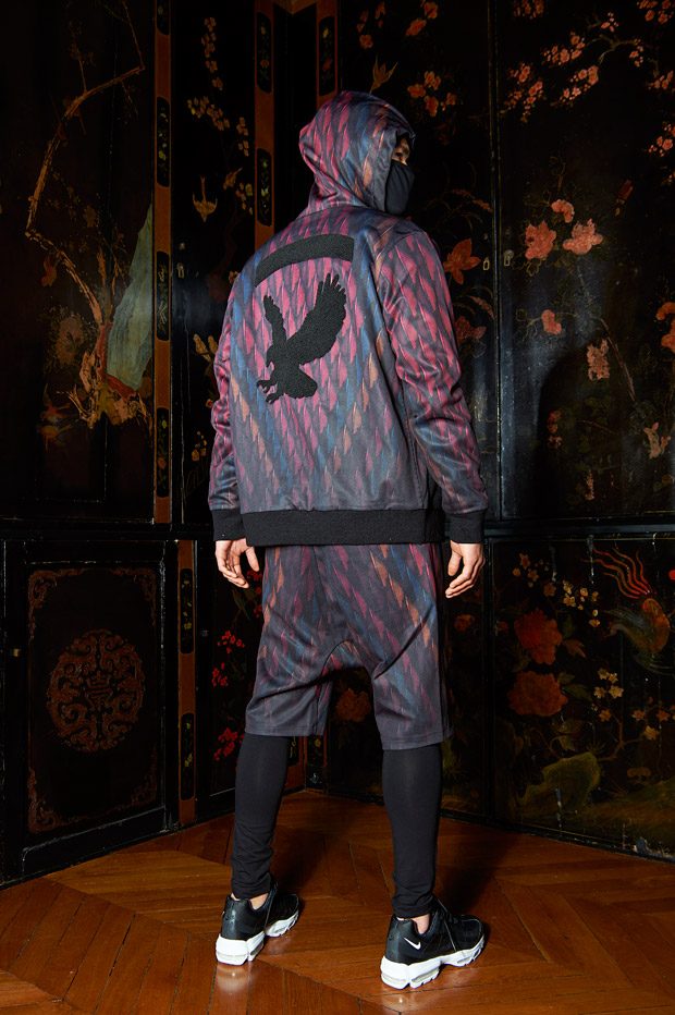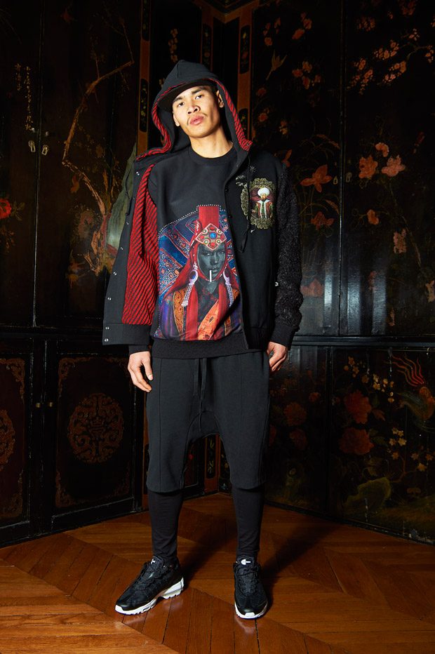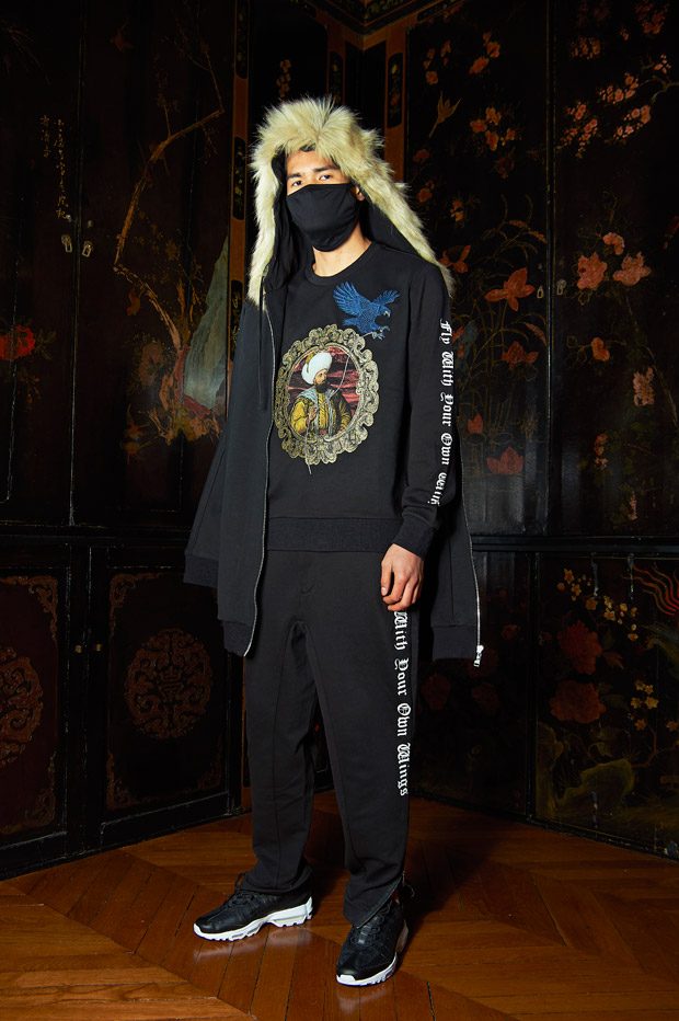 “In a majestic homage to the rare Kazakh art of eagle hunting, Les Benjamins explores the regal Mongolian sport for Fall Winter 2017-18. Inspired by the ancient ritual and its primal connection between man and beast, the collection charts a moving terrain across the steppes towards the Altai Mountains, in an elaborate patchwork of ethnic details and baroque-inflected sports finery.