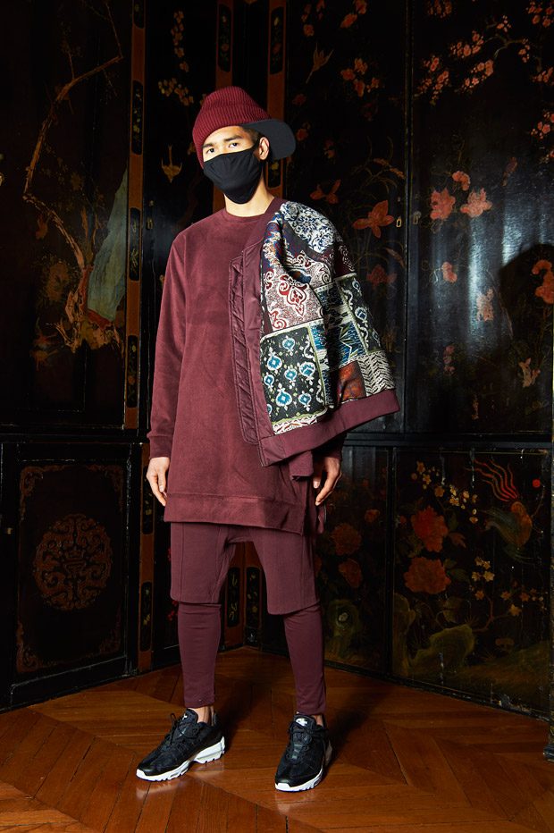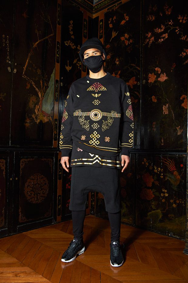 By delving into this unique culture, an urban wardrobe emerges entwined with layers of craft. The collection elevated with a myriad of techniques, as thread embroidery, gold foil, photo-realistic historical prints and tapestry patchwork are combined across a warm, earthy palette of ochre, burgundy, navy, sand, crimson and gold.“