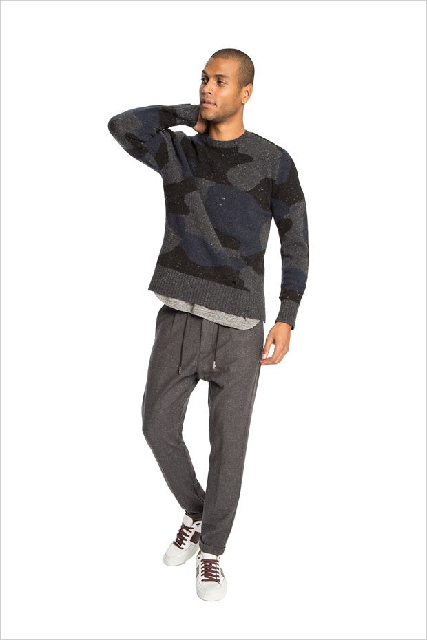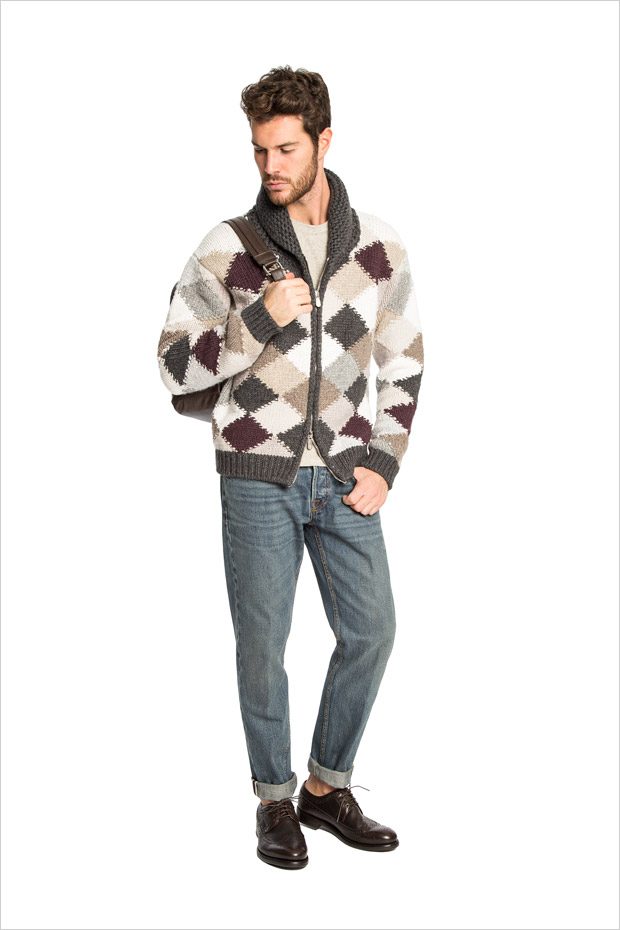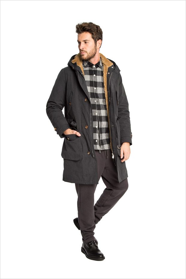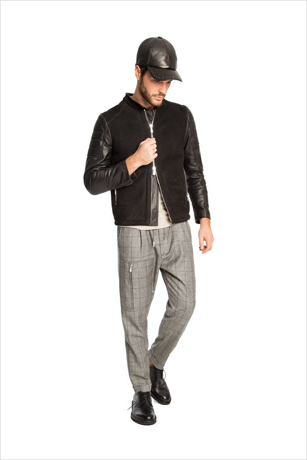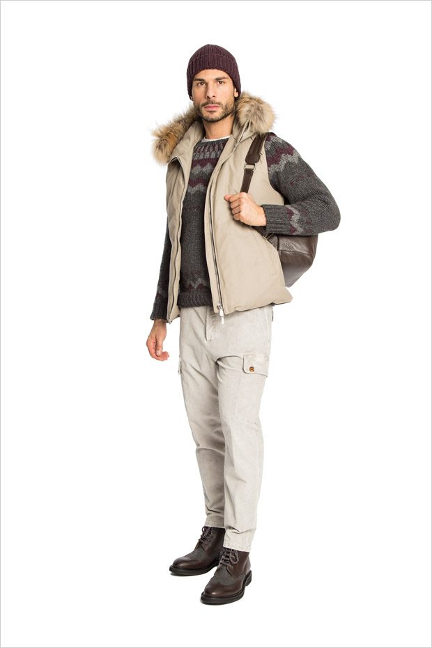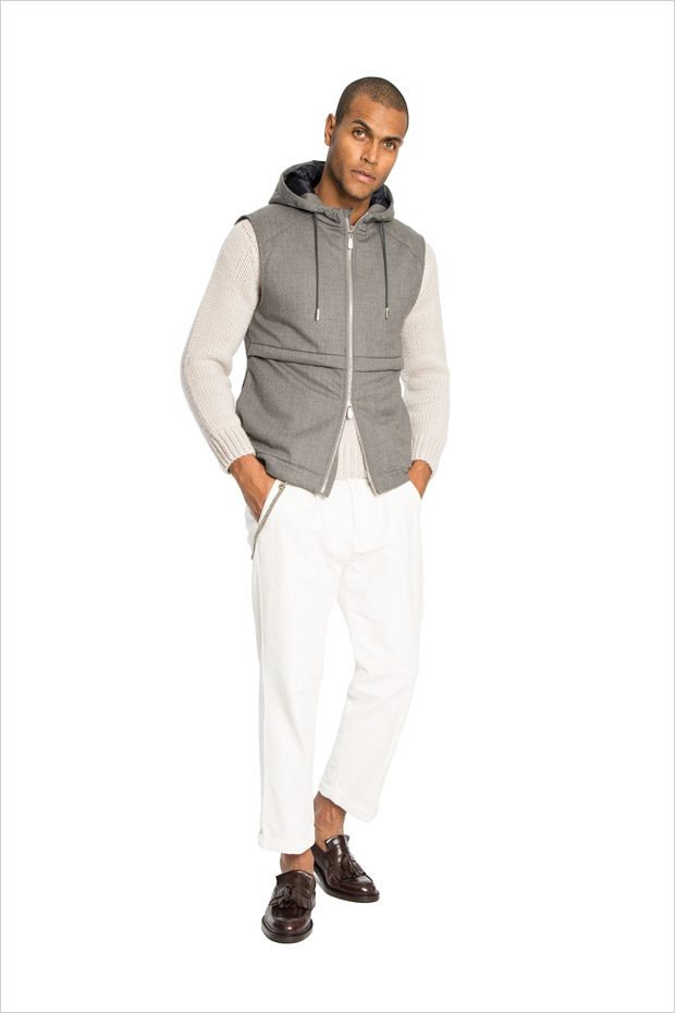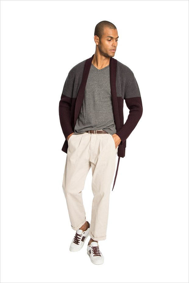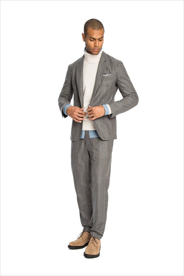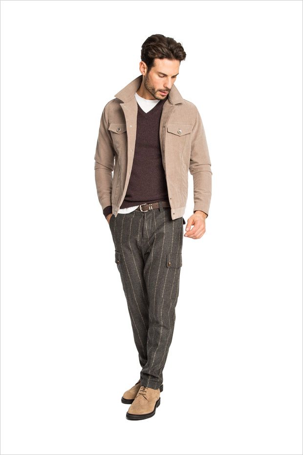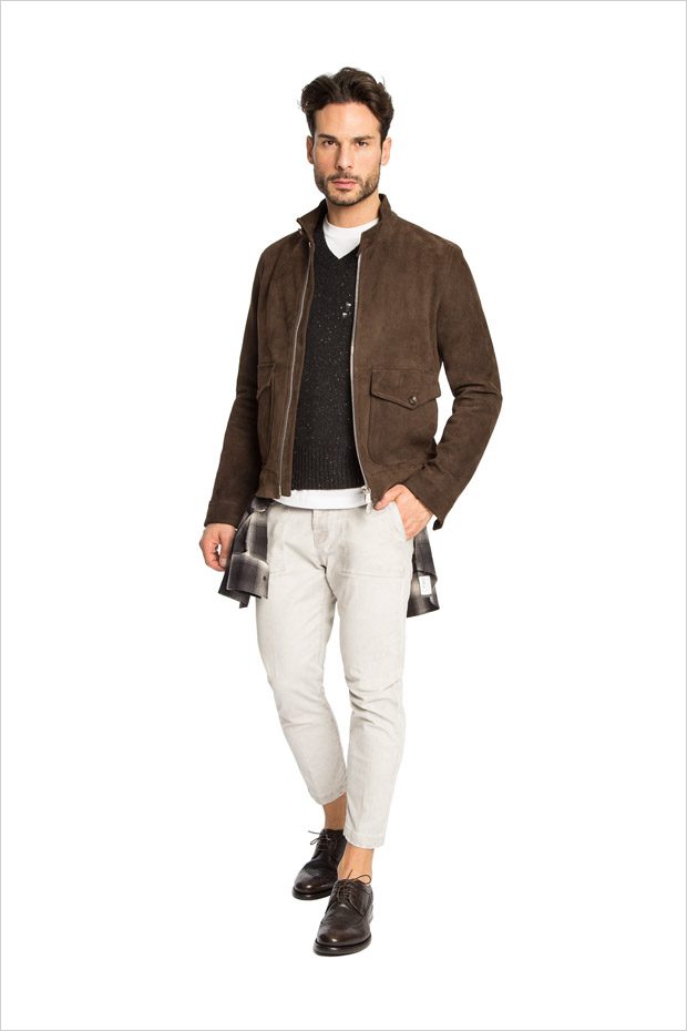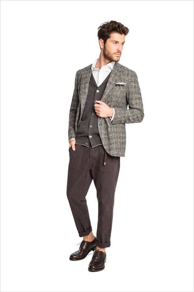 “The Eleventy Fall-Winter 2017 collection is designed to meet the needs of contemporary cosmopolitan man. The themes of the collection come from the different moments of his life. Eleventy redefines traditional dressing by using a combination of genres, introducing the new Casual Office style for the executive. It is in this area we see the tie has fallen away in favor of knits to be worn with soft jackets and cotton pants paired with untucked shirts in denim and subtle prints. The coats have been reworked to be longer and softer. Fashioned in boiled wools and cashmeres, often forgoing the traditional lapel for a shawl.” – Eleventy