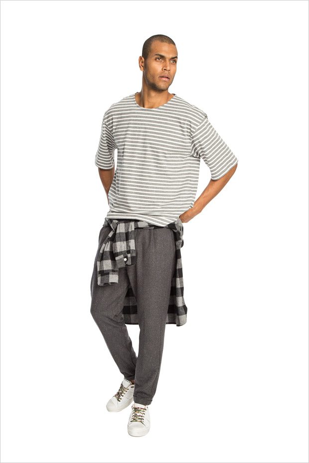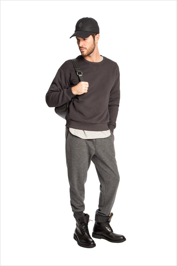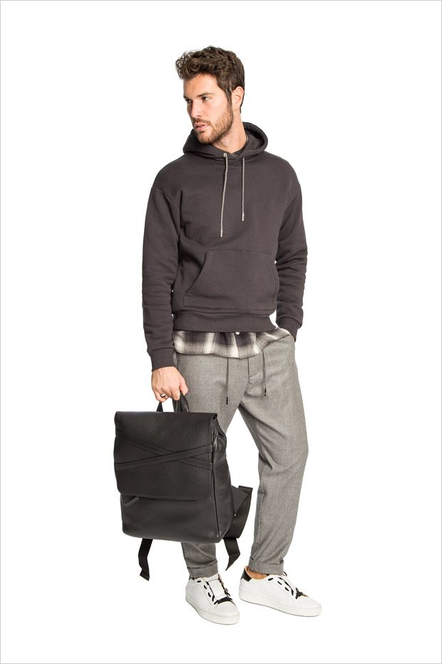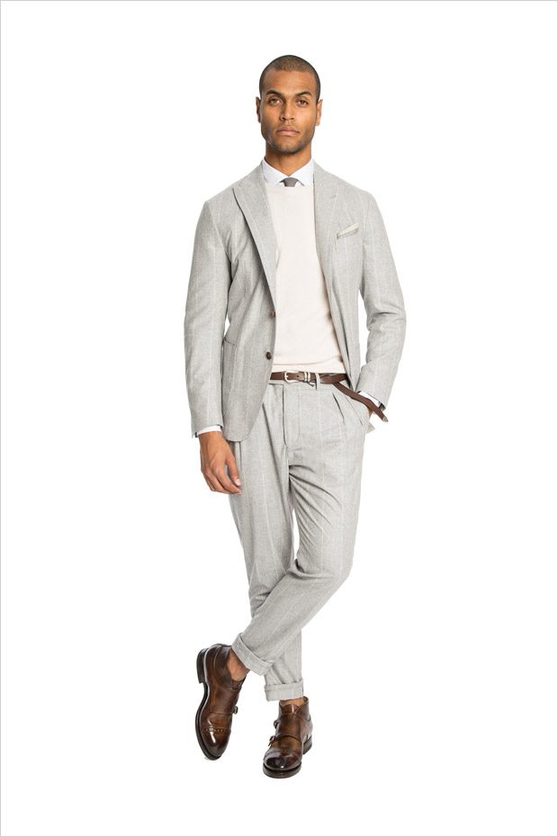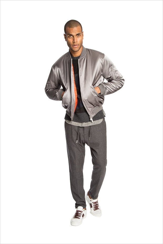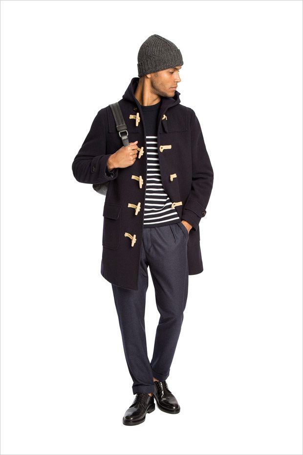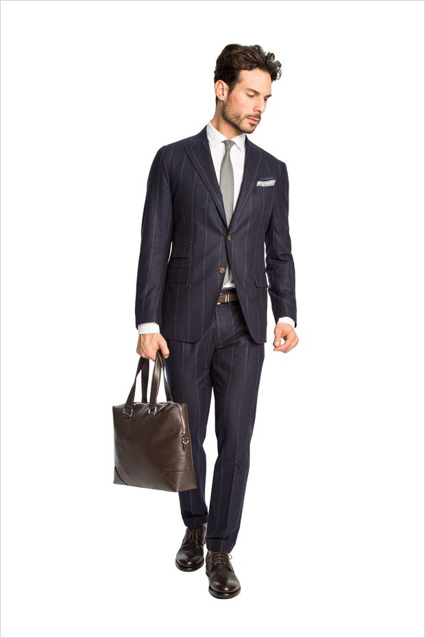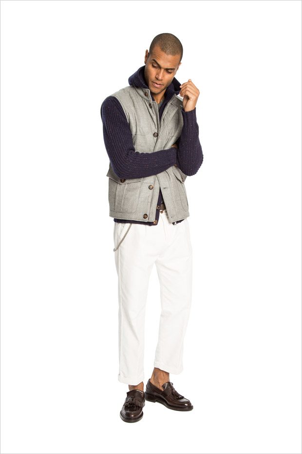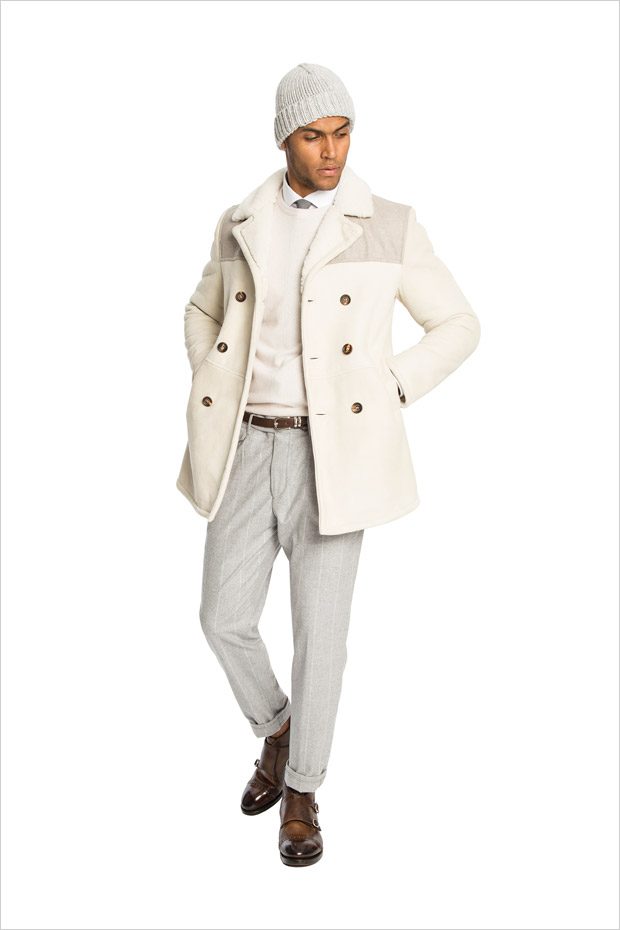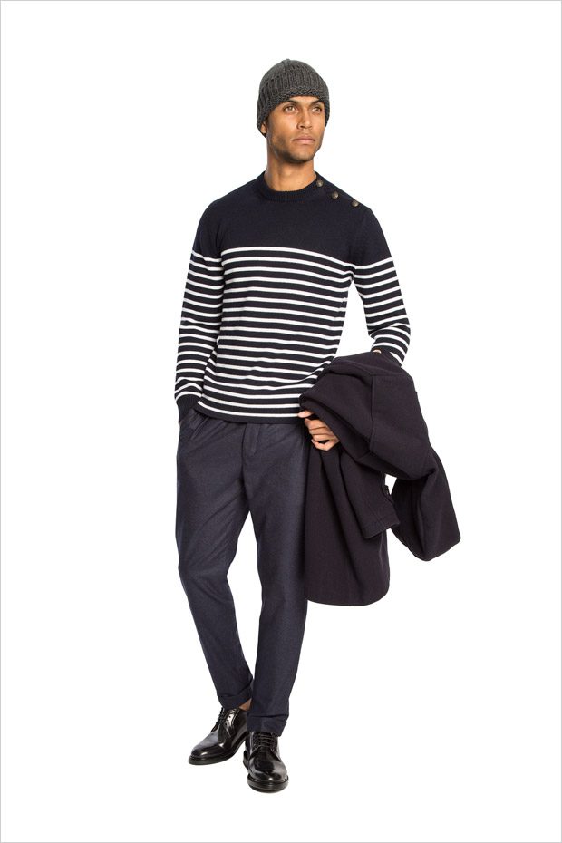 “The Eleventy Fall-Winter 2017 collection is designed to meet the needs of contemporary cosmopolitan man. The themes of the collection come from the different moments of his life. Eleventy redefines traditional dressing by using a combination of genres, introducing the new Casual Office style for the executive. It is in this area we see the tie has fallen away in favor of knits to be worn with soft jackets and cotton pants paired with untucked shirts in denim and subtle prints. The coats have been reworked to be longer and softer. Fashioned in boiled wools and cashmeres, often forgoing the traditional lapel for a shawl.” – Eleventy