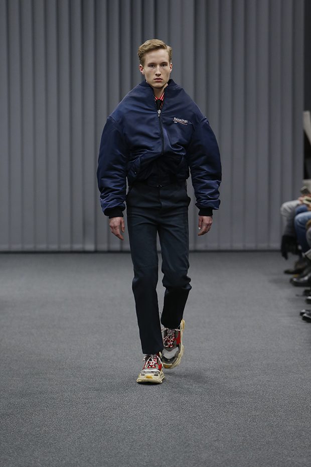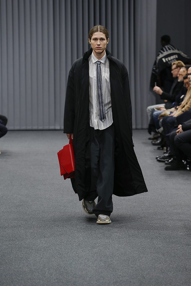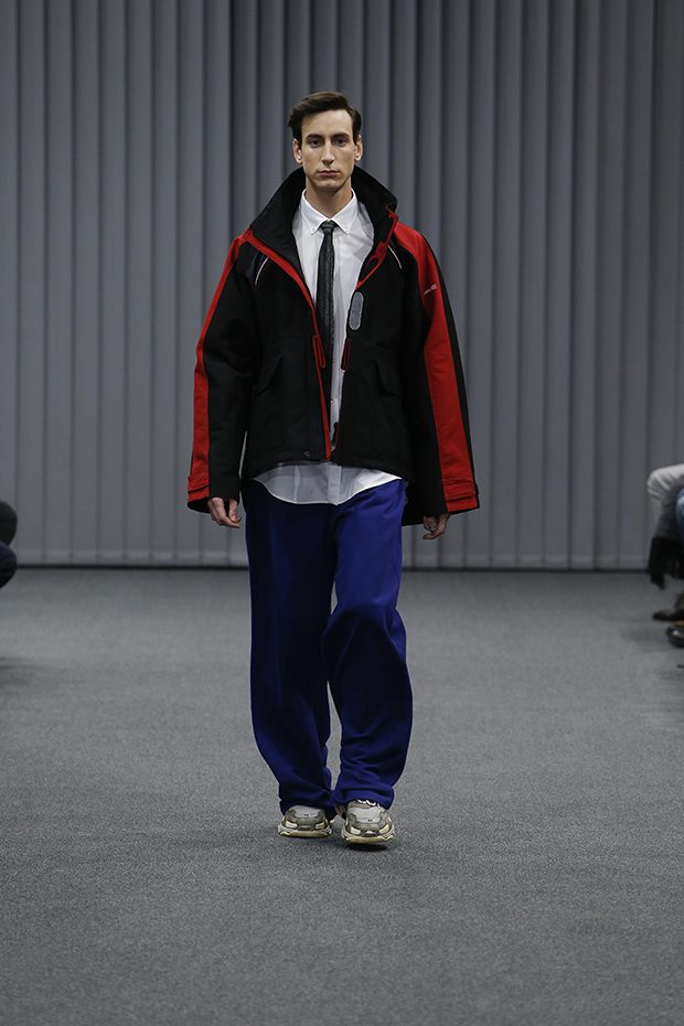 Discover BALENCIAGA‘s Fall Winter 2017.18 collection presented during the first day of Paris Fashion Week. Designer Demna Gvasalia reinvented classic corporate suit, mixing tailoring with comfort.