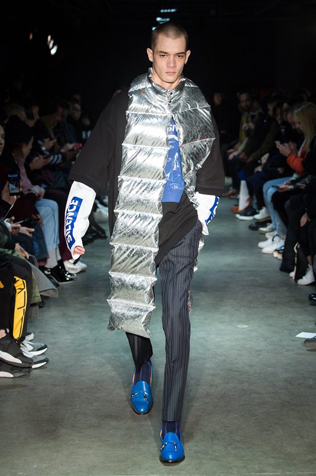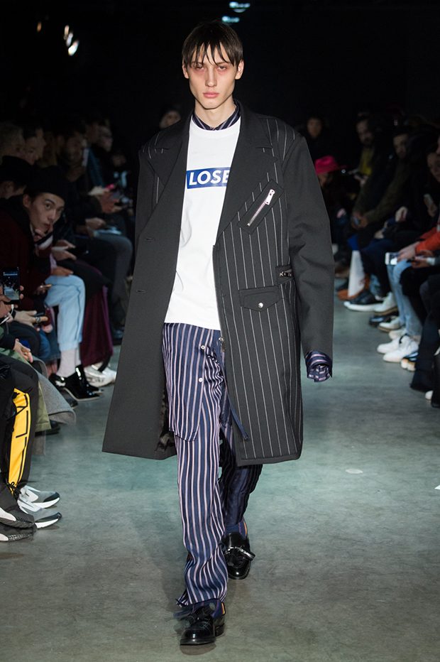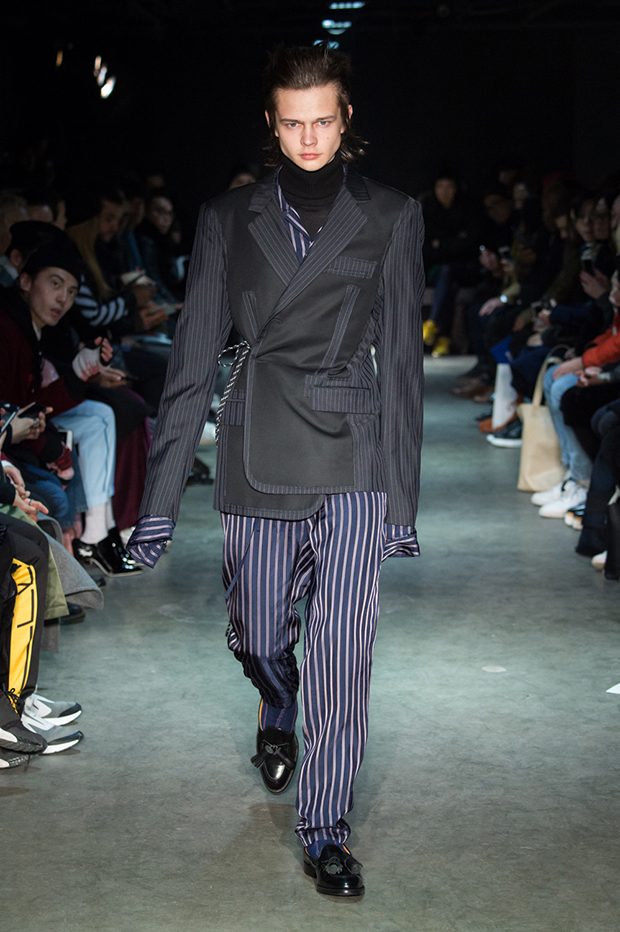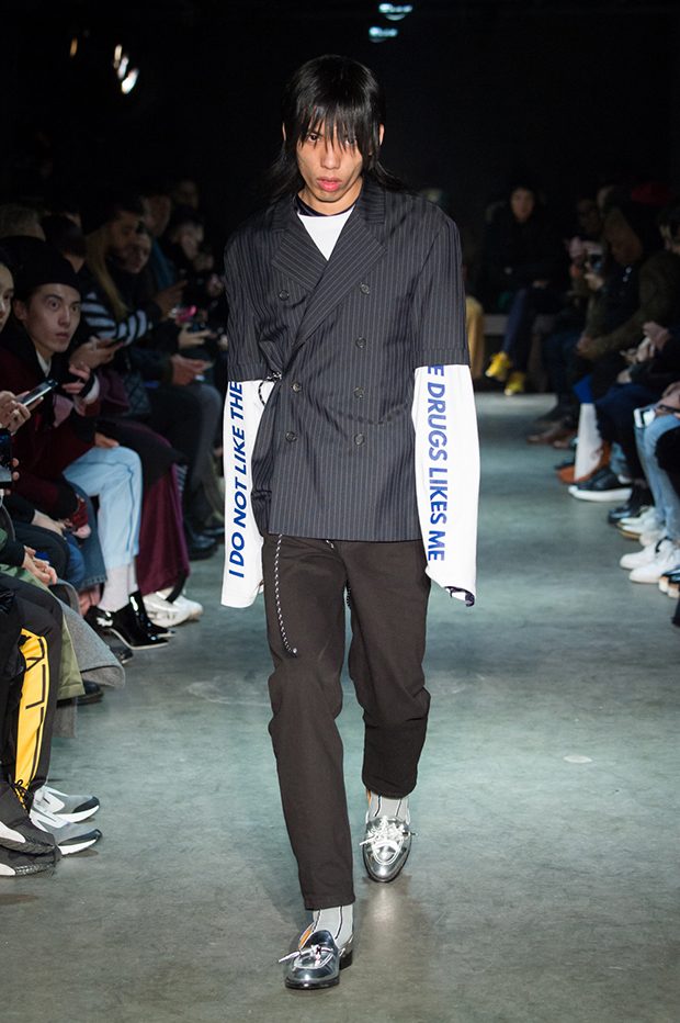 Japanese fashion label Christian Dada presented it’s Fall Winter 2017.18 menswear collection BLUE during the third day of the ongoing Paris Fashion Week. Inspired by the color blue – Japanese symbol of the trouble state of the youth, Designer Masanori Morikawa mixes Eastern and Dadaism aesthetics.