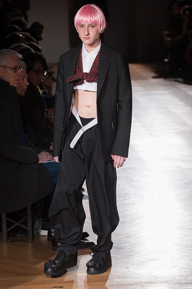 Comme des Garçons Homme Plus presented Fall Winter 2017.18 collection named Boyhood during the Paris Fashion Week. Designer Rei Kawakubo wanted to evoke the feeling of the memory of boyhood and to remember a joyous past in these unhappy times.