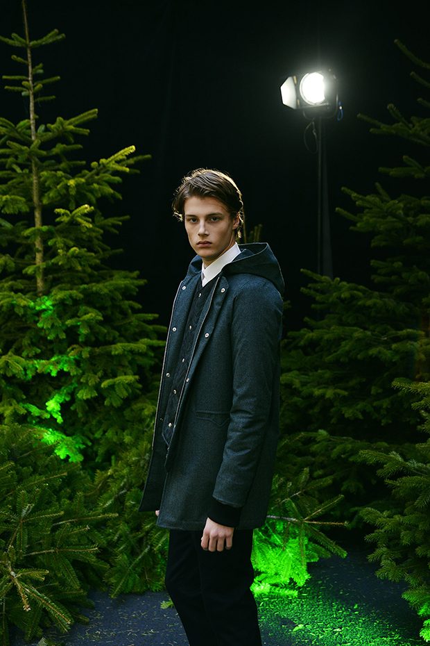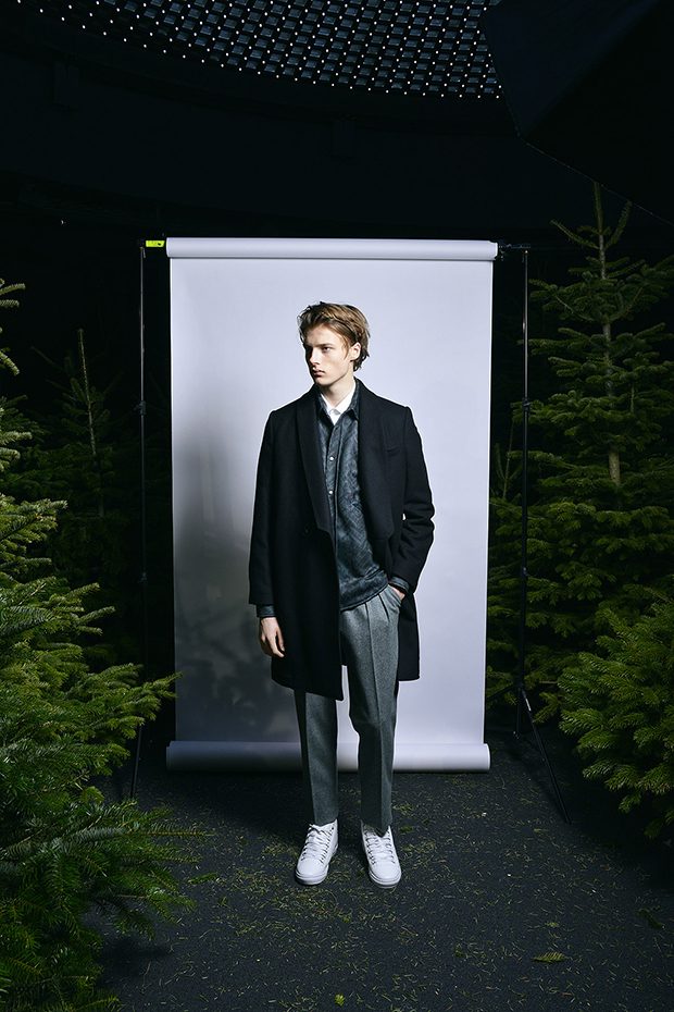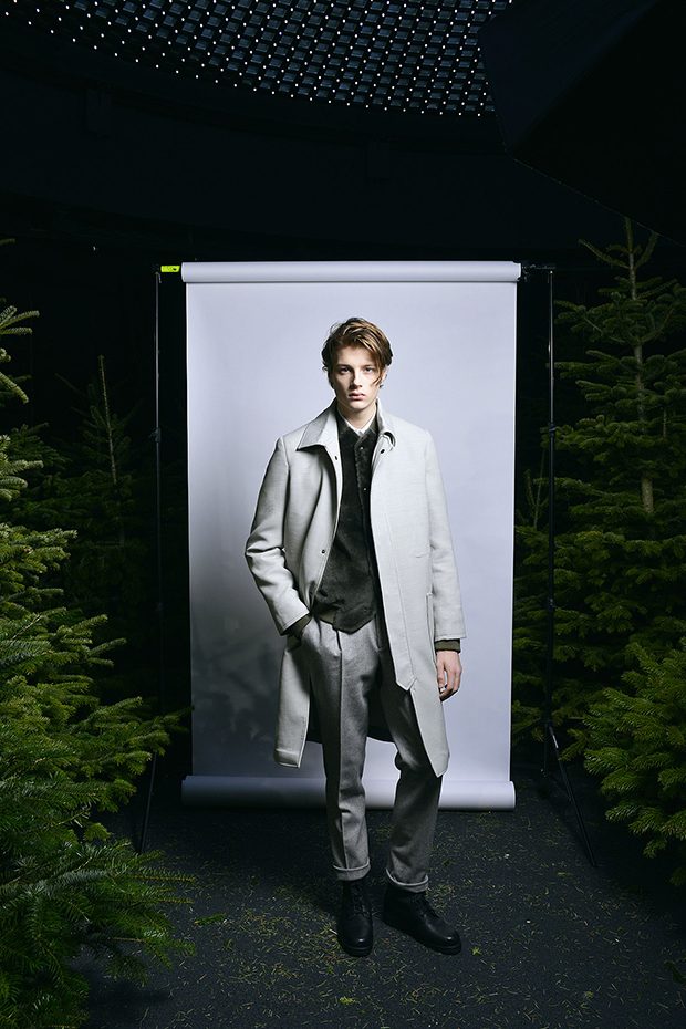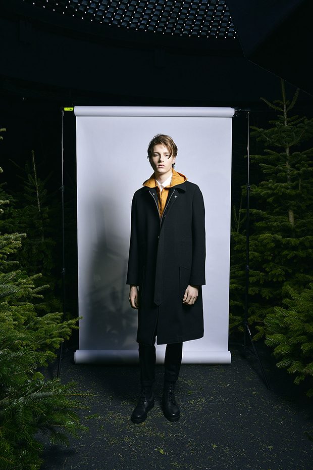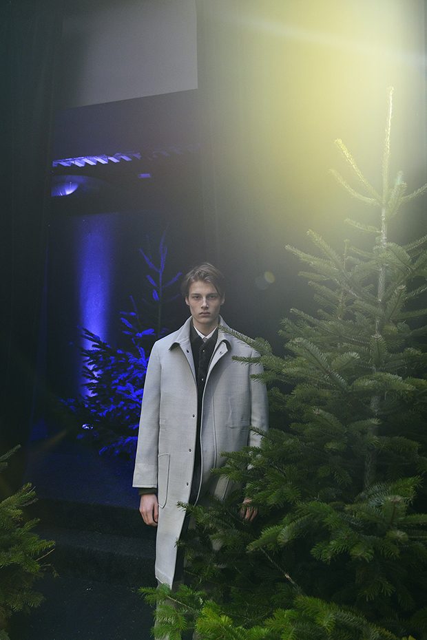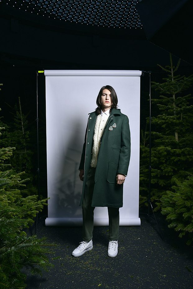 For Fall-Winter 2017-18, co-founder and artisitic director Youn Chong Bak decided to use as a general theme to the collection “the geometric shapes of coniferous trees”, whose minimal draft by Le Corbusier once again has served as canvas to the prints of the collection. These exclusive prints will be available in a wide range of colors – ranging from burgundy, beige to pine green – and visible on a wide range of key items such as the sweatshirts, shirts, silk scarves and bomber jackets. The more tailored offer of the collection – ranging from suits, smoking and coats – are perfect examples of ESSIUS’ high-precision craft, which once again links the brand back to Switzerland. No other country can claim being a better representation of precision and preciseness, especially through its worldwide famous clock-making skills – seen on the runway through the seamless integration of OMEGA watches to the models’ silhouettes. – from Essius