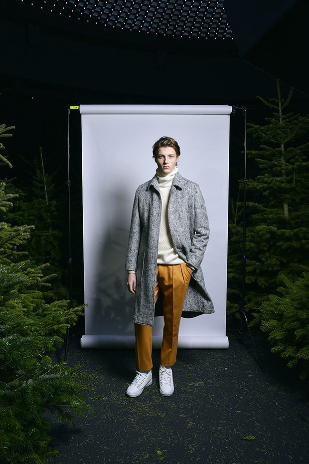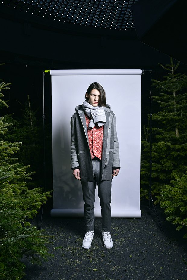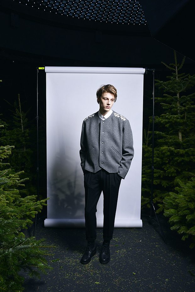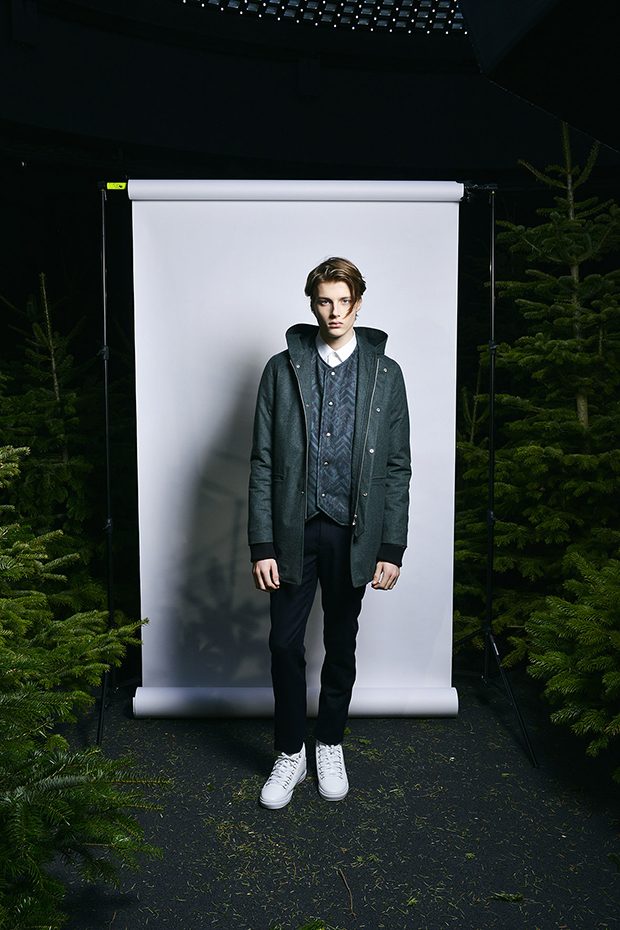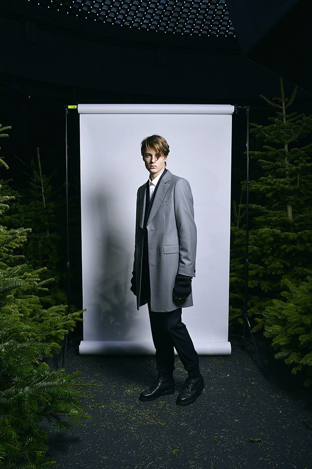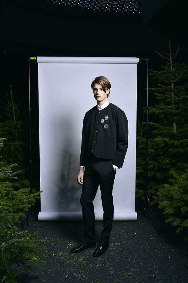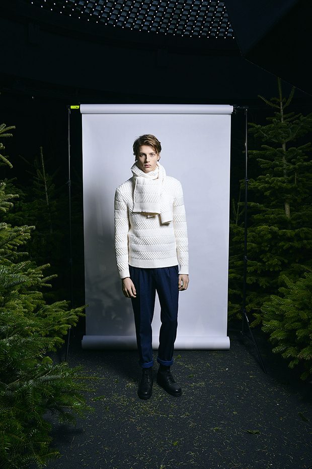 For Fall-Winter 2017-18, co-founder and artisitic director Youn Chong Bak decided to use as a general theme to the collection “the geometric shapes of coniferous trees”, whose minimal draft by Le Corbusier once again has served as canvas to the prints of the collection. These exclusive prints will be available in a wide range of colors – ranging from burgundy, beige to pine green – and visible on a wide range of key items such as the sweatshirts, shirts, silk scarves and bomber jackets. The more tailored offer of the collection – ranging from suits, smoking and coats – are perfect examples of ESSIUS’ high-precision craft, which once again links the brand back to Switzerland. No other country can claim being a better representation of precision and preciseness, especially through its worldwide famous clock-making skills – seen on the runway through the seamless integration of OMEGA watches to the models’ silhouettes. – from Essius