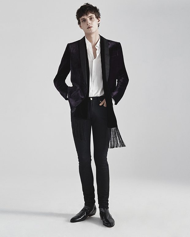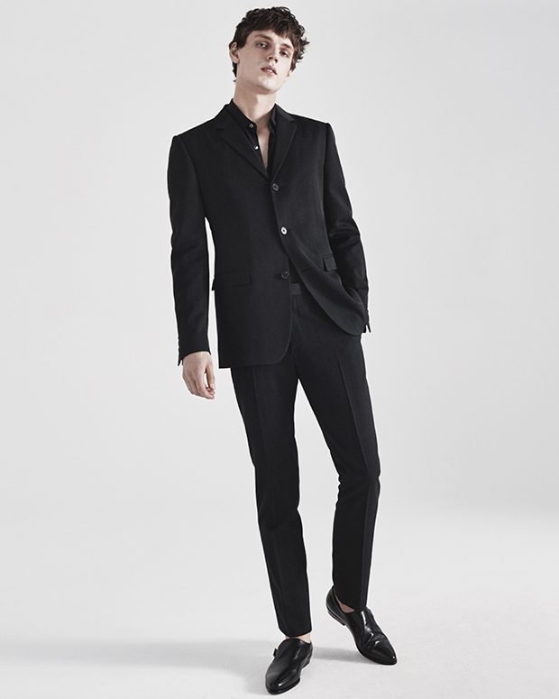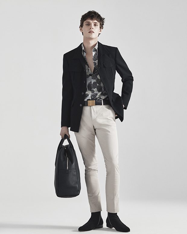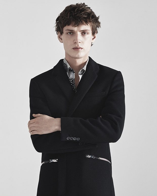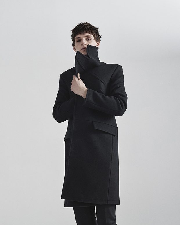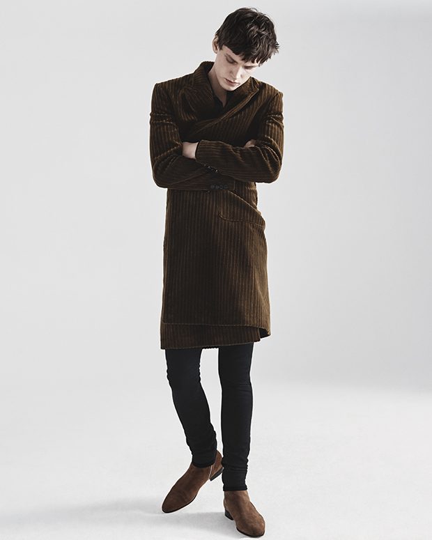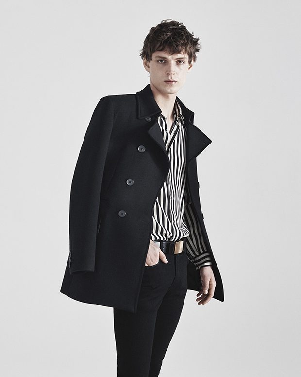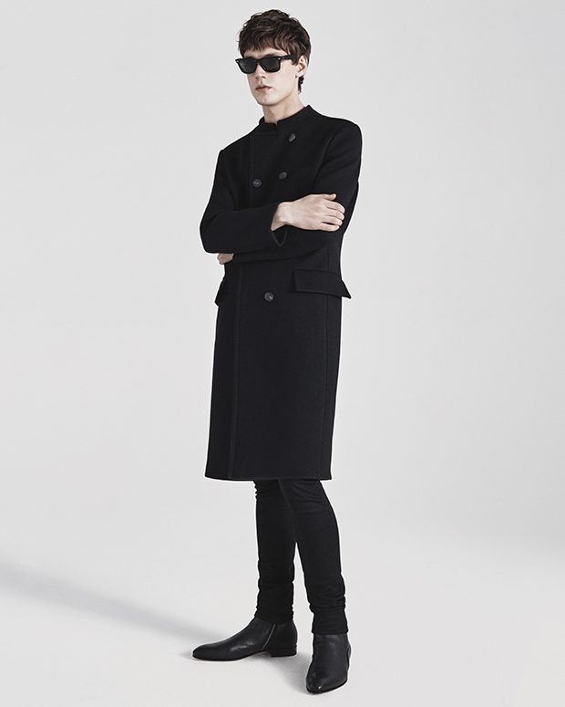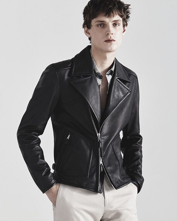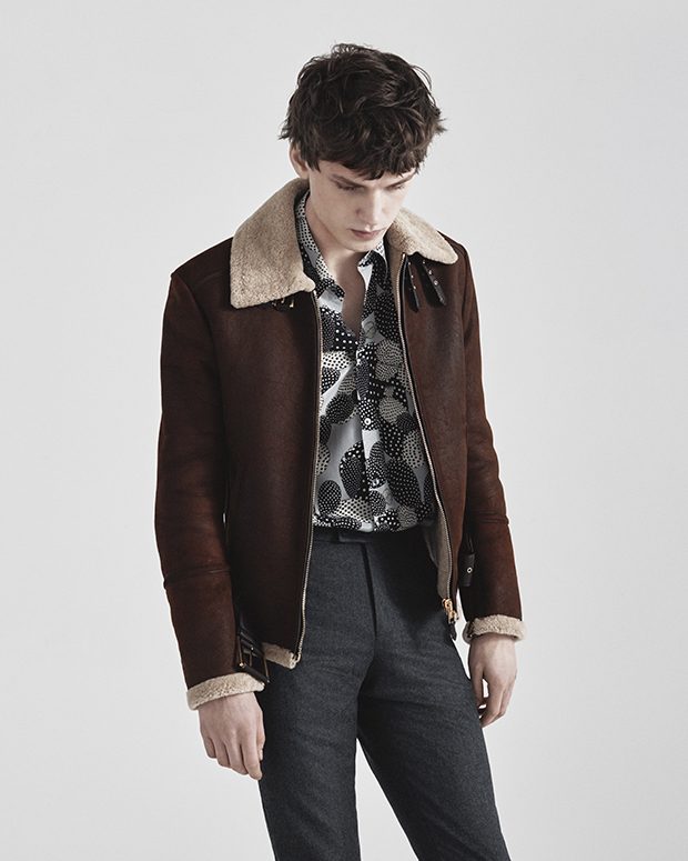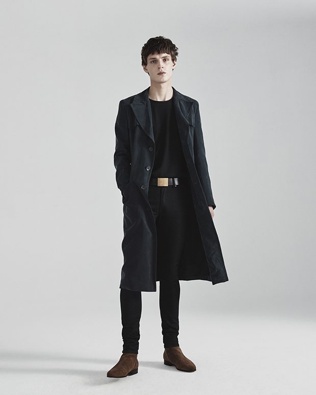 The collection references both the rigorous, almost austere look of the early 90’s and the glamorous, yet decadent atmosphere of the Hollywood scene, including a nod to River Phoenix and the work of Bret Easton Ellis. The collection encompasses influences from minimalism, grunge and the visual culture of the LA mod scene, celebrating the freedom of aesthetic nonconformism. Each and every staple is given strong contemporary relevance: The peacoat, the shearling aviator coat, the workwear parka, the Spencer coat, the leather biker, the three-button suit. These pieces are interpreted in a unique and quirky way, marrying apparently contradictory concepts: innovative design and timeless style, rigour and freedom, opulence and understatement, Californian edge and European savoir-faire. – from Jeffrey Rudes