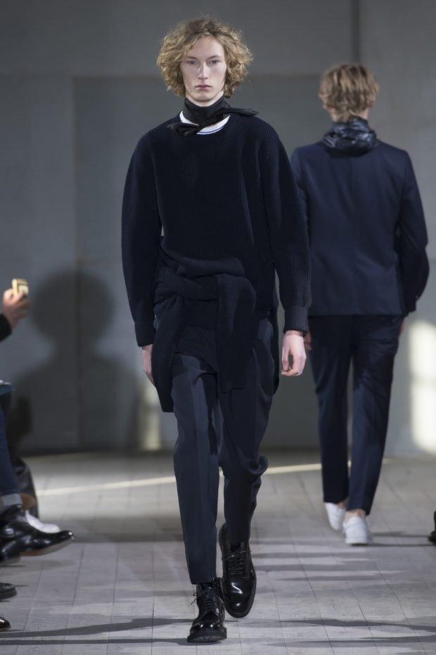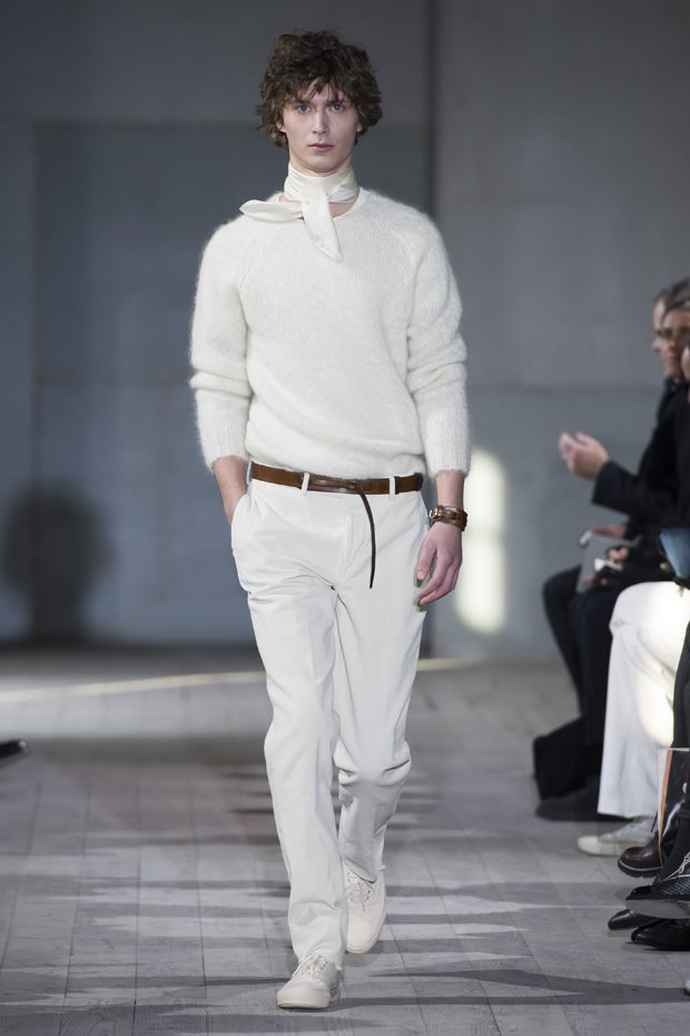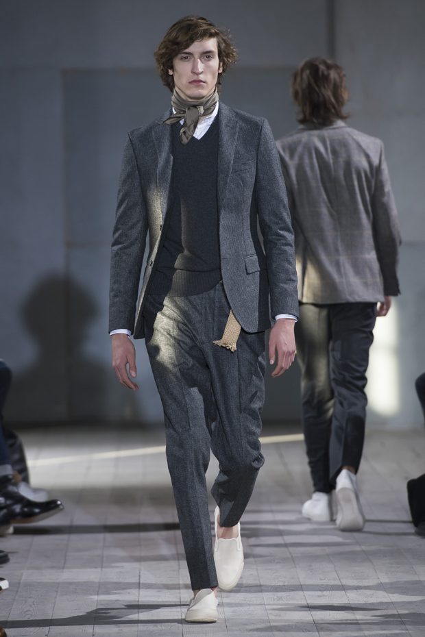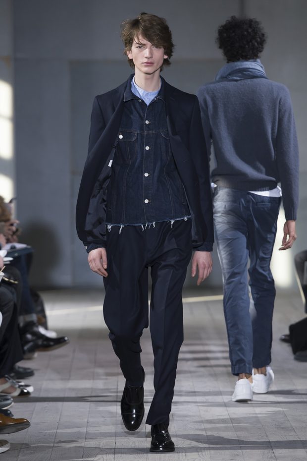 When re-reading the articles and reviews about Officine Générale, I noticed two words were coming back more frequently than others: « autobiographical » and « French ». The first one is entirely claimed. My collections are only made of what I like, and what I want to wear at this precise moment. But, the second one, is it that obvious? It is probably because I unconsciously transpose what surrounds me, and what has inspired me since childhood. This «French style» seems to exist. Roger Vadim, Maurice Ronet, Francois Truffaut, Jonas Bloquet, Louis Garrel, Jacques Dutronc, Tahar Rahim, Jean-Michel Frank, Benjamin Biolay, Nicolas Godin… A few names from a list that will never be entirely exhaustive. Romantic nostalgia you ask? I don’t believe so. The inspiring modernity that these men have carried is timeless, imperceptible to some eyes, and a true necessity for our day and age. The challenge is real: how do you materialize this modernity without coming up with clichés? How do you express this extra touch of impalpable soul that people call attitude? This season I tried, modestly, to tap into the roots of French masculinity. The little things that make a huge difference. A collar slightly unbuttoned nonchalantly, a scarf obediently knotted, a sweater under a shirt, a wrinkled side, a little piece of T-shirt coming out, a belt without a buckle, a white jean in the middle of the winter. This series of elements, that, placed end to end, create an elegant outfit, far from being accidental. Some may see these decisions as little marks of bad tastes, but for us, they’re intentional. The pursuit of modernity cannot mean sacrificing the fabrics’ authenticity. Quality shall not be put aside with the excuse that everything is going faster and faster. Quality is the unswerving link, the solid thread, that I have weaved with my clients since day one. Quality is the reason they come back. Once curiosity has passed, it is quality that makes a brand grow. In an age where illusion prevails over reality and pompous is more important than fundamental, it is evident that detail is more important than ever before. This season, as I hope you will have understood by now, will be French. – Pierre Mahéo
