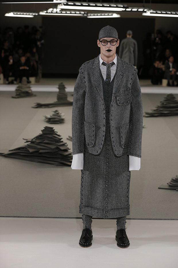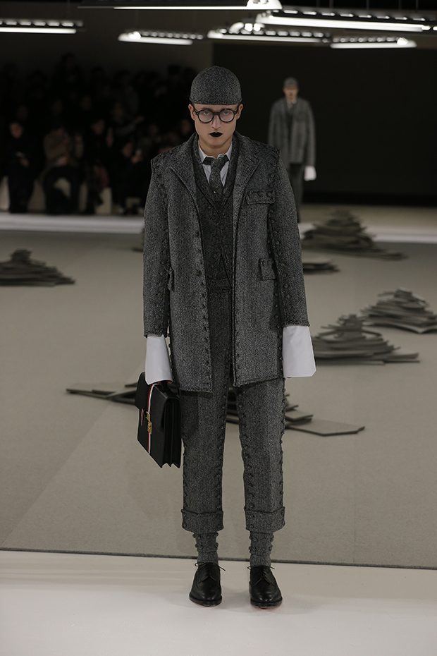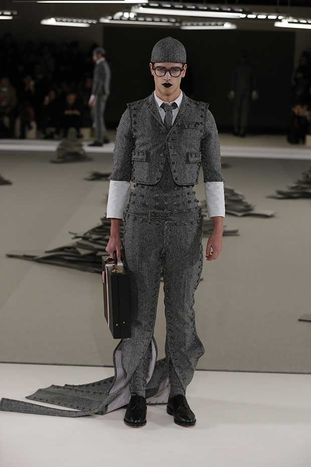 THOM BROWNE presented Fall Winter 2017.18 collection during the Paris Fashion Week. Dedicated to the sartorial tradition, the foundation of the collection is reinvention of formal suit.