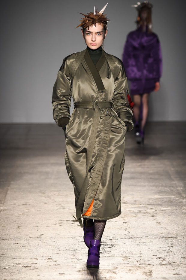 The beautifully vibrant collection of Japanese designer Atsushi Nakashima took the runway of the ongoing Milan Fashion Week. Bomber Jacket which is the rage of the runways for past six season, the least, finds an original interpretaion by Nakashima who shapes the must have pieces with Japanese traditional wear in mind. The colours are bright and almost season contradicting, yet offer a head turning display of feminism powering through the Milanese runway.