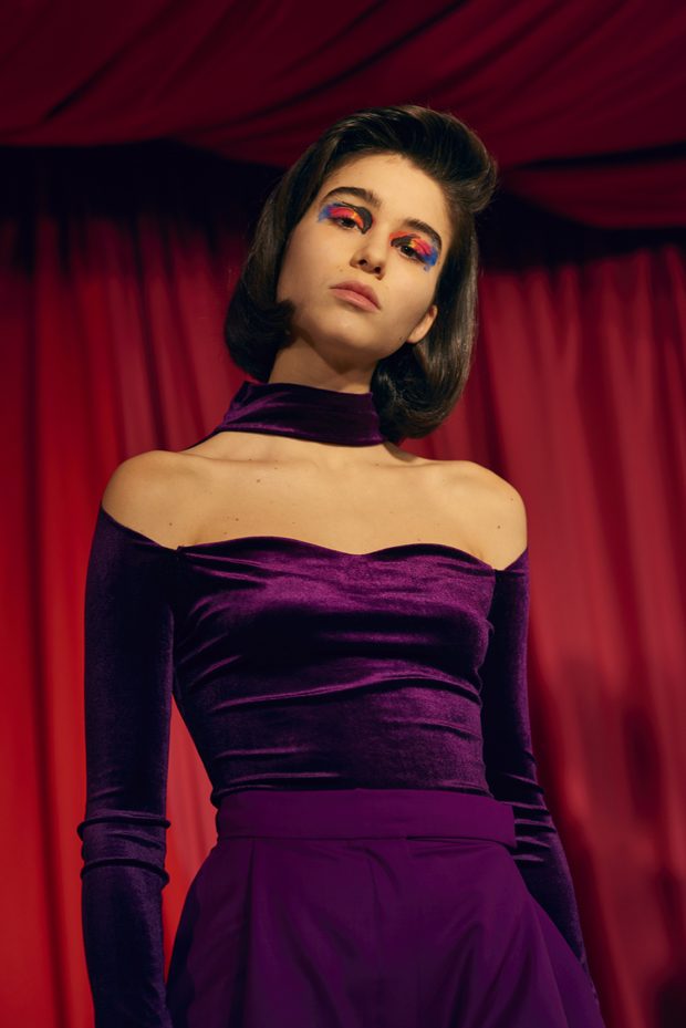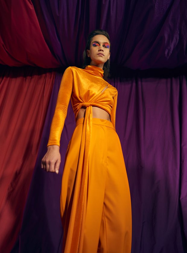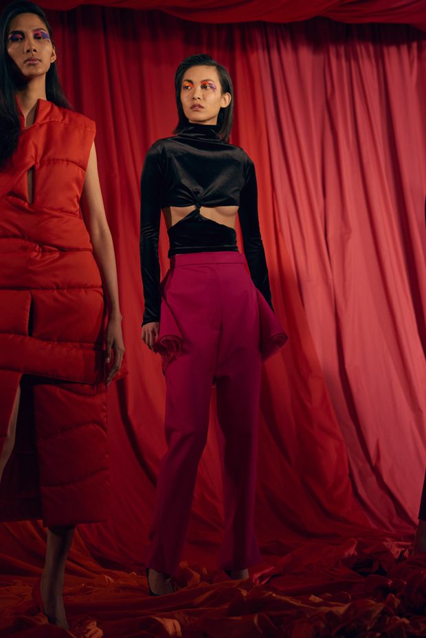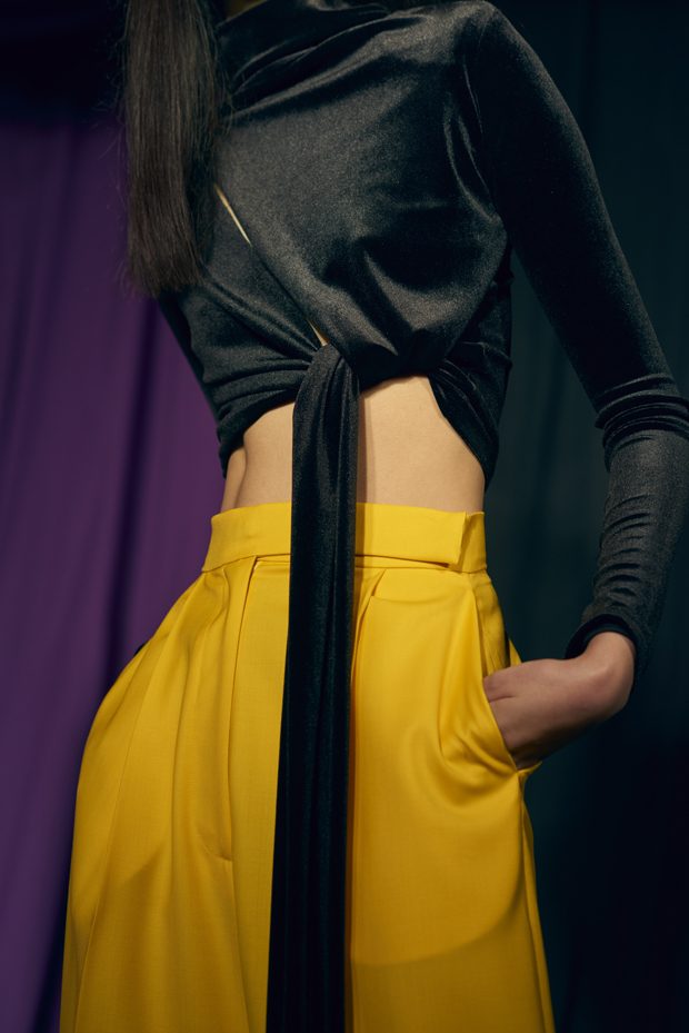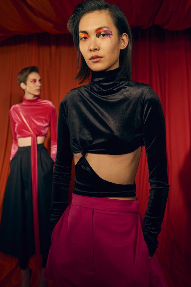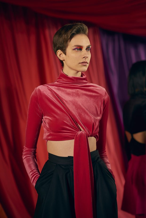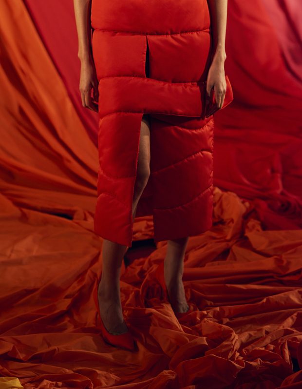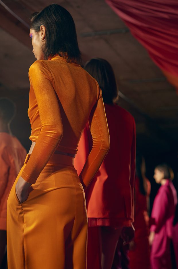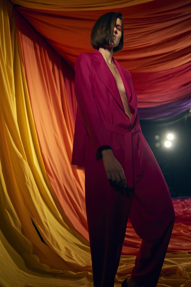 Our extended adolescence, culture hints should be eternal, but youth is a journey that burns brightest for those determined to get to the other side. Teenage, that time for sampling, referencing and moodboarding subcultures past, is fun. But this season Marta wanted to bang the drum for women and the brilliance, sexuality and growing inner strength that comes after the questioning of youth. Never forget the end goal of growing-up is to be thankful for everything on the other side of the rainbow that is female self-actualisation. This metaphorical celebratory rainbow inspired AW17s palette of lemon, magenta, neon orange, violet and fire engine red. – from Marta Jakubowski