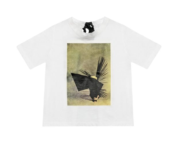 This project finds its origin in Marni’s passion for art and incessant search for the most interesting personalities to collaborate with. Ruth van Beek’s rigorous yet ironically naïve approach mirrors Marni’s love for composition free from predefined concepts. The artist predominantly uses collage, arranging photographic material and designs which she draws from a constantly evolving personal archive. Unexpected layered images take shape through the use of cuts, folds and contrasts, with soft colors and a clear reference to elements of nature such as exotic plants and flowers. The illustrations created by Ruth van Beek light up cotton jersey t-shirts and tops, poplin shirts, anoraks and coloured PVC shopping bags. Focusing on images created by superimposition, Marni puts the artist’s work at the centre of the most representative prints of the S/S 2017 collection. – from Marni