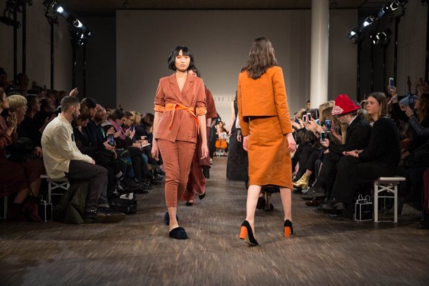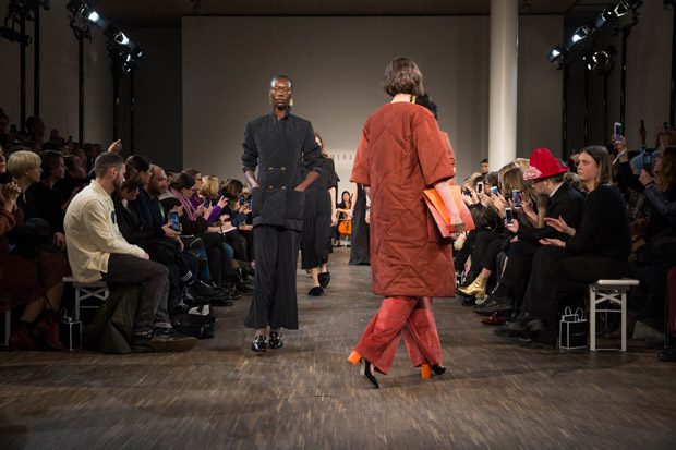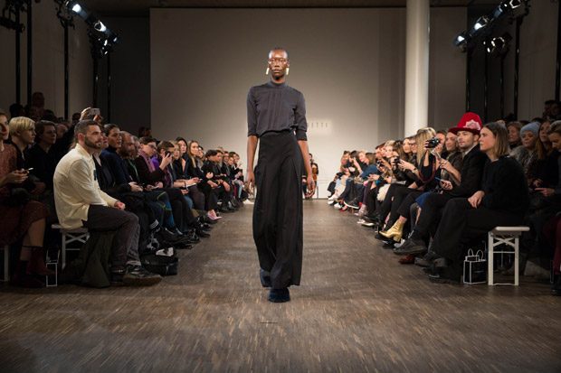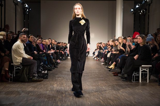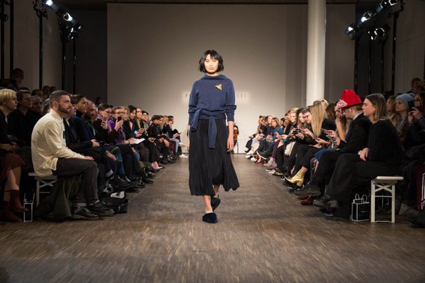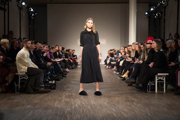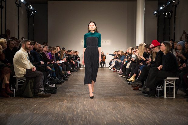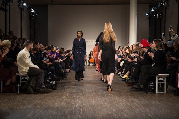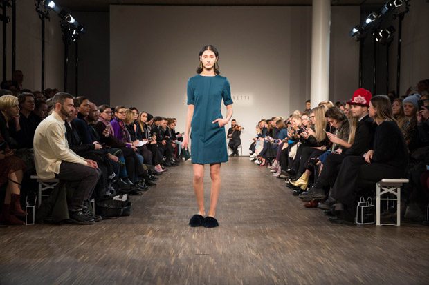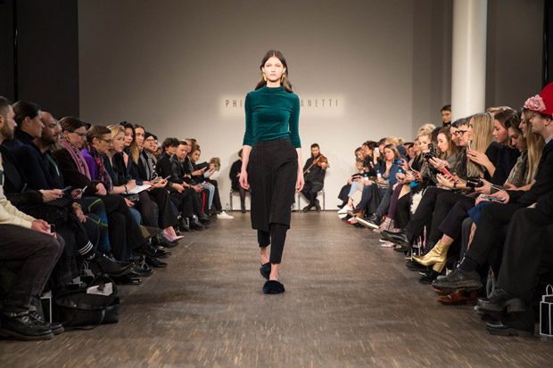 Philomena Zanetti presented her Autumn/ Winter 2017/18 collection on the 18th of January 2017, the second show day during Mercedes- Benz Fashion Week Berlin. A trio playing classical music was playing live music right before the show started. Worth of mentioning is the fact the label works without materials that contain of an animal origin such as leather and fur. Thus, also in this collection only premium materials without an animal origin such as wool or silk are used. Moreover none of the creations is processed with any unnecessary chemicals. The message behind Julia Leiferts’ creations is to focus on pieces that last long and avoiding any kind of fast fashion. Environmentalism and high quality fashion are harmoniously united. Furthermore the idea behind this collection is to work from the first creation and idea until the final product. It is the perfect addition to any contemporary womens’ wardrobe that appreciates high quality, sustainable products. Traditional elements are harmoniously united with modern ones. But this is way more than just any ordinary collection, it can be actually seen as the perfect addition to any modern womens’ wardrobe that appreciates that ecofriendly lifestyle. “Re-evalue the good” can be described as a collection that has a preference for rather clean cuts, minimalistic details and a graceful character.