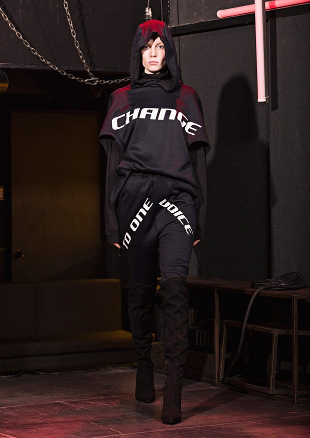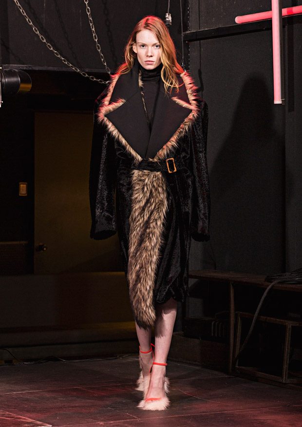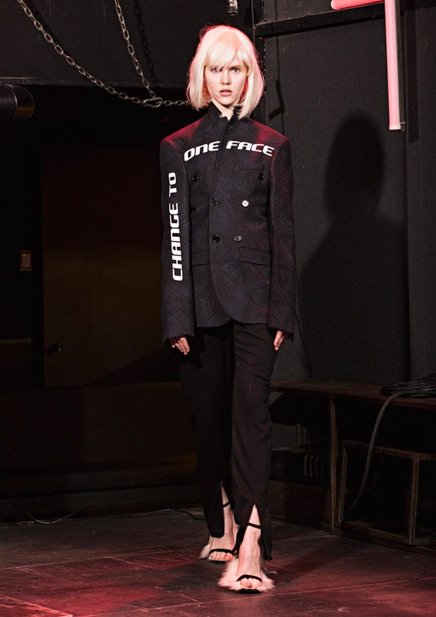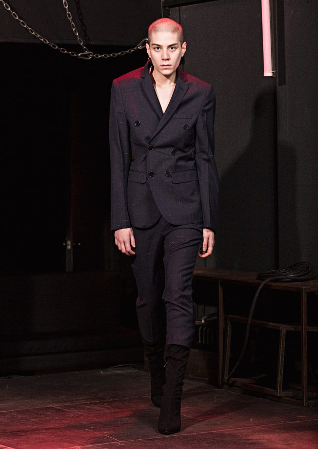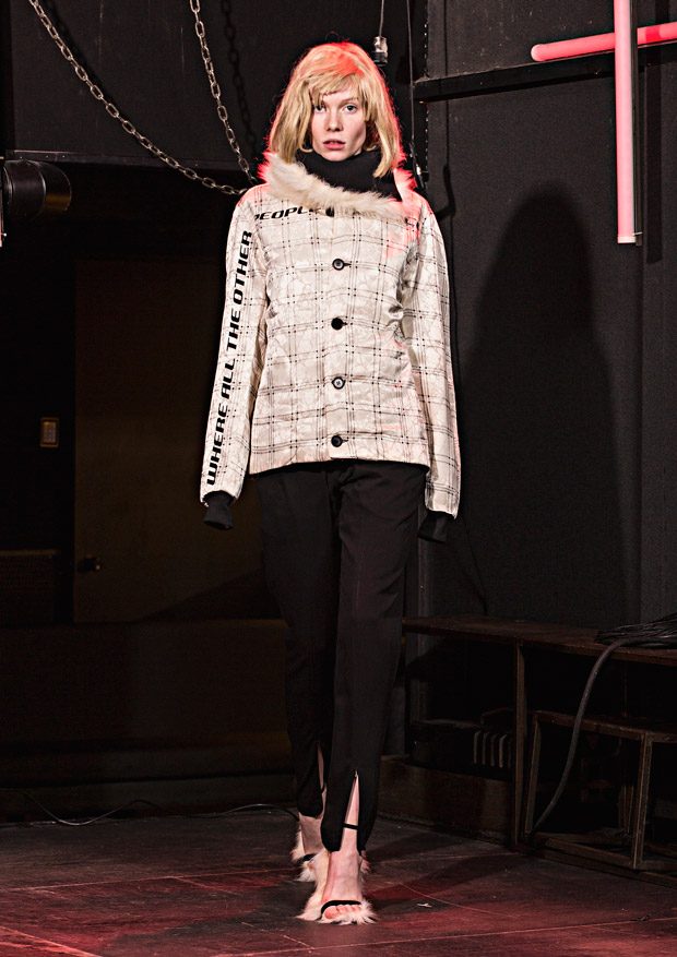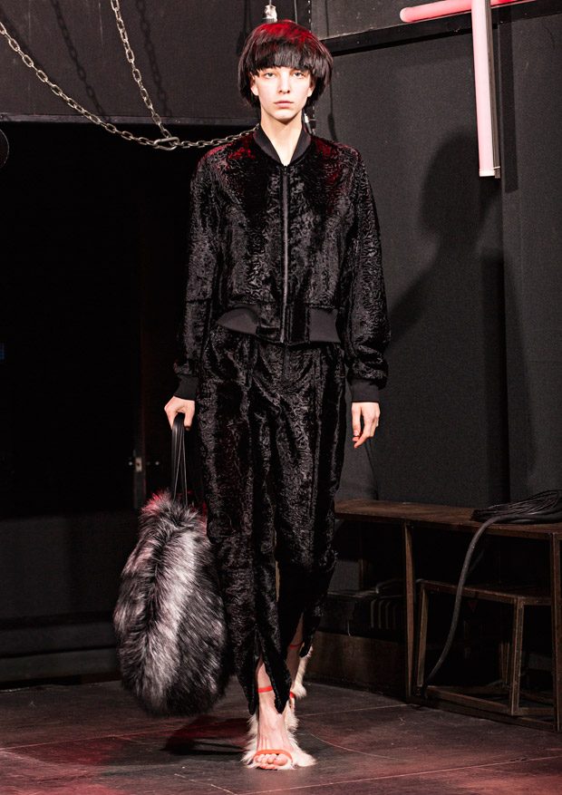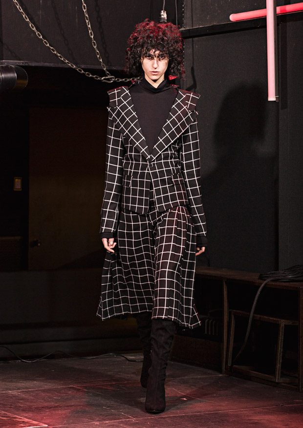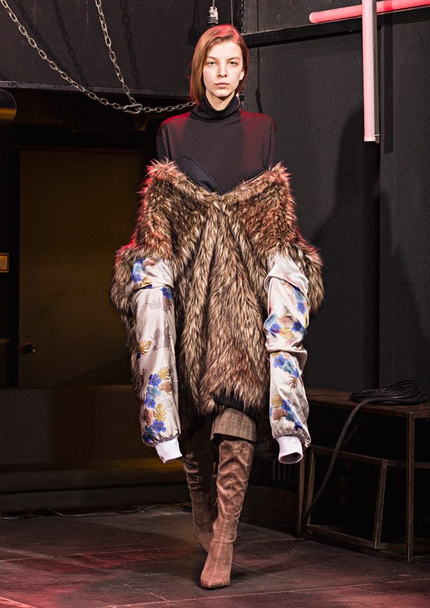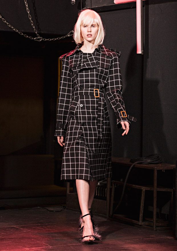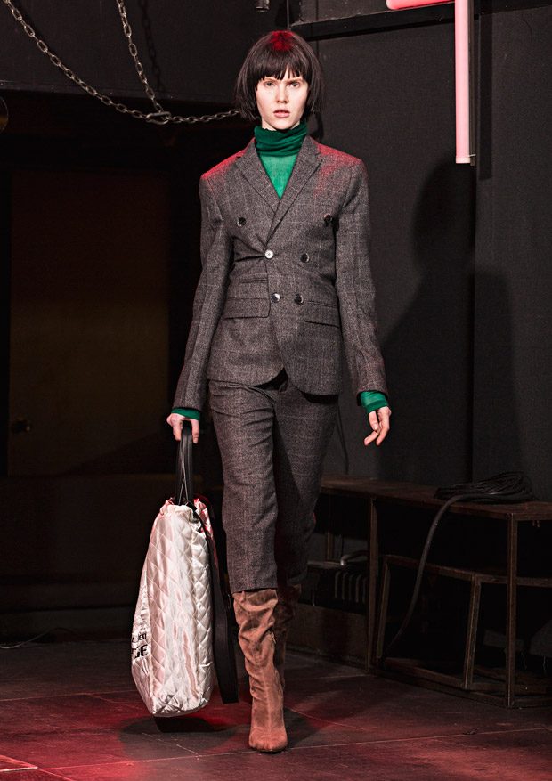 “A girl that unexpectedly links diverse references such as a classic pop band like the cure, and a children’s fantasy books author, Penelope Farmer, is the lead character ?? Angelos Frentzos’ women’s collection for fall-winter 2017-18. Following his men’s collection, Frentzos continues to explore classic tailoring with precise cut but modern details in juxtaposition to the blocked fluidity of traditionally more feminine fabrics. Oversized bags that suggest the life of a contemporary nomad and padded outerwear for protection compliment phrases from “charlotte sometimes” by the cure, that appear printed on some of the garments of the collection. The woman of this collection is dressed in micro pleats that give movement and a strong image and in oversized proportions, a reference to the out of scale doll parts. Bold colors and retro scarf graphics in silk twill offer a touch of femininity, while sauvage flowers and college references in bombers and knits are a sign of youth. Standards in every Frentzos collection, like the classic bomber jacket, are combined with dresses in lurex, silk georgette and floral prints, for a contemporary woman that relates to the lyric “sometimes i’m dreaming”.”