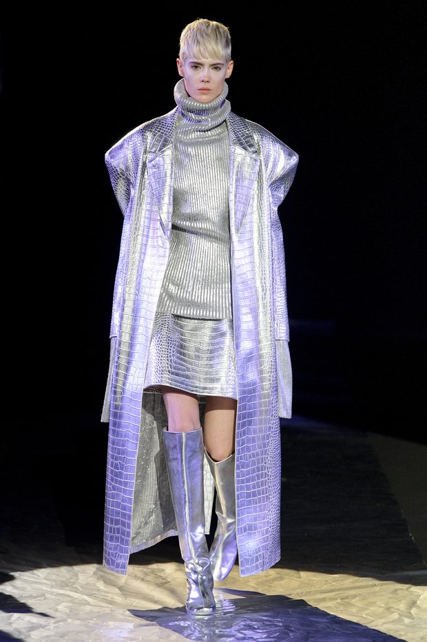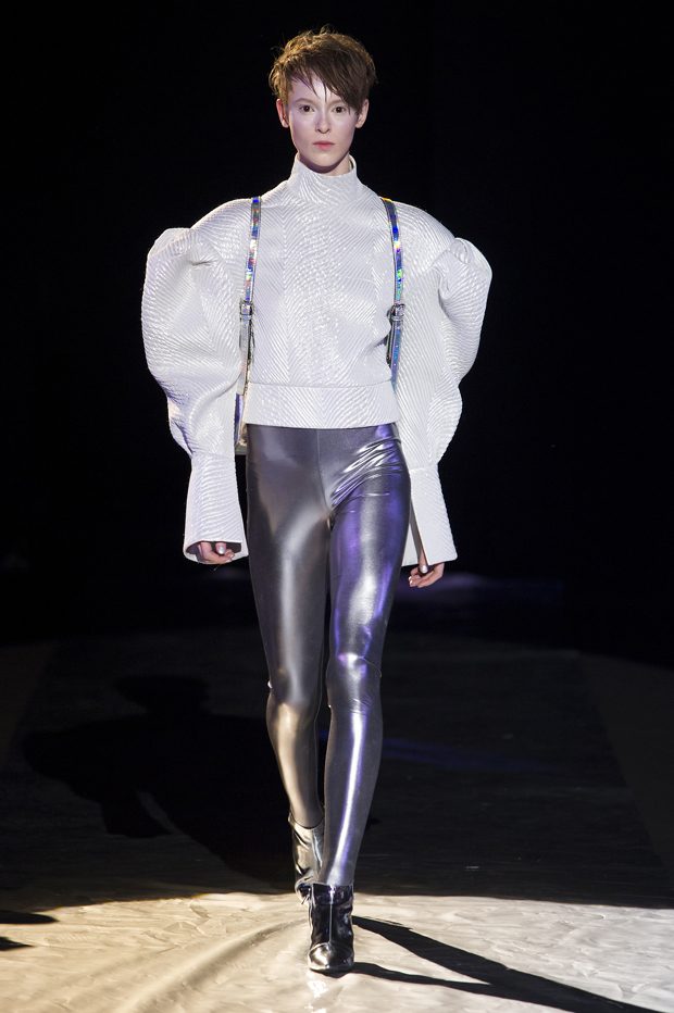 Inspirations range from the planets’ texture to the recurring and stereotyped elements of futuristic movies. Driven by the viewing of a documentary about the discovery of some pieces of aluminum foil, which were thought to be part of aliens’ skin, the designer’s endless imagination flourished and flew into a style that perfectly conforms to the typical ANNAKIKI’s woman: a strong and rebel female not afraid of daring who aims to be different from the crowd by searching her own individual style. – from Annakiki
