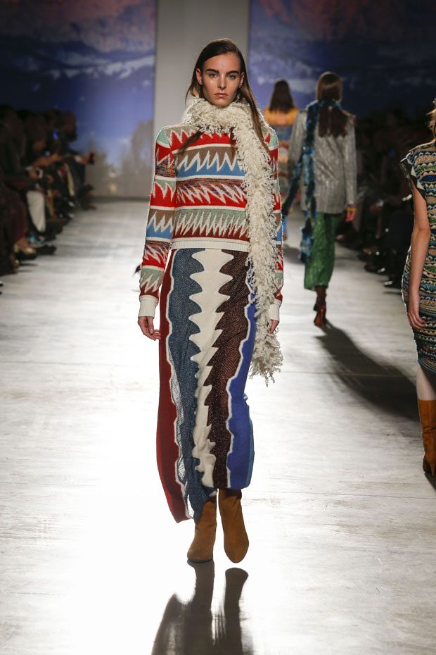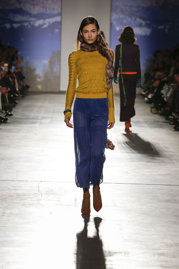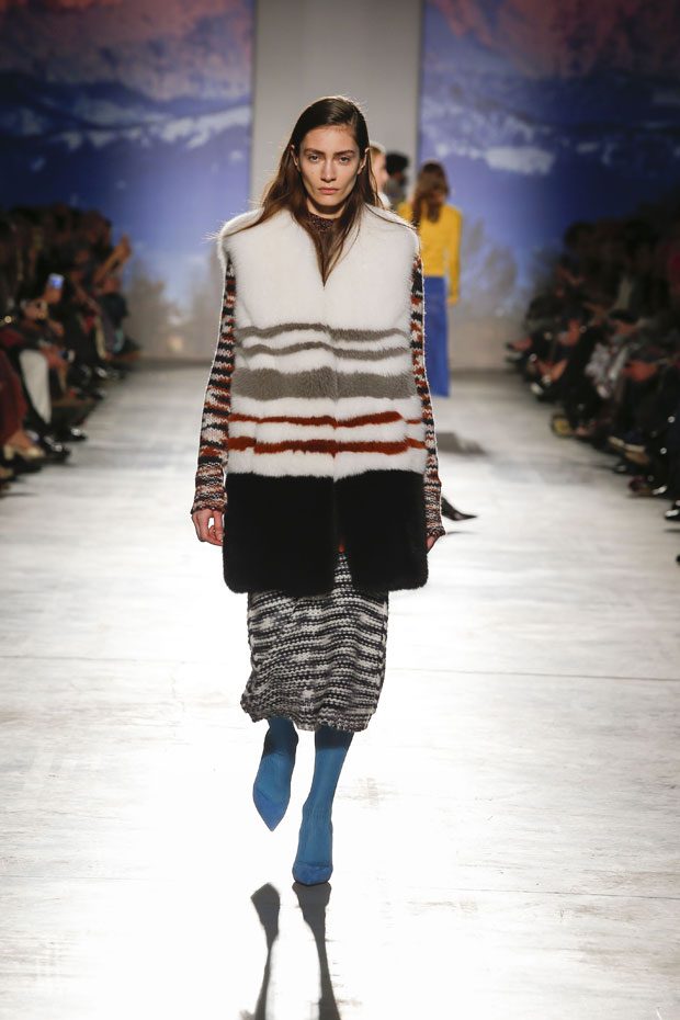 When it comes to the outerwear itself, so crucial for every fall winter collection Missoni mixes it’s signature knits with fur. From fur scarf and fur west, the design team rounds up an elegant and essentially warm winter attire. Discover more than fifty new looks sent down the runway.