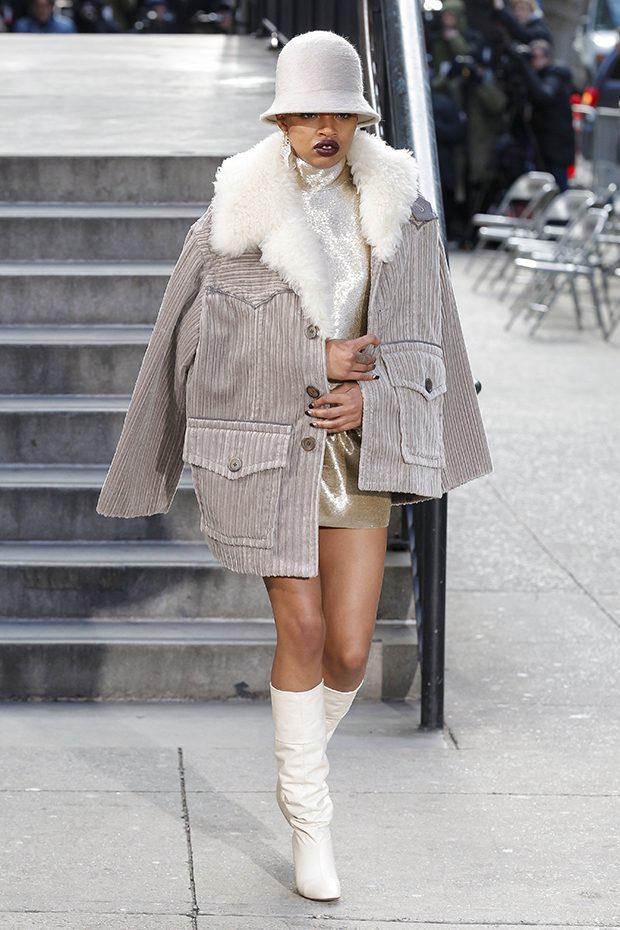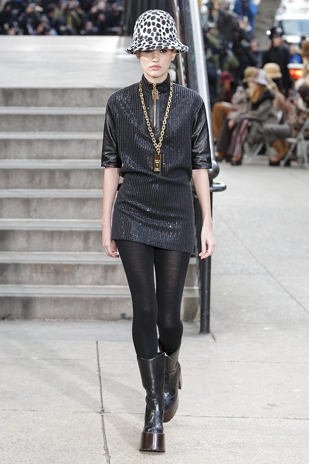 Several months ago I watched a documentary called, “HIP-HOP EVOLUTION.” The 4-part series chronicles the poignant and pivotal cultural movement that reshaped and redefined the landscape of music which gave way to a whole new language of style. As a born and bred New Yorker, it was during my time at the High School of Art and Design when I began to see and feel the influence of hip-hop on other music as well as art and style. This collection is my representation of the well-studied dressing up of casual sportswear. It is an acknowledgement and gesture of my respect for the polish and consideration applied to fashion from a generation that will forever be the foundation of youth culture street style. – Marc Jacobs