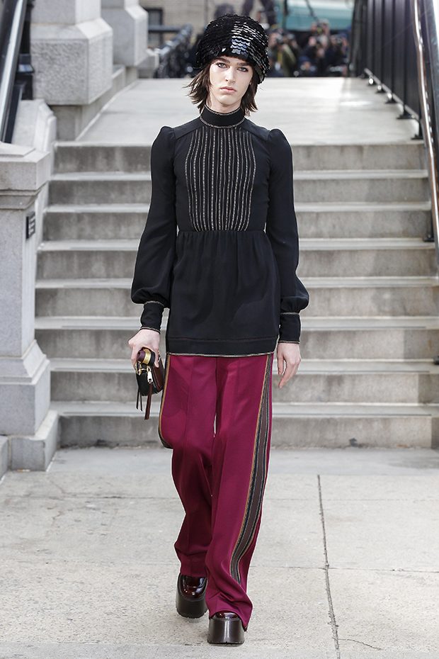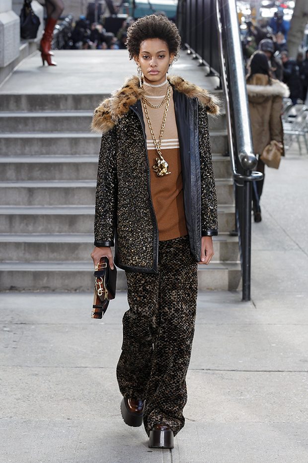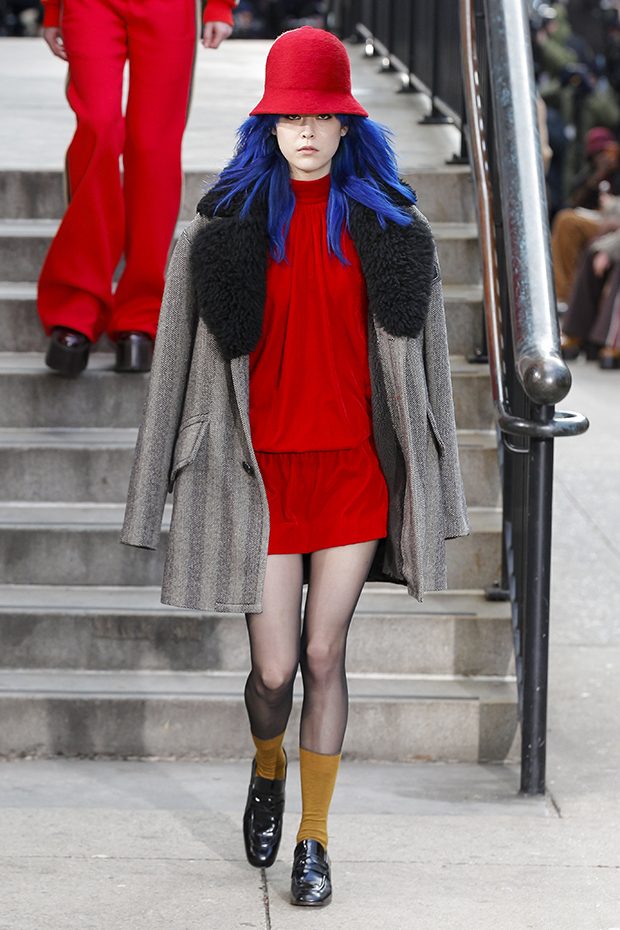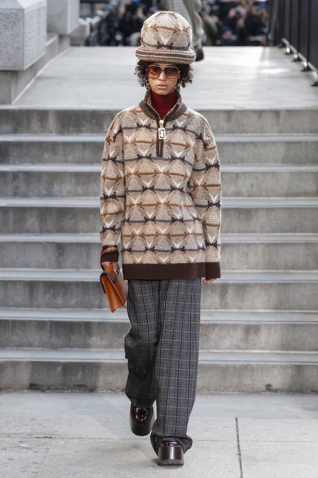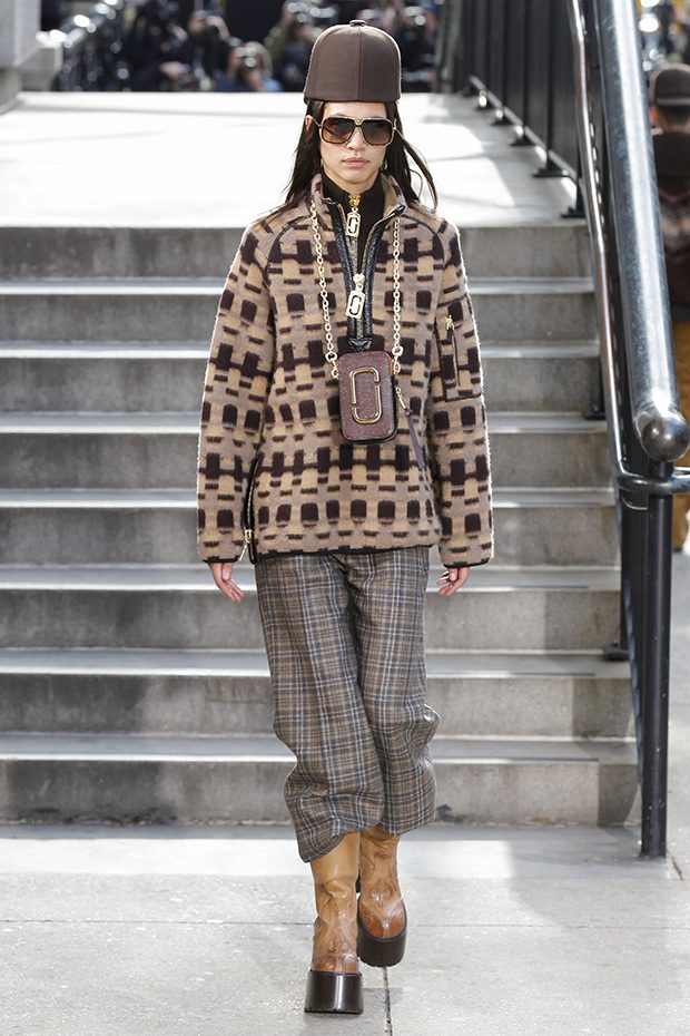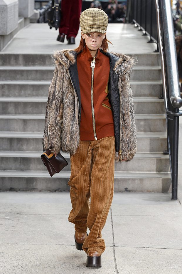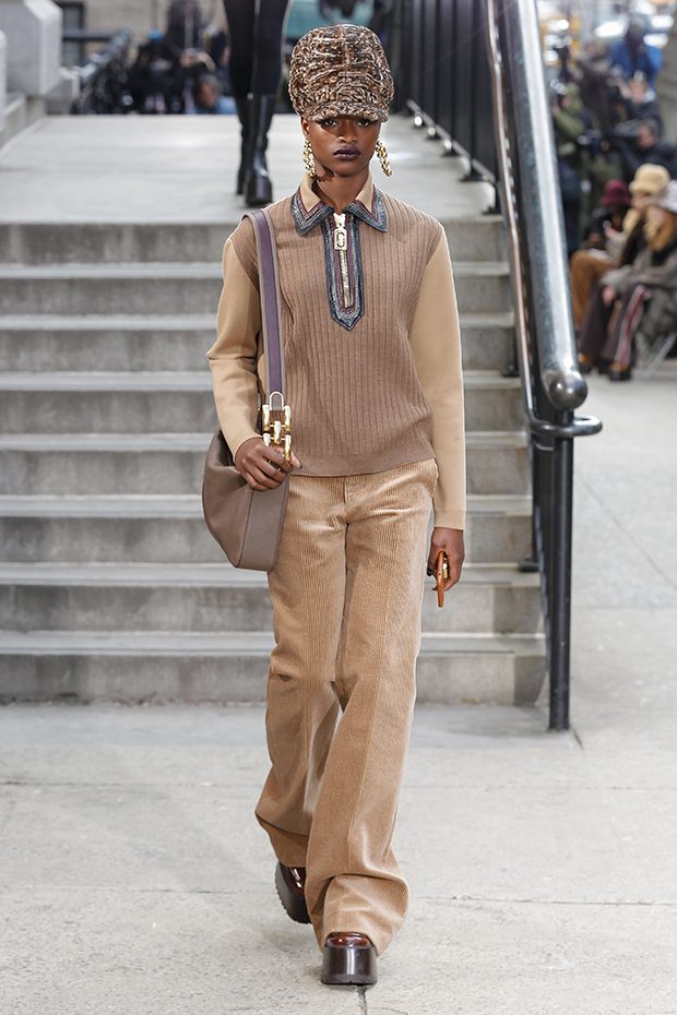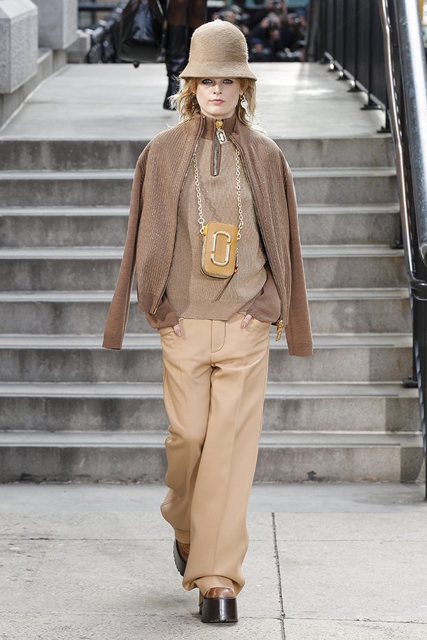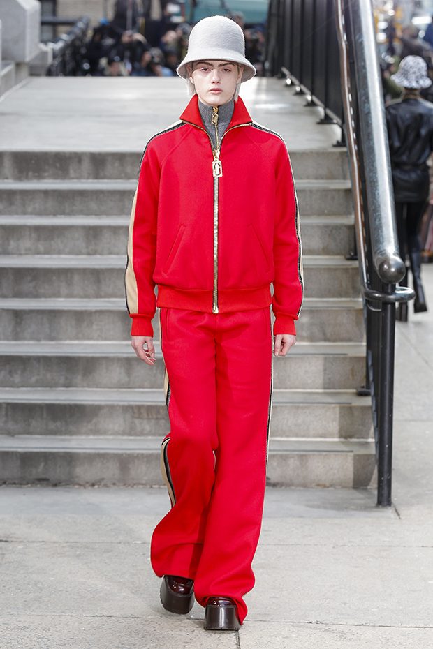 MARC JACOBS presented his fall winter 2017.18 collection during the New York Fashion Week. Taking the clues from casual attire and sportswear, the collection features everyday looks – a coat over a dress, a sweater with pants or the casual polish of a track suit. The color palette is focused on warm neutral colors such as camel, ginger, brown, gold, red and maroon.