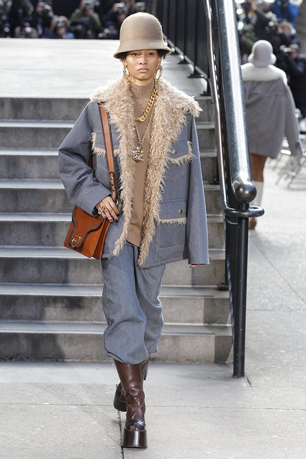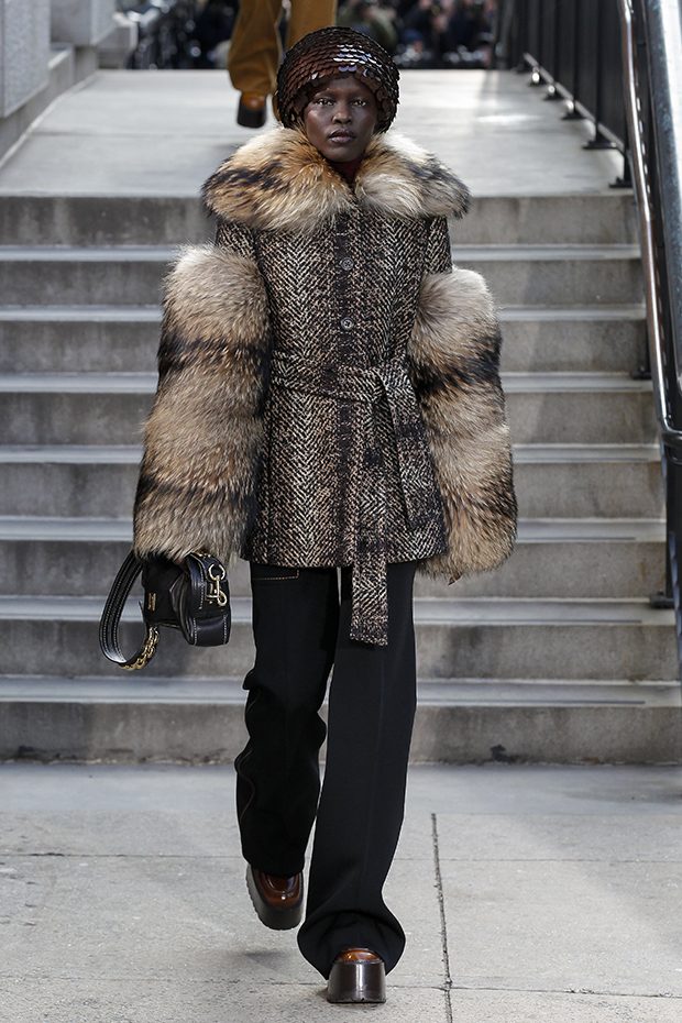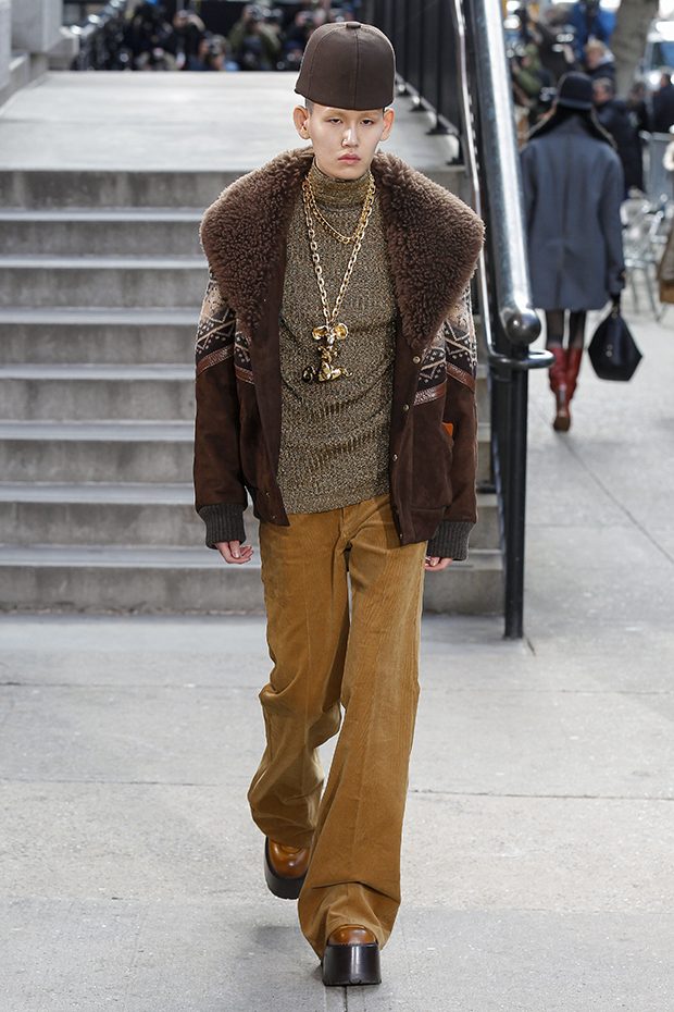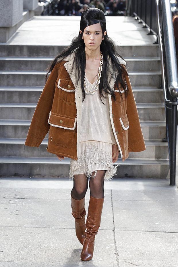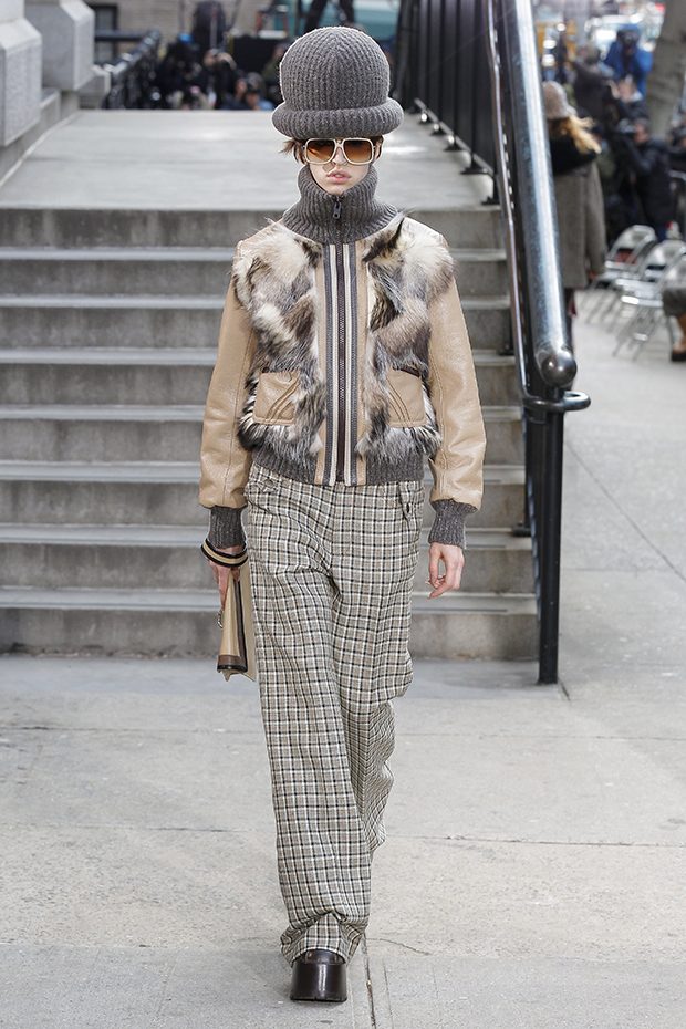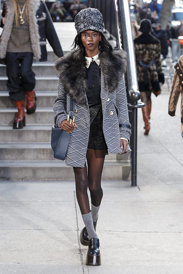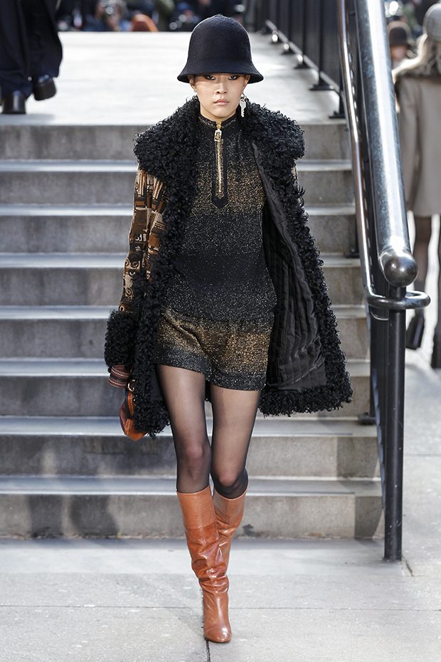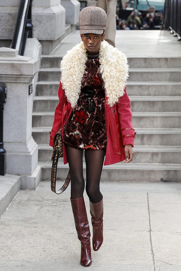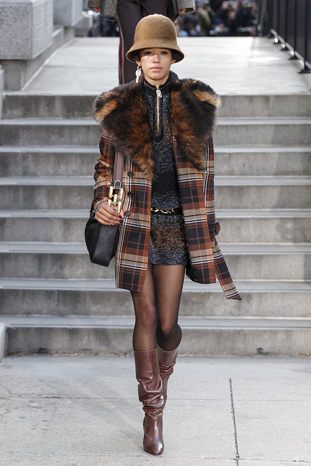 MARC JACOBS presented his fall winter 2017.18 collection during the New York Fashion Week. Taking the clues from casual attire and sportswear, the collection features everyday looks – a coat over a dress, a sweater with pants or the casual polish of a track suit. The color palette is focused on warm neutral colors such as camel, ginger, brown, gold, red and maroon.