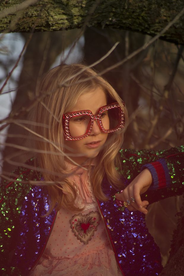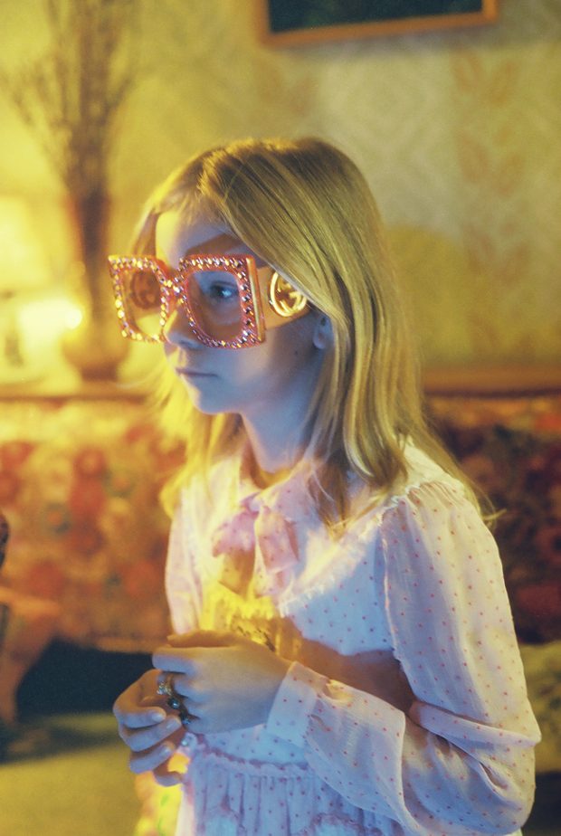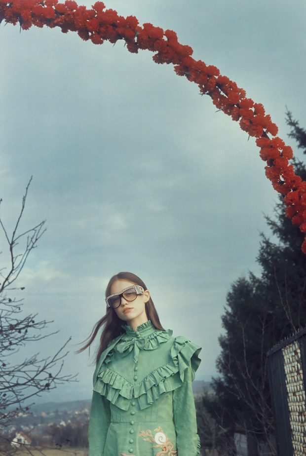 Collins creates a world where everything is not quite as it seems, and what begins as a window into rural family life soon gives way to a fantastical dream. Escaping from the sleepy surroundings of her grandmother’s living room, her two young cousins are transported on a surreal voyage, wondering through the oneiric countryside before stepping into the ornate surroundings of a traditional thermal bath-house, which hosts the final scenes of this journey. Throughout the film, key designs from the Gucci Spring Summer 2017 eyewear collection stand out, boldly matching the surreal surroundings and the eclectic characters. Among these styles, “Hollywood Forever” sunglasses – which debuted on the Spring Summer women’s runway – light up the atmosphere with their crystal clusters and refined decorations. Gucci’s eyewear and Petra’s boundless imagination blend perfectly in this personal and unique short film, woven together with magic, wonderment and memories. – from Gucci