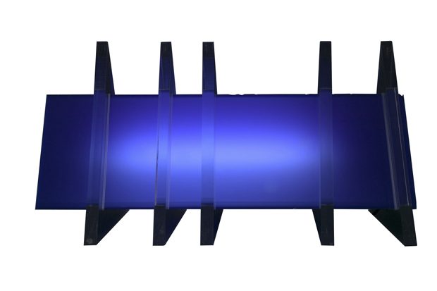 Lampada triangolare in plexiglass blu (Blue Plexiglass triangular lamp), 1980, 66 x 40 x 35 cm