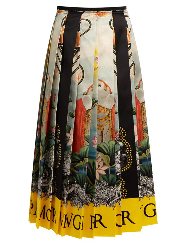 GUCCI Elephant and waterlily-print pleated satin skirt