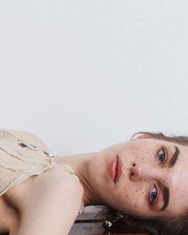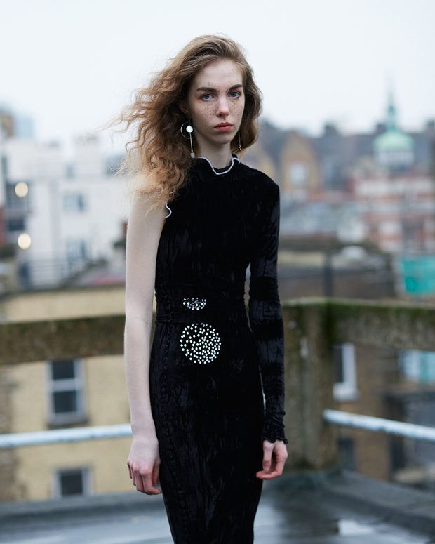 Photographed in London against a harsh backdrop and brutalist skyline. ‘New Age meets Old Word’ displays a playful youthfulness and doll-like charm. The modern ‘Zen-line’, a signature Peet Dullaert feature, offers a forward an almost futuristic outlook. Despite this turbulent time, love and beauty prevails. – from Peet Dullaert