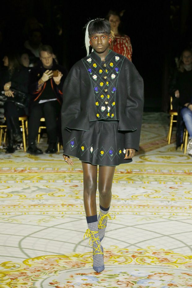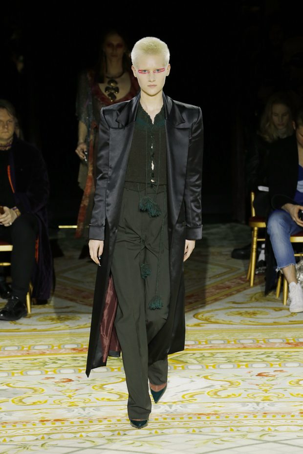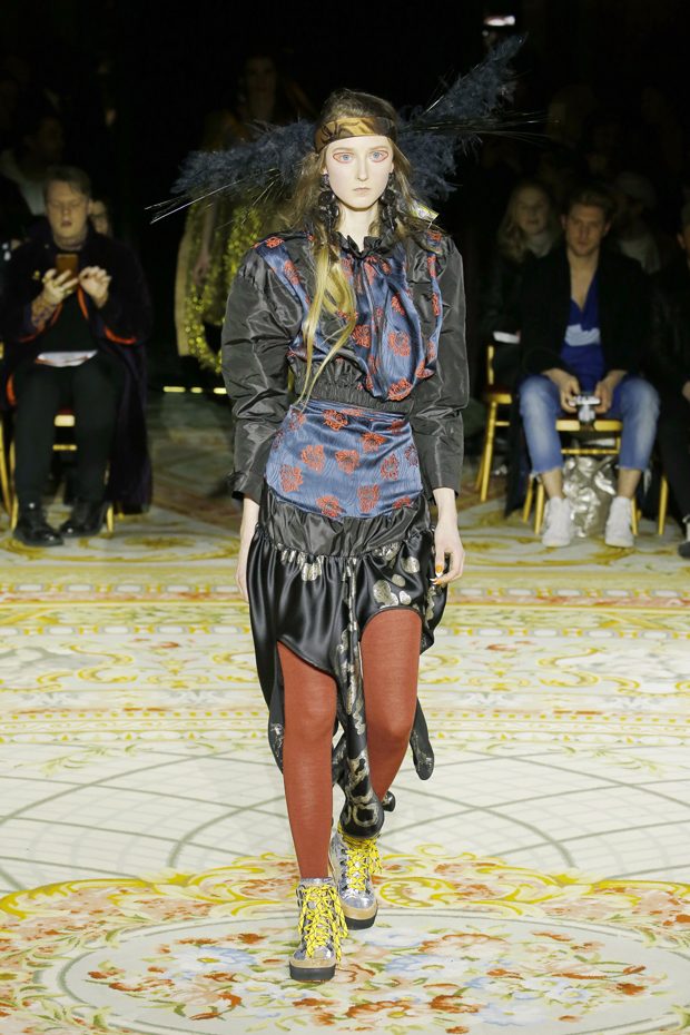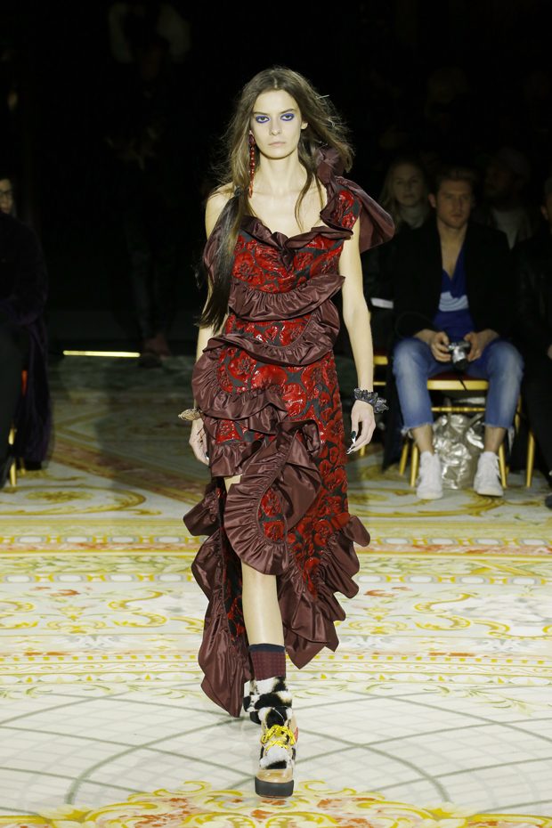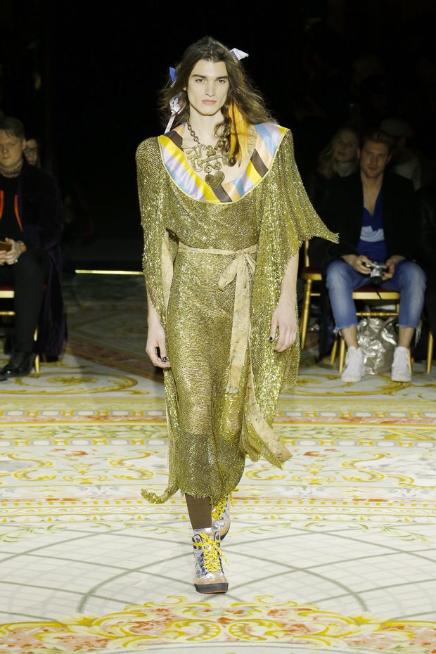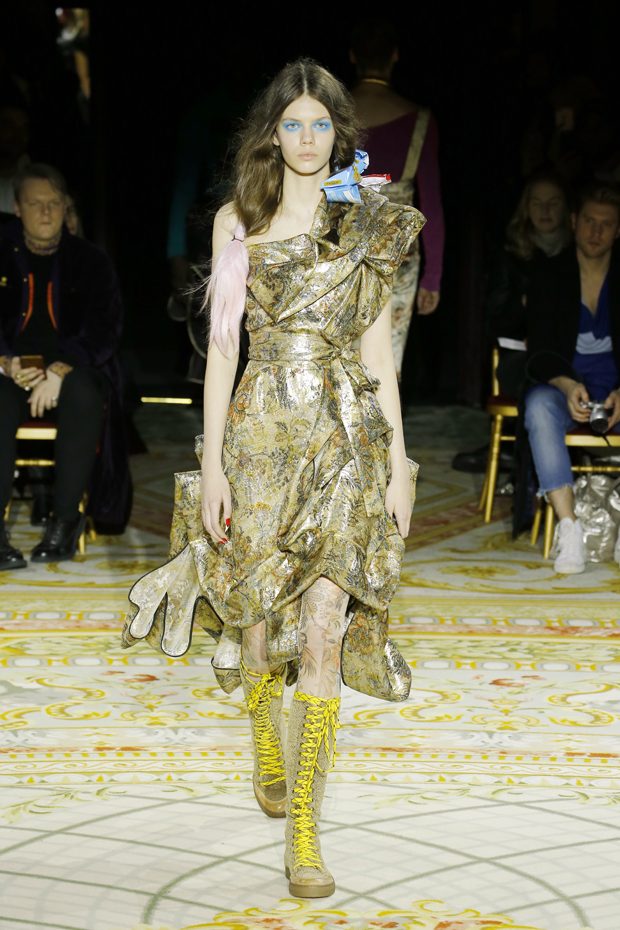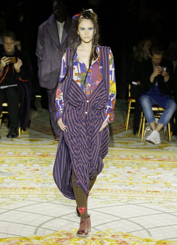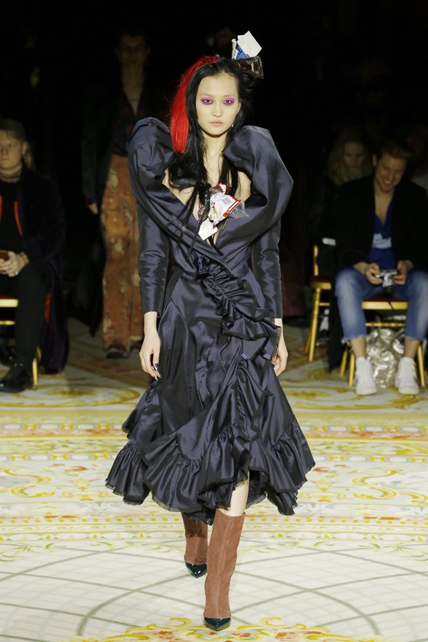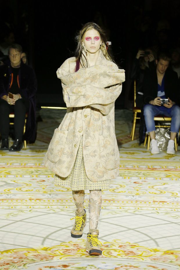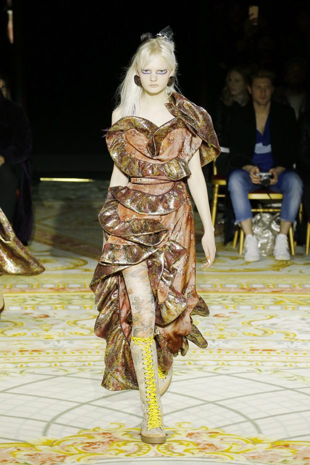 Andreas Kronthaler presented his Fall Winter 2017.18 collection for VIVIENNE WESTWOOD during the fifth day of the ongoing Paris Fashion Week. Inspired by his Austrian roots, the designer pays an homage to Wiener Werkstätten, the production community of visual artists in Vienna