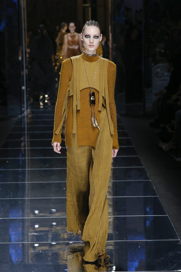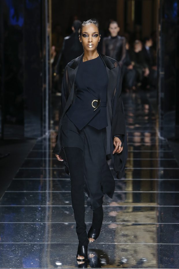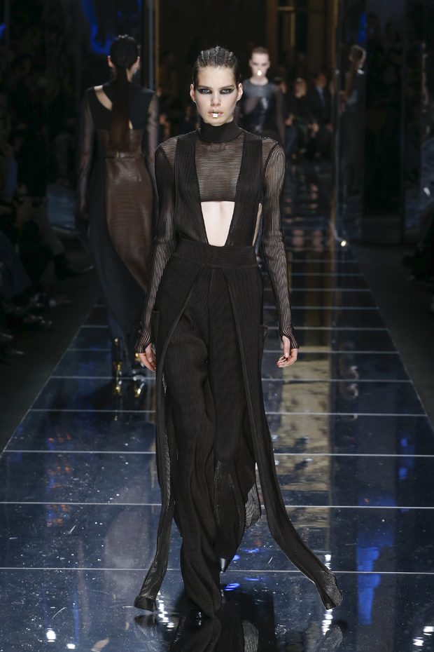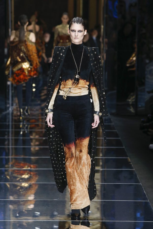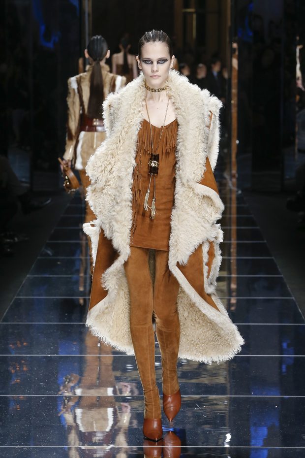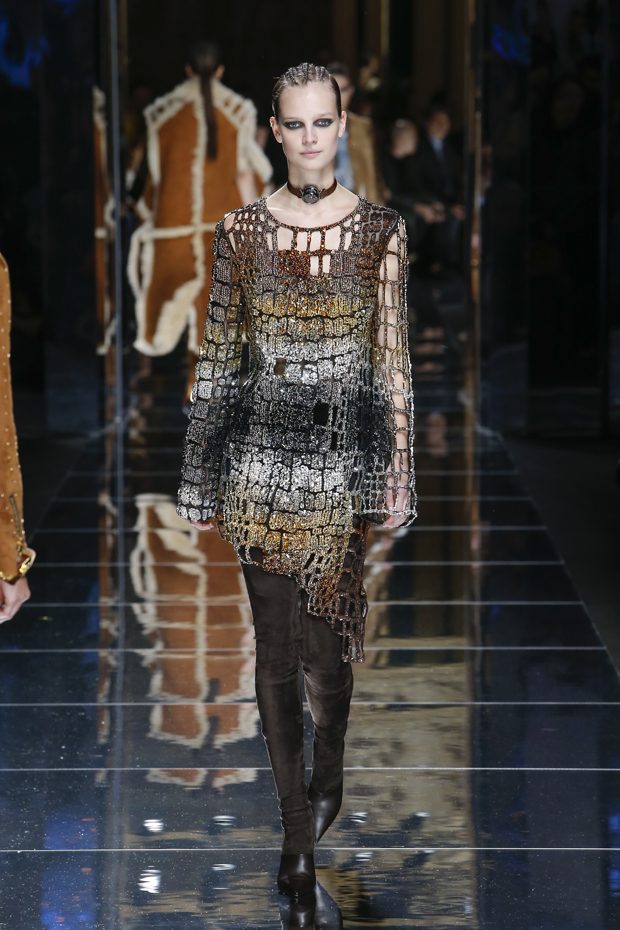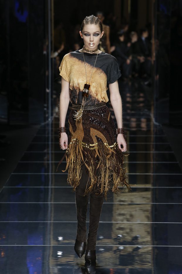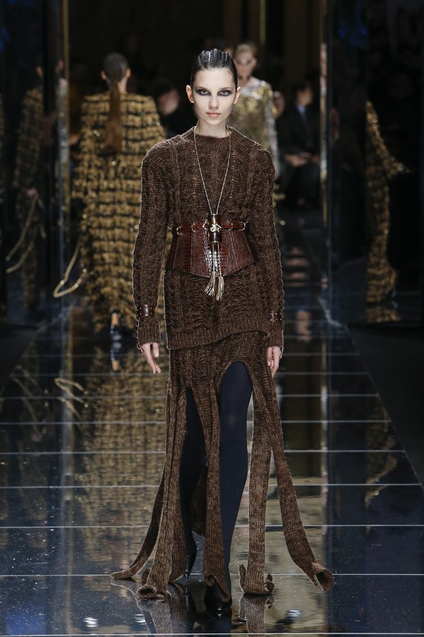 I was just a kid during Nirvana’s heyday, but their powerful music of rebellion definitely marked me then—and continues to resonate with me today. Those liberating lyrics advised us to ignore guidelines of what’s expected and remain true to ourselves. It’s that same mindset that propels today’s strong women as they march down the runway. They’ve embarked on the perfect road trip, picking up influences while traveling across the globe’s most awe-inspiring landscapes—the Serengeti, the Far West, Amazonia. The women of this diverse Balmain army revel in their freedom to celebrate themselves, their beauty and their power. Their impressive inner strength is manifest in this collection’s many animal patterns, prints and illustrations. – Olivier Rousteing