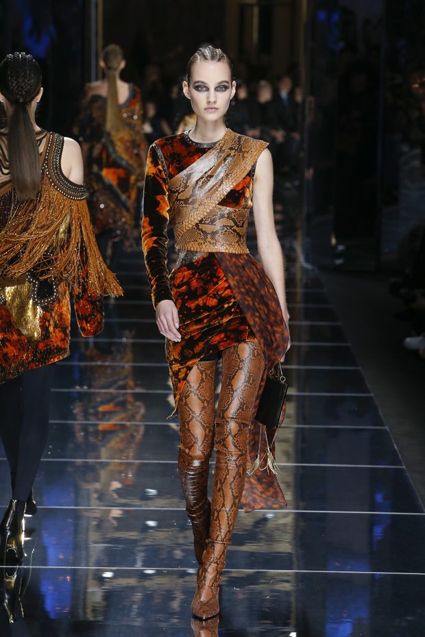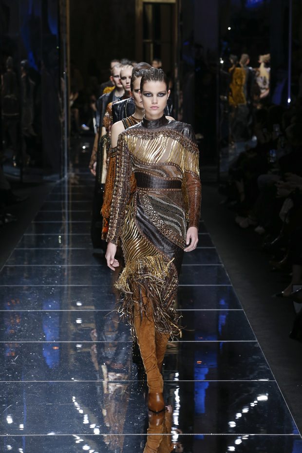 Olivier Rousteing presented Balmain‘s Autumn Winter 2017/18 collection during the third day of the ongoing Paris Fashion Week. Relying on a Balmain’s long tradition, Rousteing adjusted the new collection to the today’s spirit of youth, freedom and rebellion. The focus is on animal prints, inspired by the landscapes of Serengeti, the Far West and Amazonia, combined with the well-known Balmain rock and roll chic.