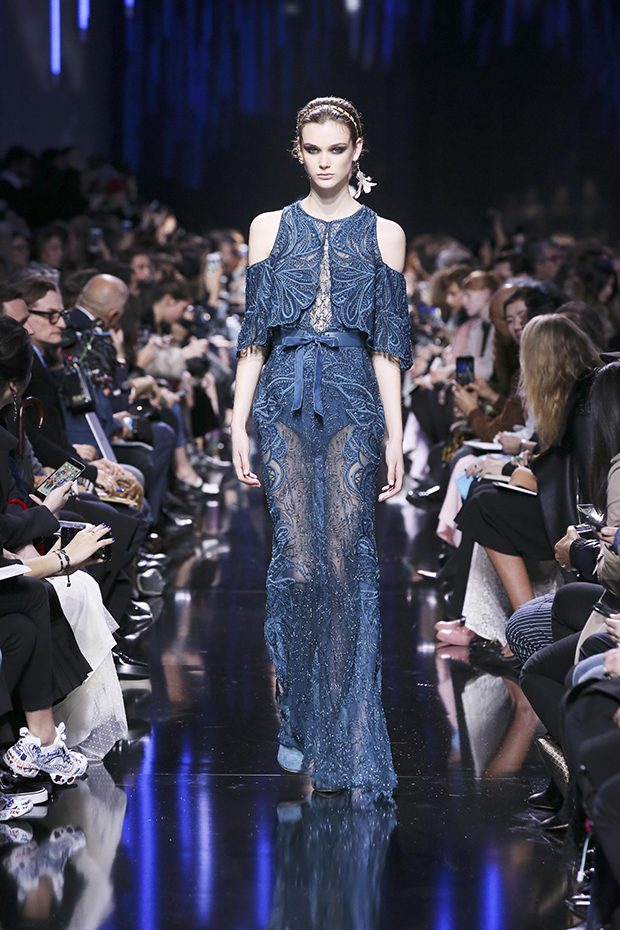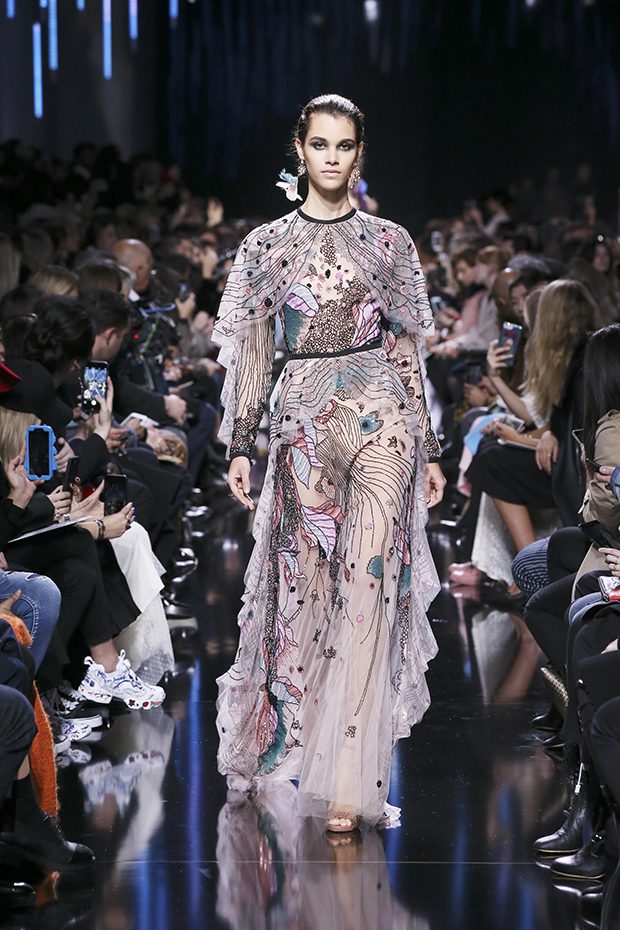 Elie Saab presented Autumn Winter 2017/18 collection during the fifth day of the ongoing Paris Fashion Week. Inspired by one of ballet’s most iconic scores, Giselle, the collection is a tale of human love crossing into the supernatural realm.