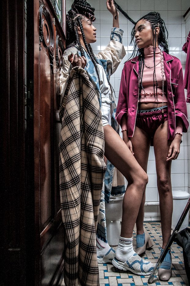 Their ultimate vision is to create a full wardrobe „literally? from inside out – owning underwear that matches with your favorite outfit is the true luxury. Sirloin is a brand that celebrates the importance of laziness and stupid elegance, which requires a different kind of confidence. The collection focuses on the „intellectual? questions that every Sirloin girl would ask herself during their brief moments in the toilet – a place that allows the trivial, silly yet brilliant questions and ideas in life flow free. The public toilets at Madeleine, built in the 1930s with monumental status and now opened for the first time again since 2011, emphasize the self-ironic point of view. SIRLOIN have flown from another end of the world to present their very first collection at this elegant toilet – from Sirloin