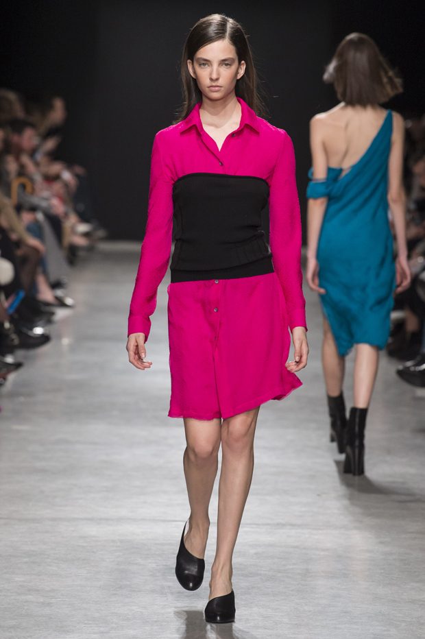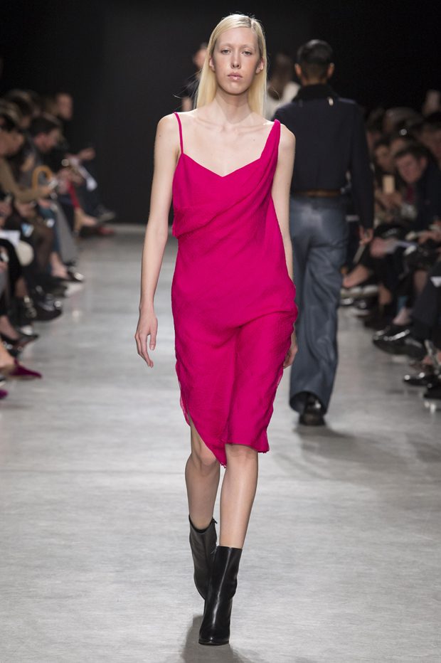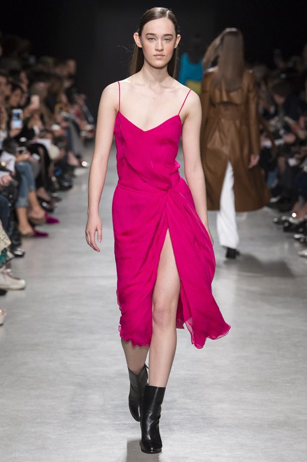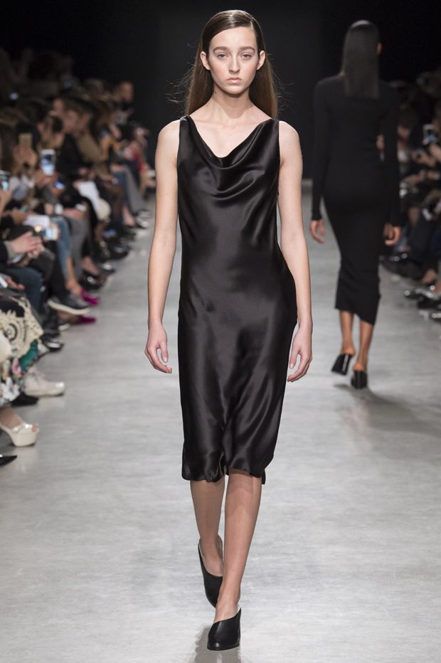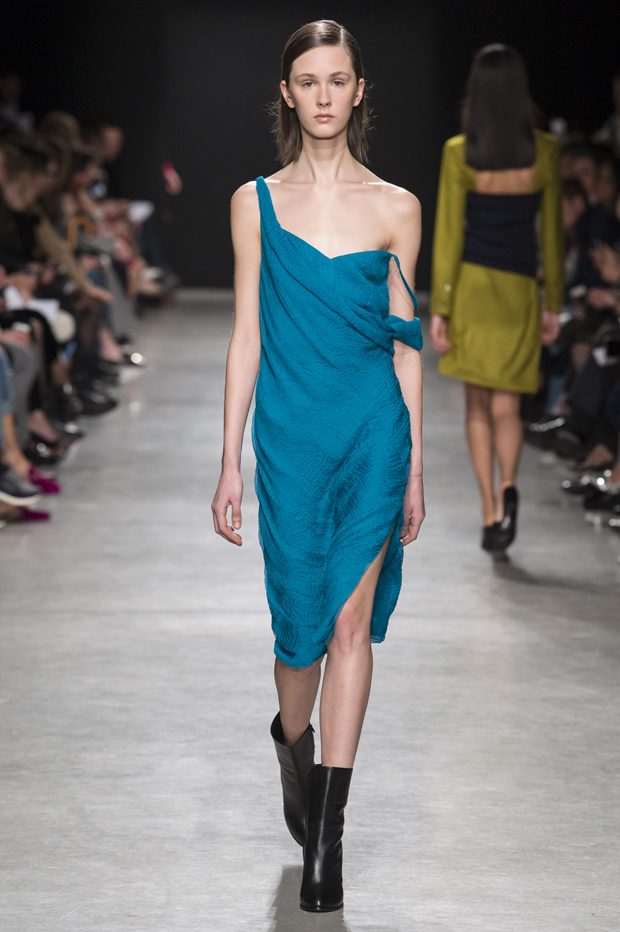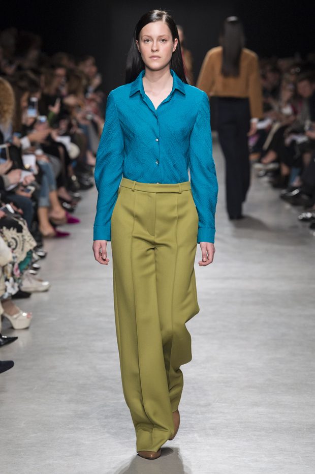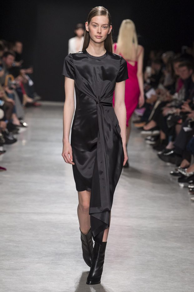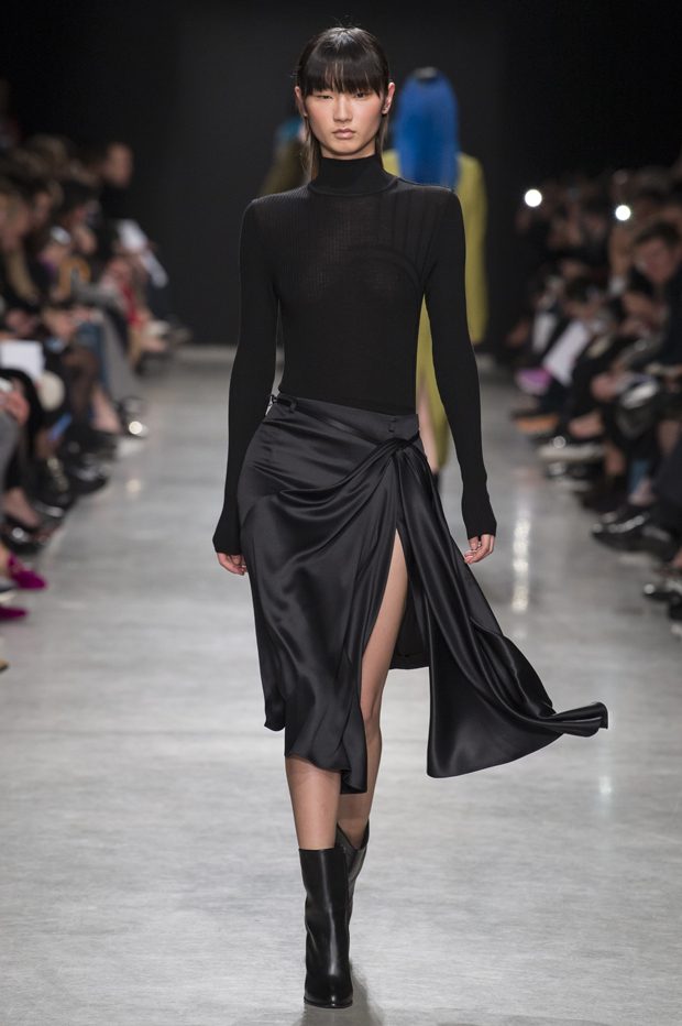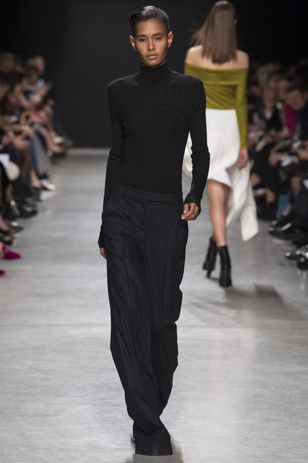 The Winter 2017 collection of the Maison began by going back through the archives, and two photographs: one by Patrick Bertrand of the Guy Laroche Haute Couture collection 1971 titled « Nuit Noire en crêpe »; and another by W. Marshall for the Guy Laroche Haute Couture collection 1972 entitled “Fourrier prend couleurs”. These photographs depicted a woman in a seductive long black crepe dress and another in a fur coat respectively. The collection delves into its Seventies archives, when its clothes were in equal parts alluring and luxurious, and most importantly, dedicated to celebrating the female form. The designs are sharp without being minimalistic: they are precise, meticulously cut, and streamlined to revisit timeless essentials with a modern twist. – from Guy Laroche