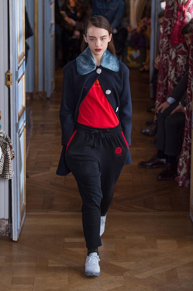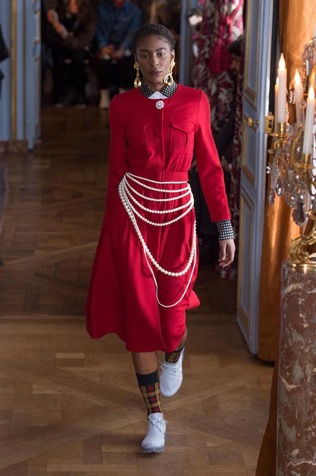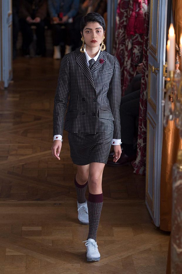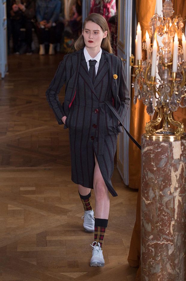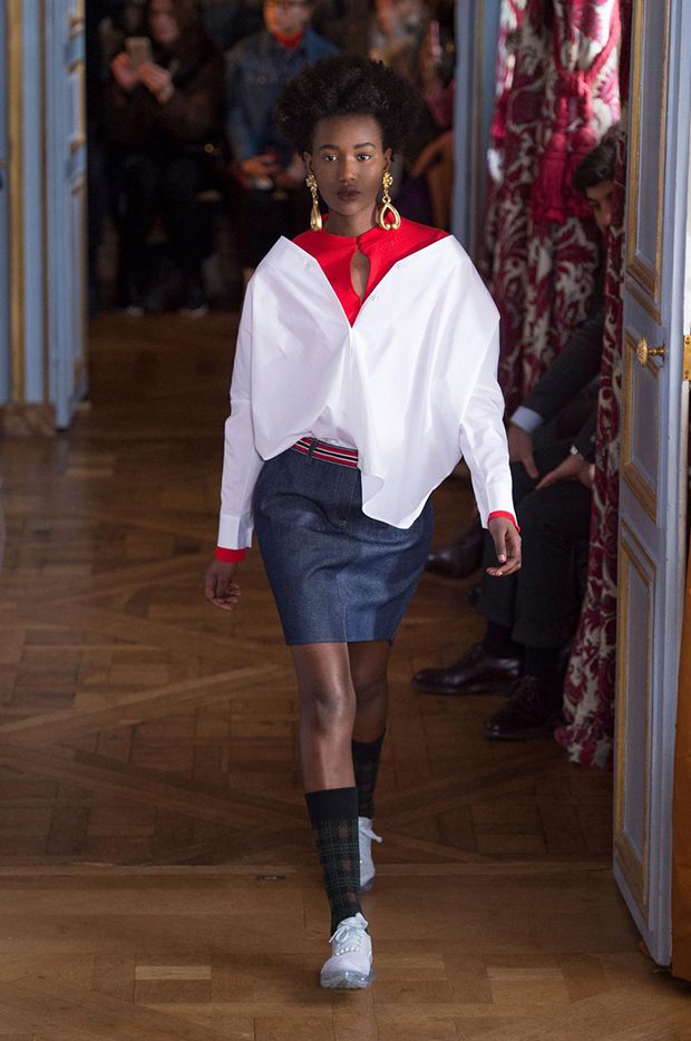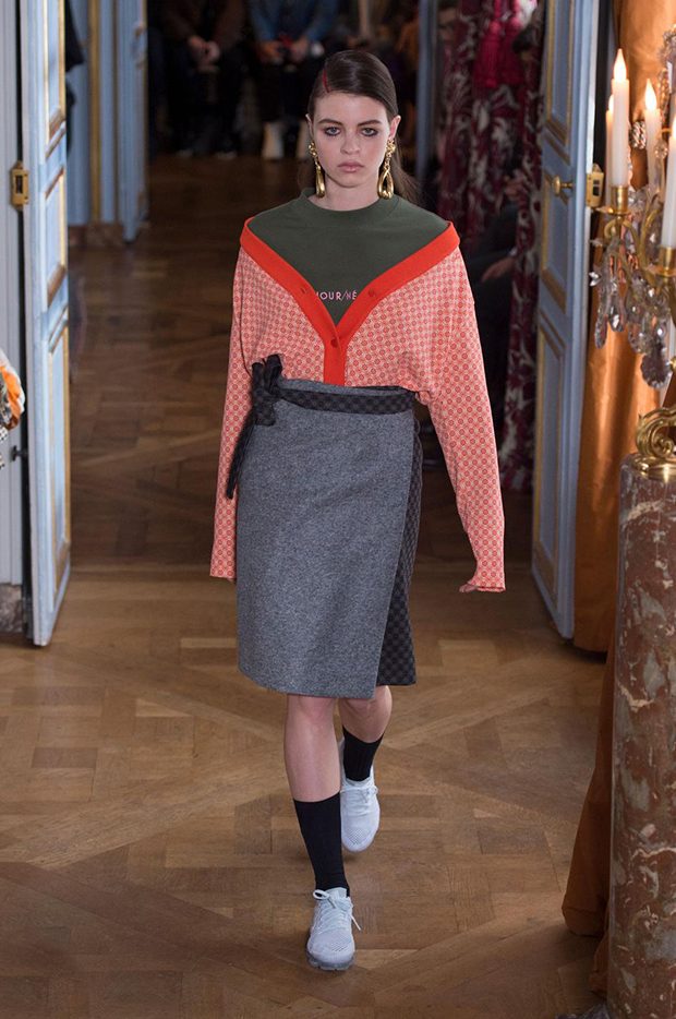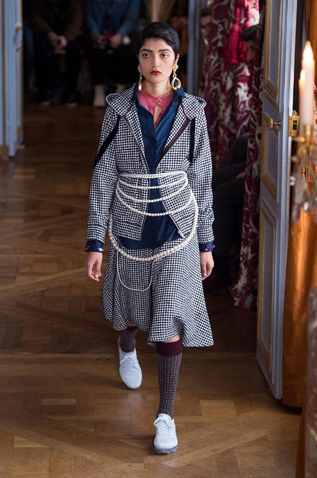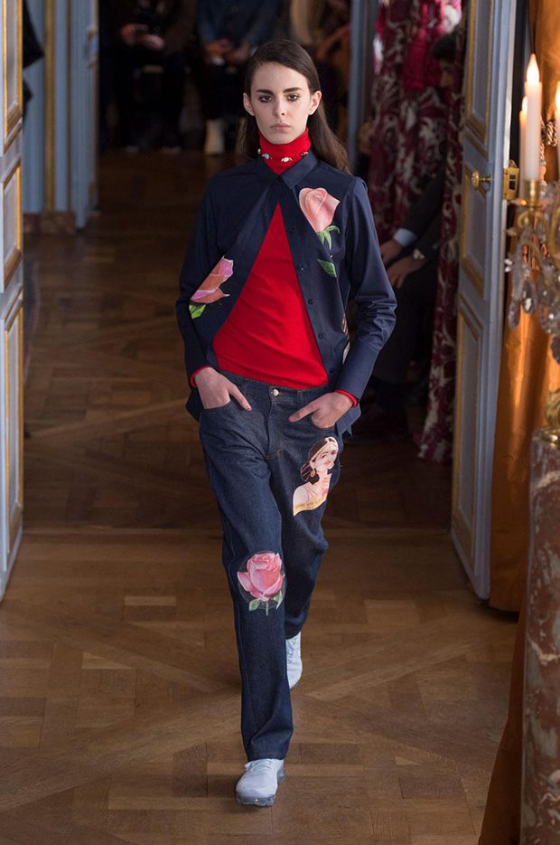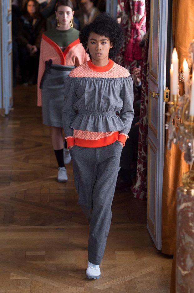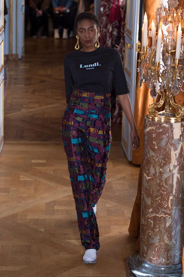 JOUR/NE presented Autumn Winter 2017/18 collection during the Paris Fashion Week. Inspired by Wes Anderson’s Darjeeling Limited, the collection combines tailoring with the male wardrobe, featuring three-piece suits, high waisted trousers, patchwork fabric.