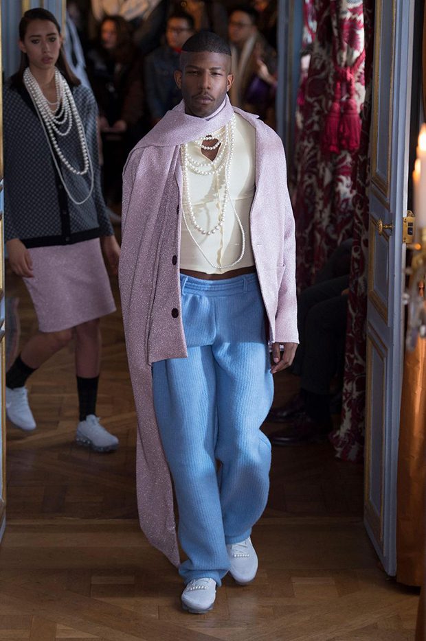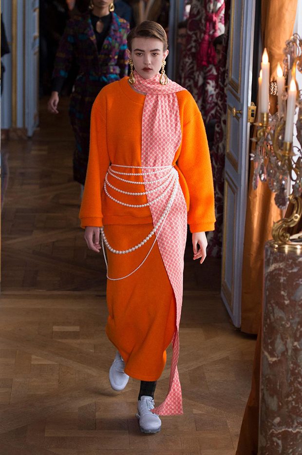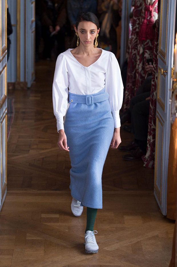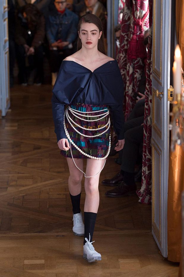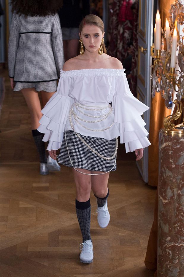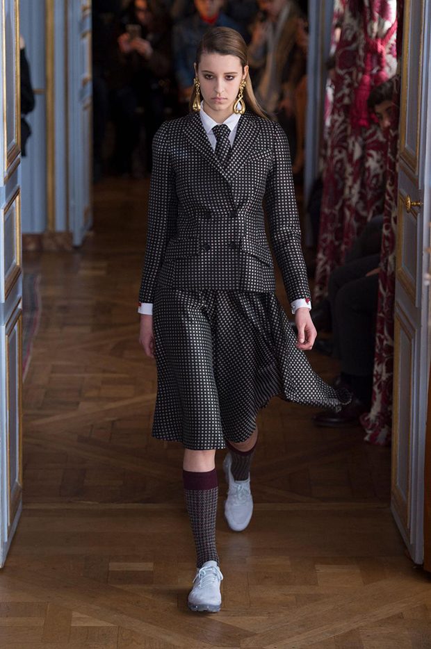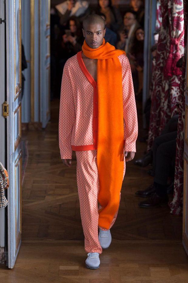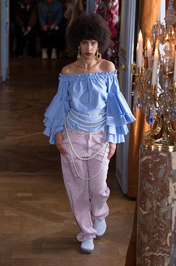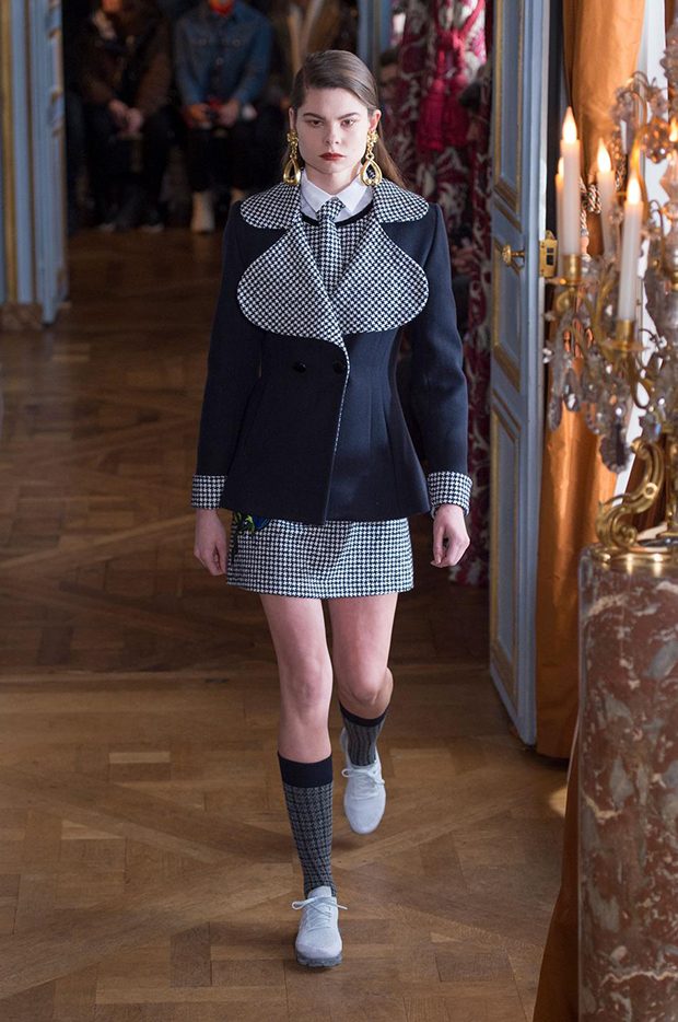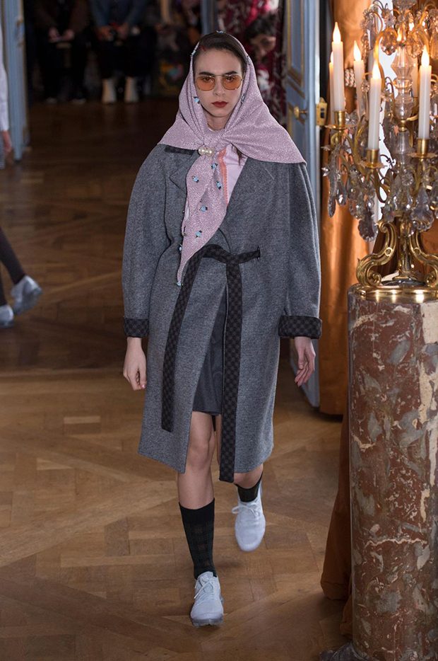 JOUR/NE presented Autumn Winter 2017/18 collection during the Paris Fashion Week. Inspired by Wes Anderson’s Darjeeling Limited, the collection combines tailoring with the male wardrobe, featuring three-piece suits, high waisted trousers, patchwork fabric.