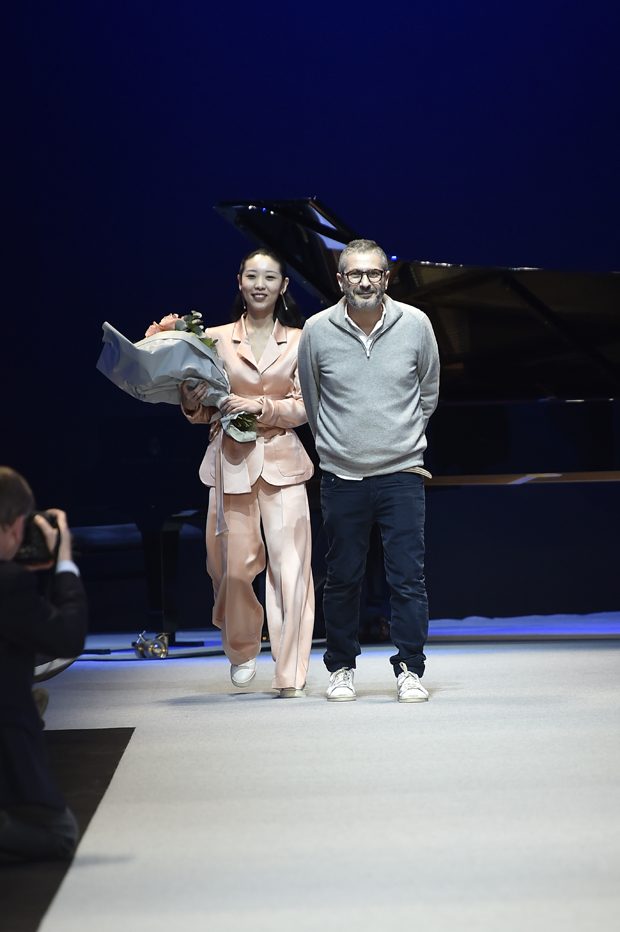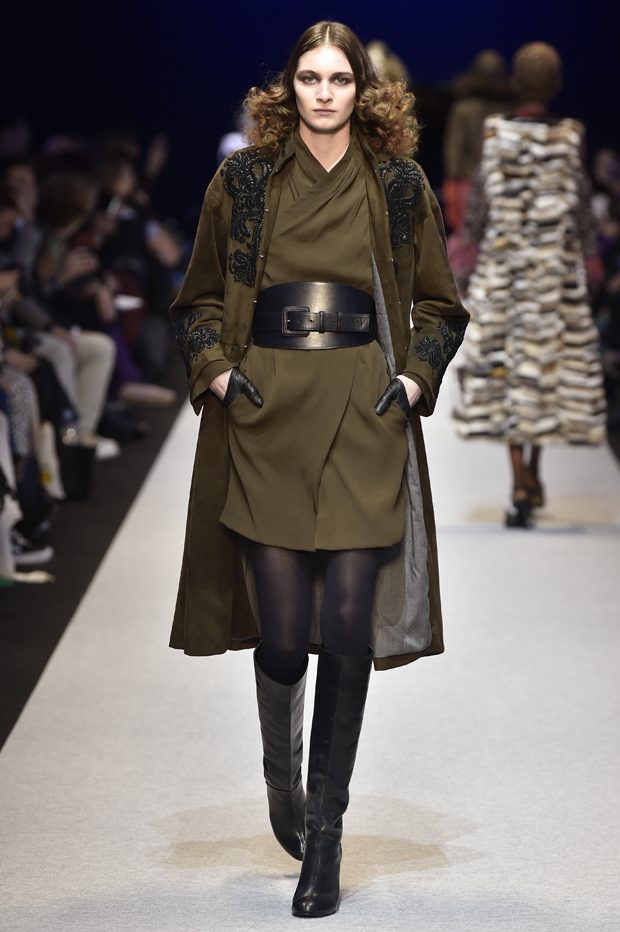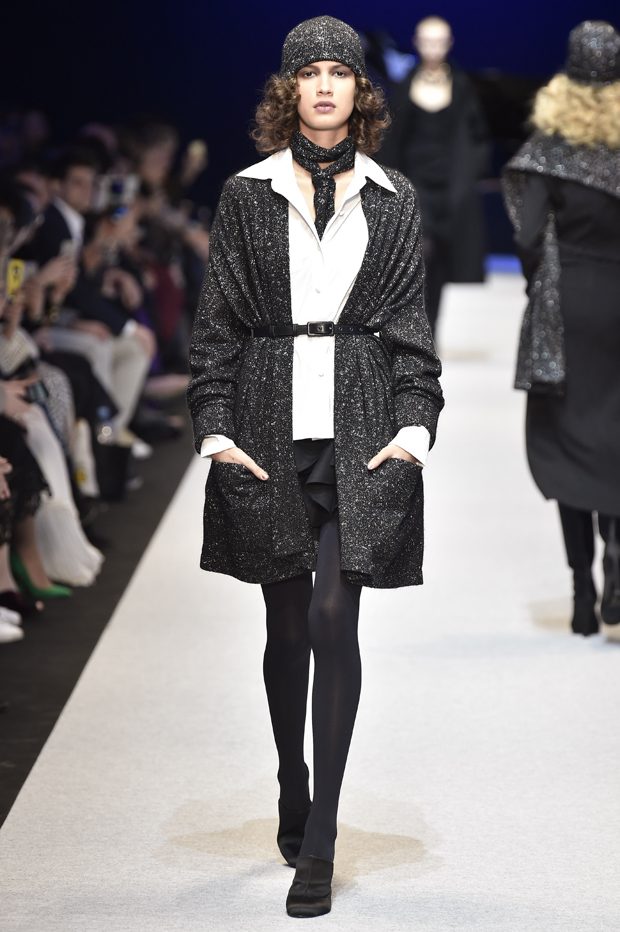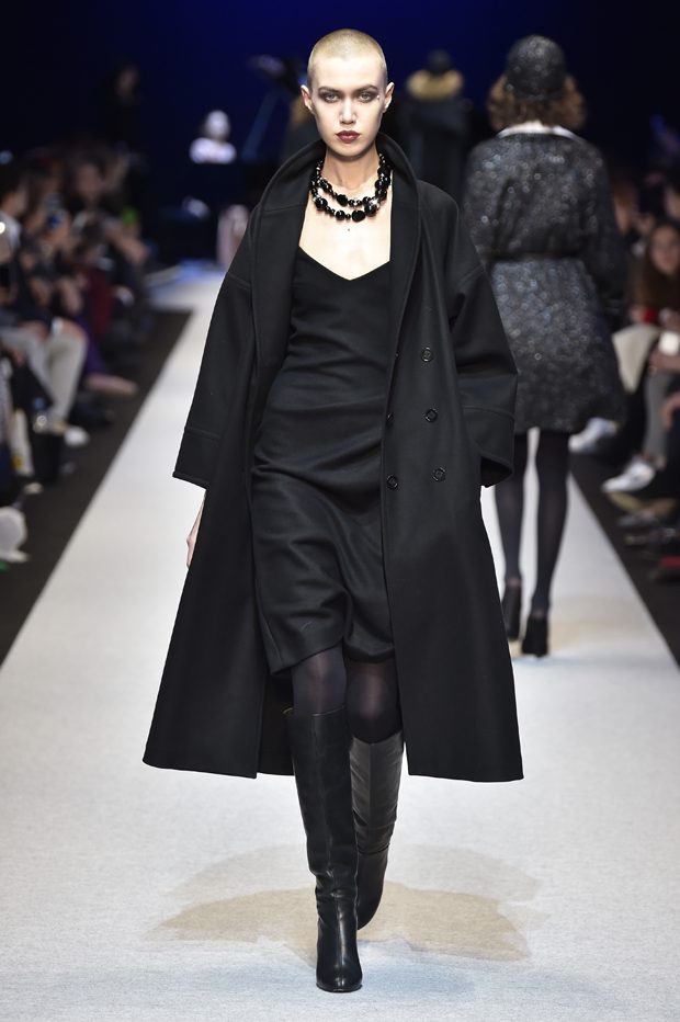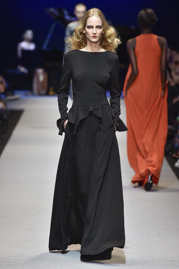 She walks her dog in the streets and parks of Paris, goes to her usual cafes, and loves “Diner en ville”. She is self confident, intelligent and sensual. She enjoys nightlife, chic restaurants and the Opera, as well as dancing in a buzzing Parisian club. She creates her own style and has a passion for mixing very feminine and seductive pieces with classic and androgynous tailoring. For the fall 2017 collection PASCAL MILLET stays true to his idea of french elegance and style; sophisticated yet modern, confident and utterly feminine. Perfect proportions and technique and a clean simple silhouette. The clothes are exquisitely crafted in noble materials: unexpected juxtapositions of fabrics and patterns, wool for structure to delicate silk for fluidity. Feminine and surprising embroideries for youthful looking dresses and jackets wearable for day to night. – from Pascal Millet