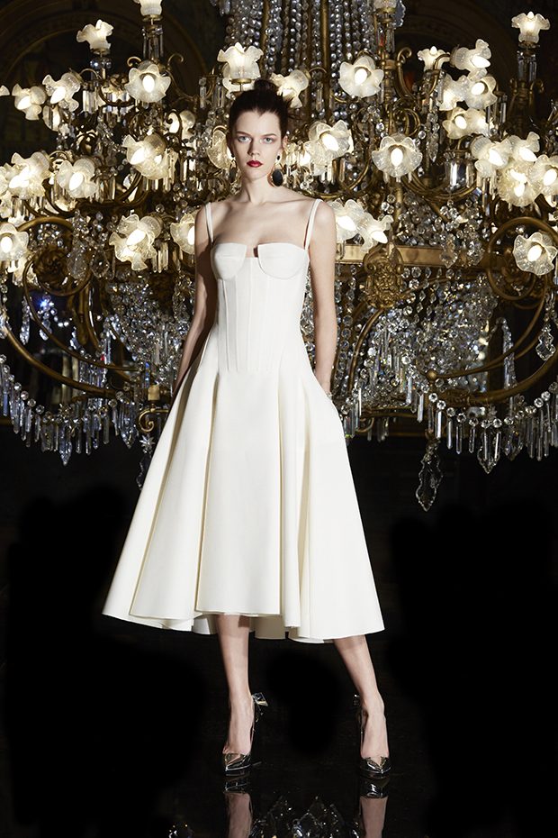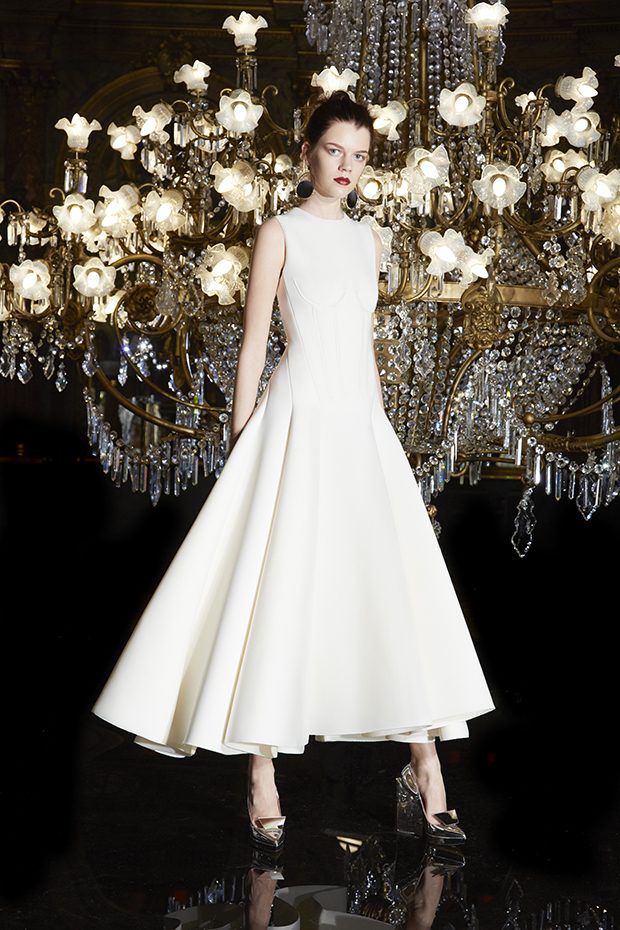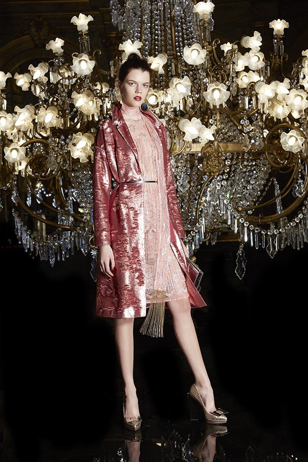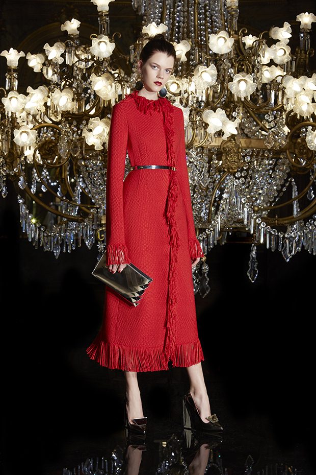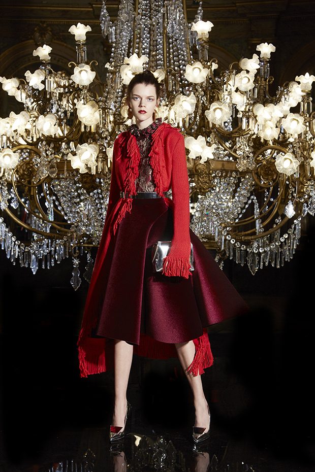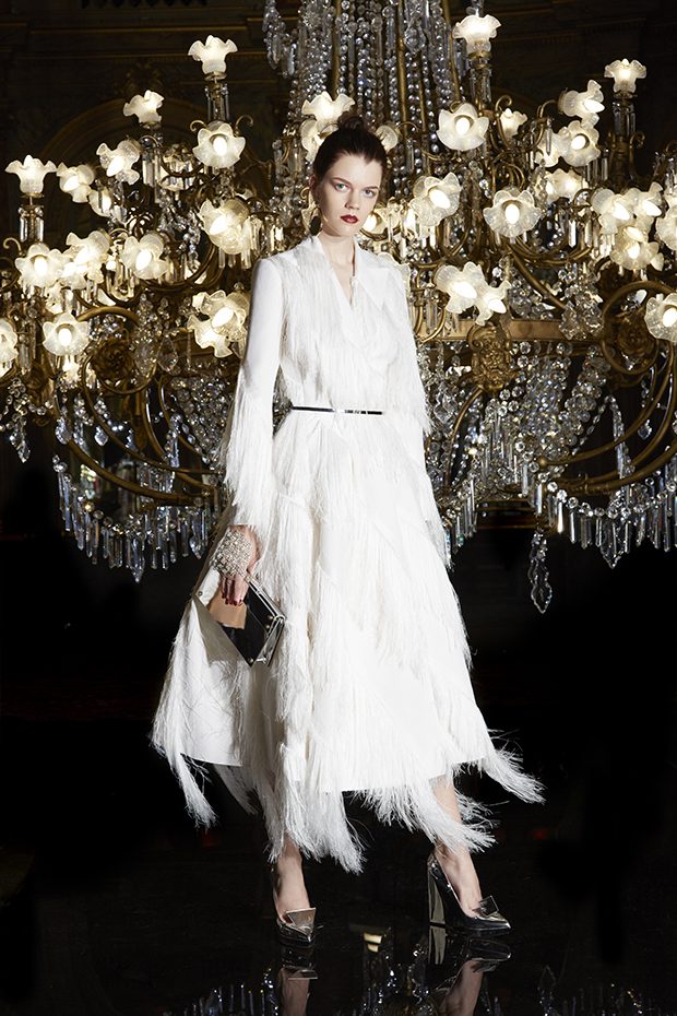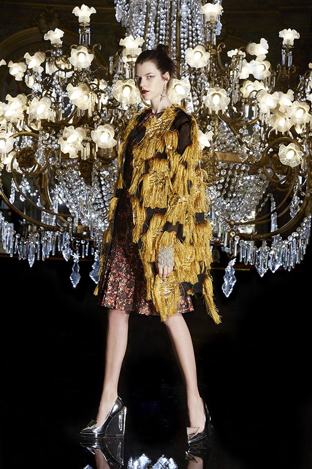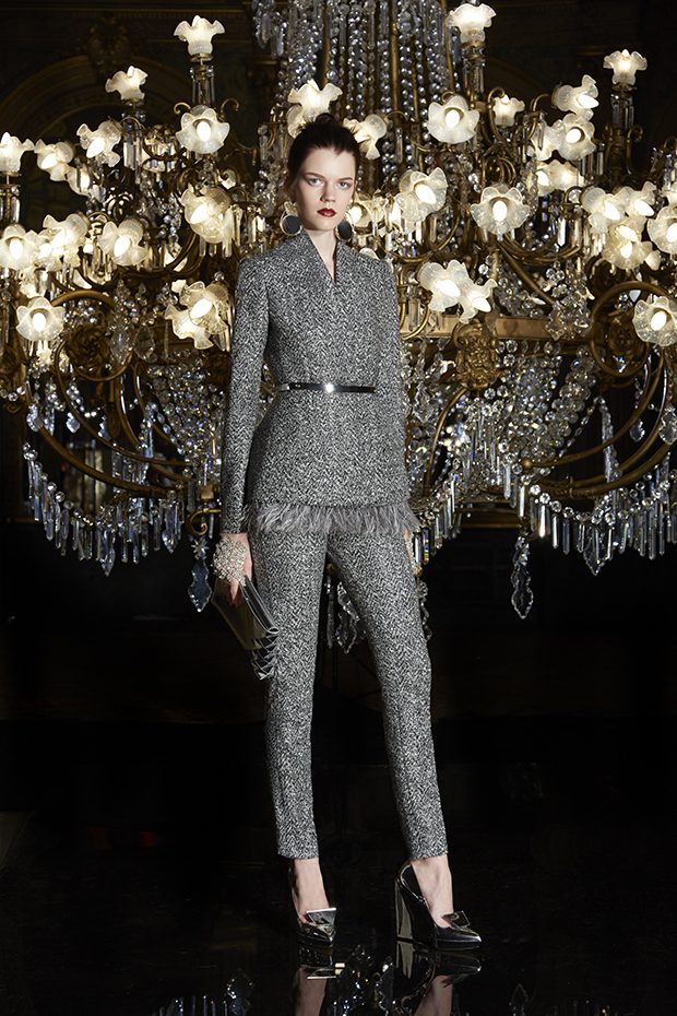 The Paule Ka woman, empowered and cultured, active and elegant, emerges from the modernity woven into the very fabric of this collection, reconnecting Paris with its deeply elegant roots. Structure opens the way, with precisely draped coats cocooning the body as an embrace of lush, tactile fabrics. Immaculate white forms a strong base from which classic tweeds and patterned woollens progress to the quiet luxuriance of chiné double face. After all, it is the nonchalant drape of a shawl that sparked these trompel’oeil propositions. The richness of the custom designed materials bestow a contemporary spin to a faux-classic silhouette: intrinsically Parisian but definitely looking forward. – from Paule Ka
