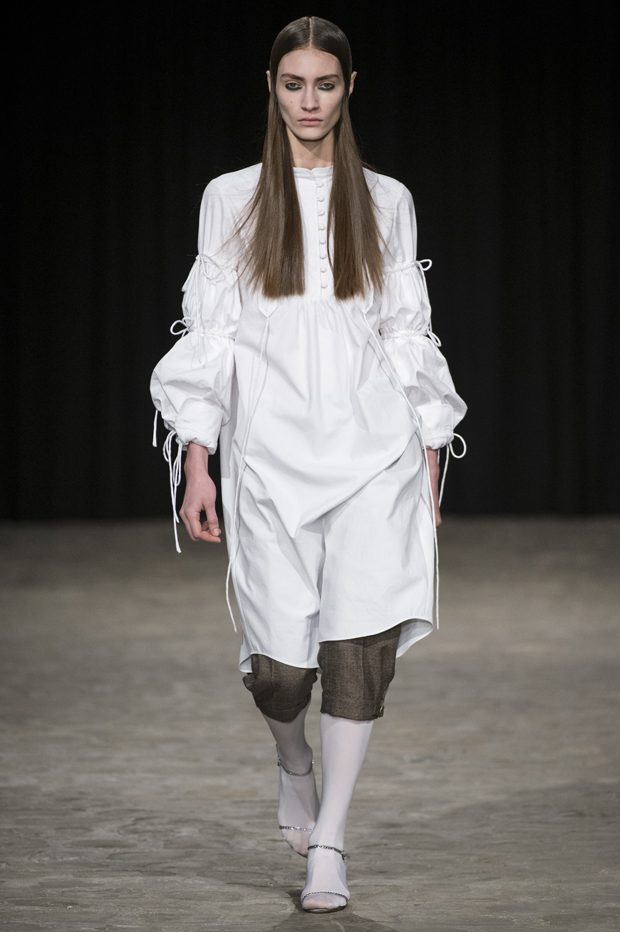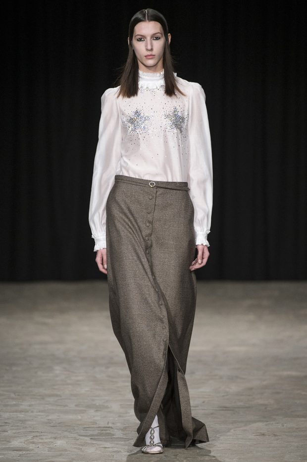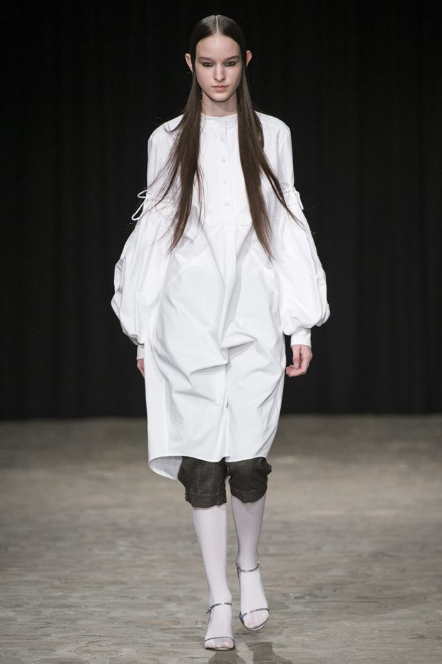 The Autumn/Winter 2017 collection features elegant, sharp and delicate looks, with couture-like details infusing some discrete and sophisticated romance. Tailoring and sartorial techniques are central to this season’s story. The style is clean and assertive, intently not accessorized. – from Veronique Branquinho