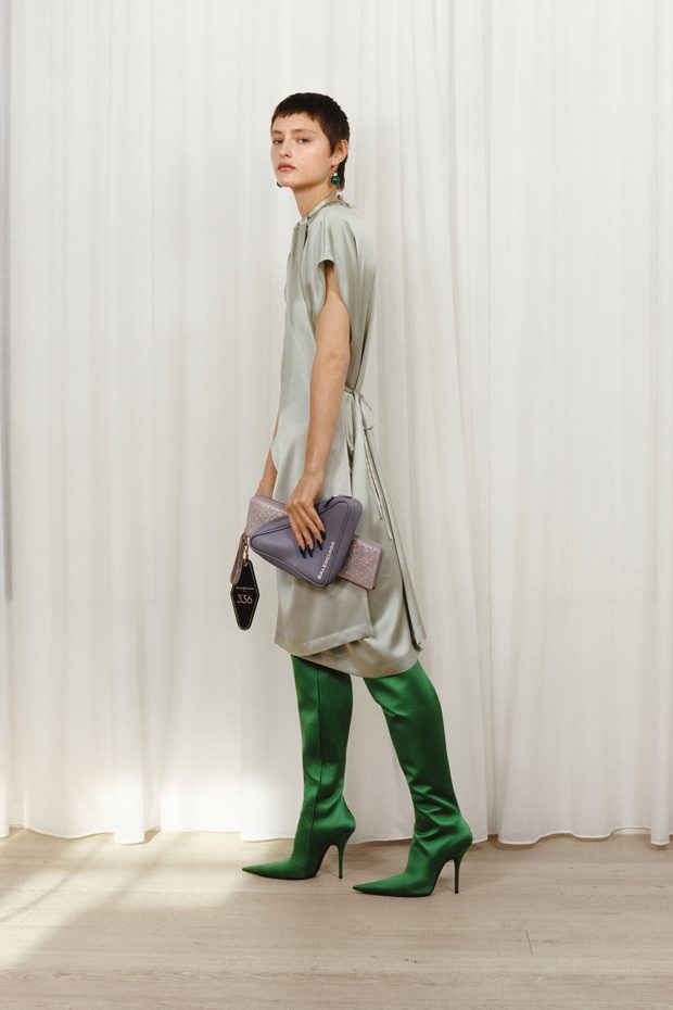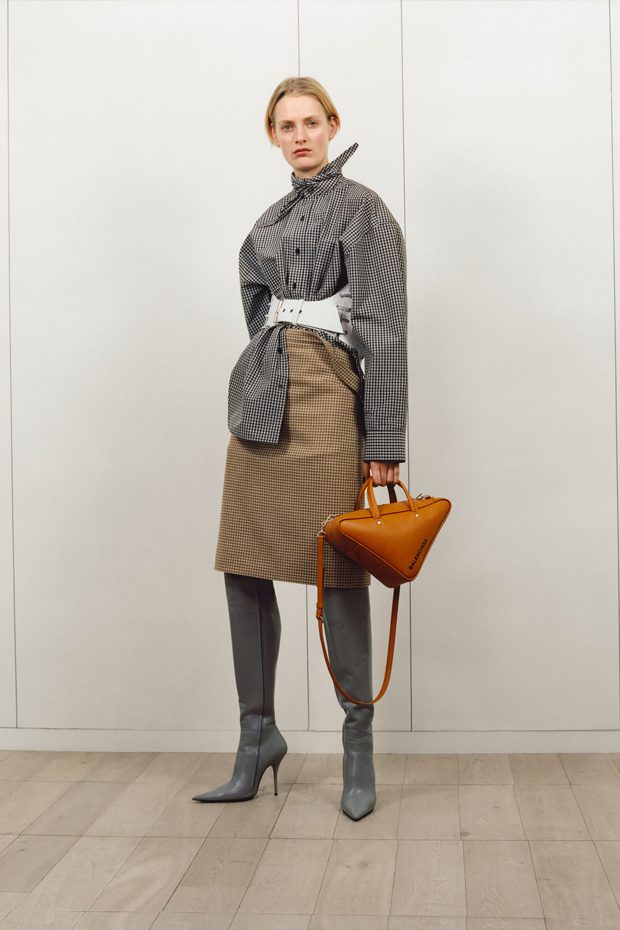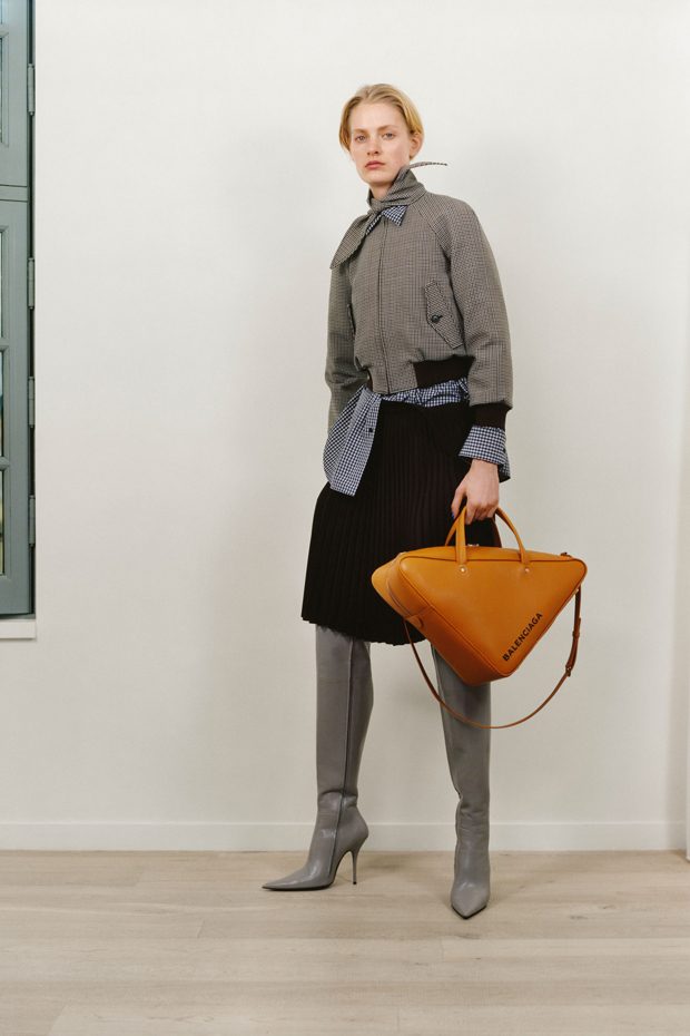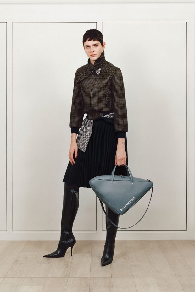 Discover Demna Gvasalia’s Pre-Fall 2017 collection for BALENCIAGA, featuring the house’s recognisable pointed boots, 70s-inspired florals, Bazaar market bags.