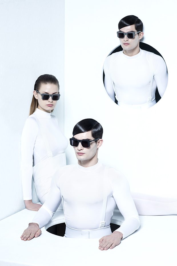The latest releases from VAVA Eyewear follow the concept of focusing on edgy design and combining this with the colours and shapes of the post-industrial philosophy of the brand. It is all about squares and symmetries. VAVA deliberately uses non-human shapes to create a new aesthetic of eyewear. The glasses gently flatter the features of the face and deflect the natural composition at the same time. Thereby it becomes what VAVA stands for; timeless, edgy, mature and post-industrial. – from VAVA