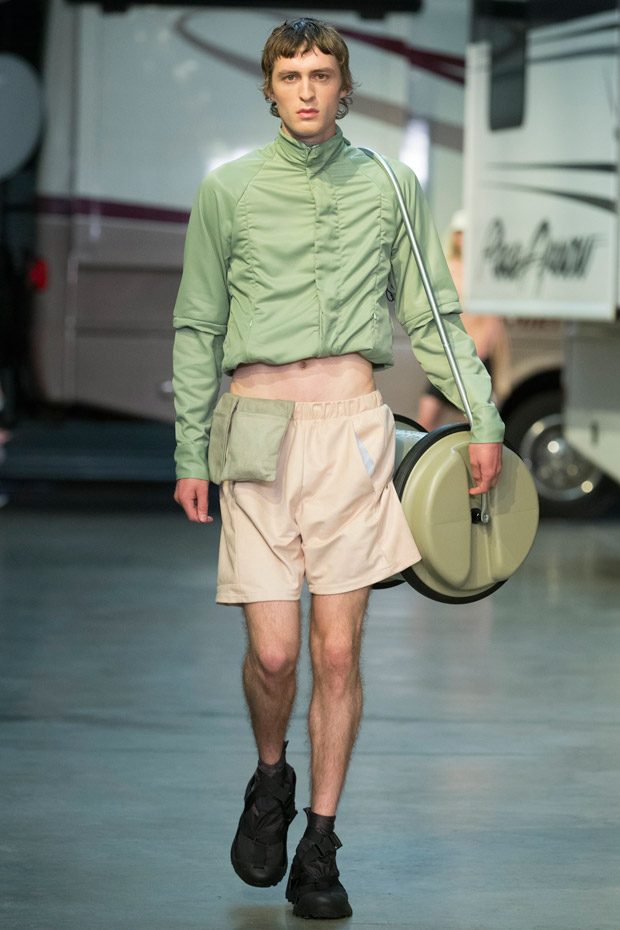 “The Collection’s colours, prints and fabrications are inspired by the tension between the synthetic interiors of motorhomes and the natural world beyond. The season is defined by transitional states: between functional and decorative, real and artificial, restriction and freedom.