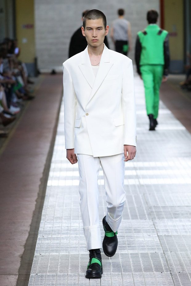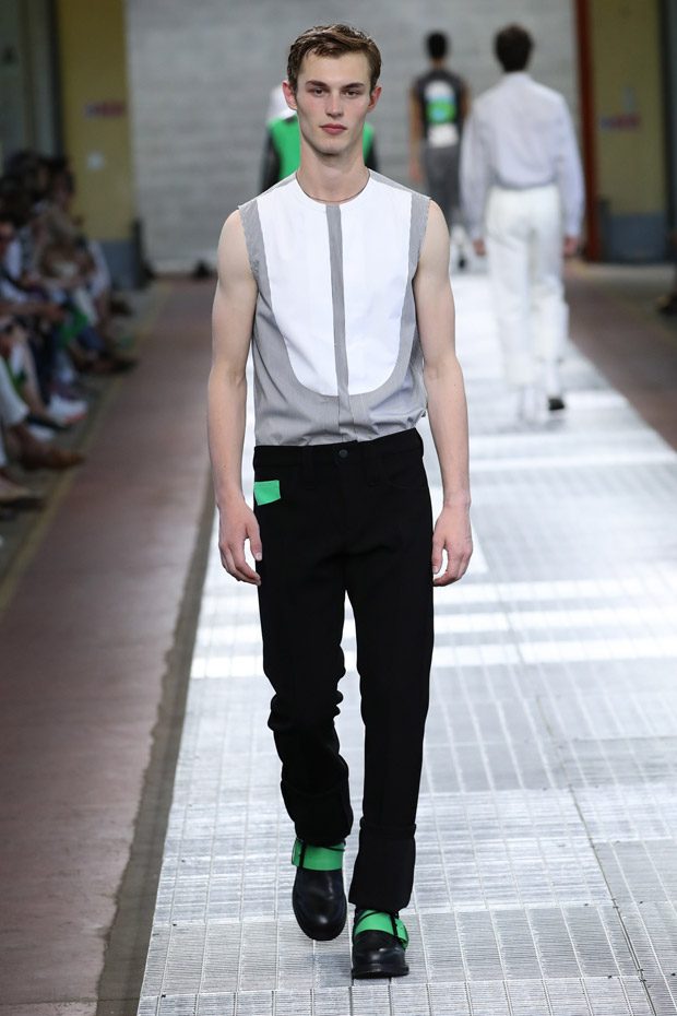 “An authoritative and authentic take on the masculine aesthetic, according to the Dirk Bikkembergs codes. Creative director Lee Wood continues his own path of redefinition of the Bikkembergs identity, looking at the foundations while moving forward. Truth, manliness and assurance are his chosen bywords. A man, confident and grown up, is his chosen character.