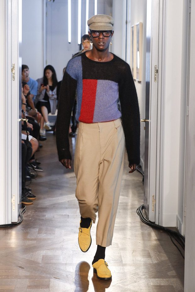 “The runway travels through the various Matignons of Christie’s, wherein each room is curated with Henri Alexander’s paintings—a series of massive valet tickets and psychological process diagrams attacked by violent and naïve gestures.