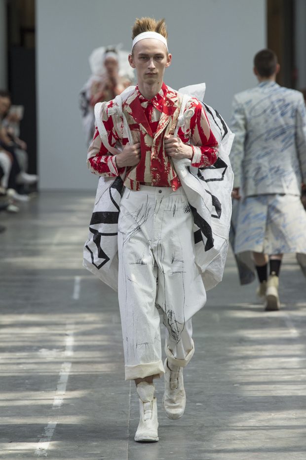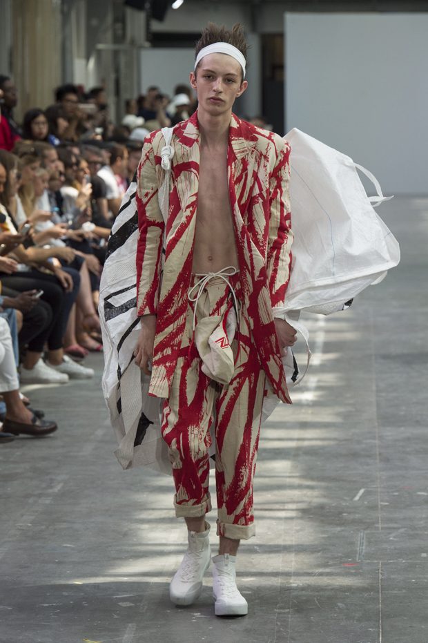 Shangguan Zhe presented his Spring Summer 2018 collection for SANKUANZ during the recently wrapped up Paris Fashion Week. Confronting antiquity and modernity, the collection is an homage to the late American artist Cy Twombly.