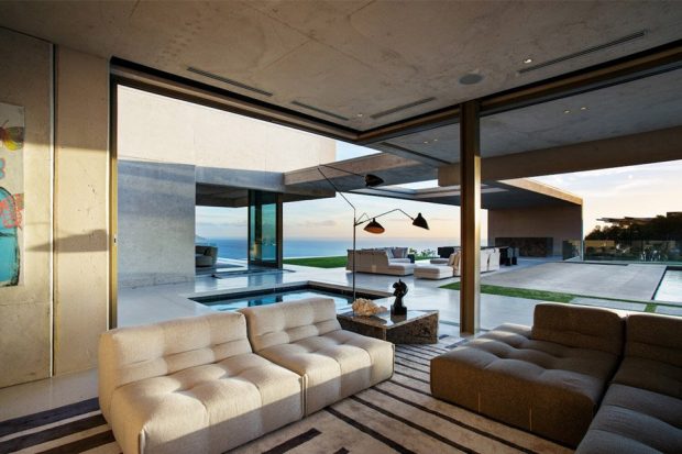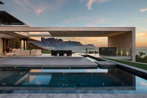 It is hard to run away from luxury in the stunning Cape Town hill-side house designed by SAOTA Studio in collaboration with interior designers from Studio Parkington architecture practice. The contemporary yet extremely luxurious villa is located on a hill top overlooking the Robben Island, Camps Bay and The Twelve Apostoles.