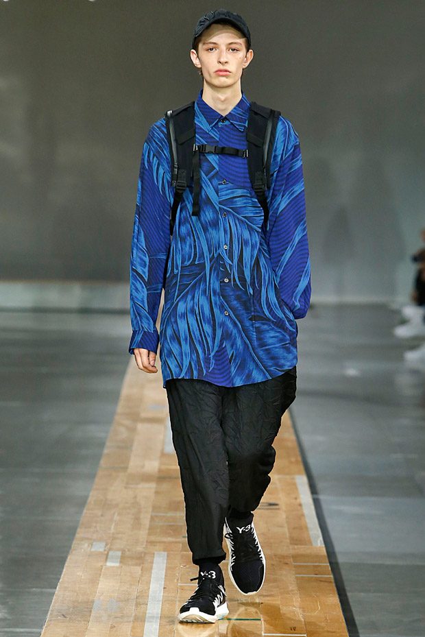The legendary artist Mr. Taishi Hayashi—a Y-3 collaborator since the beginning—returns with a sumptuous series of all-over botanical prints, which swirl across long button-down shirts, sarouel pants, cropped jackets, and satin tanks. On the opposite end of the aesthetic spectrum, a black-and-white story in bold, cut-and-sew stripes lends new life to an adidas signature.