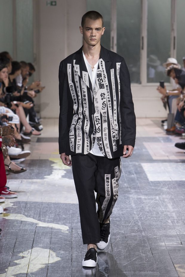Yohji Yamamoto presented his Spring Summer 2018 menswear collection during the recently wrapped up Paris Fashion Week. Drawing the inspiration from the painter’s studio and the graffiti art, the collection features lots of colors, patterns, graphic designs and writings.