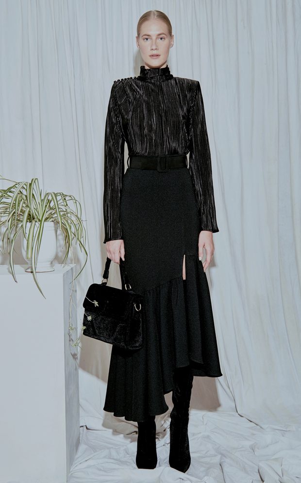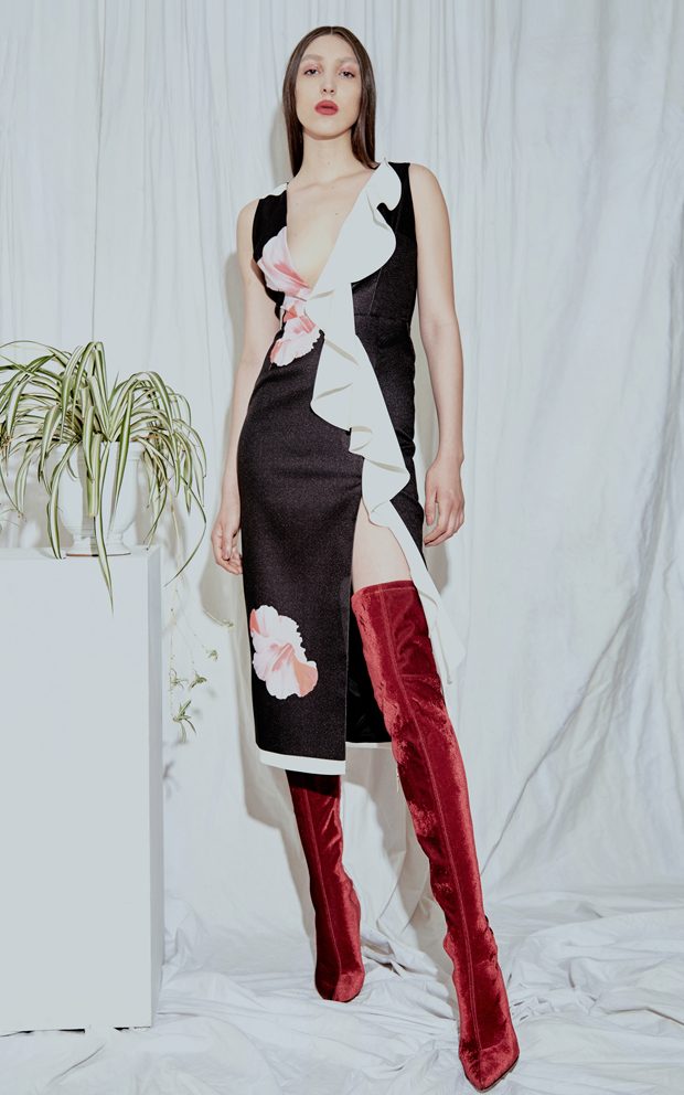 This season Alfredo Martinez collaborated with fellow Mexican visual artist Ricardo Luevanos showcasing elegant pieces with prints developed exclusively for the brand. DIONE, Mexican company, collaborated as well with the accessories: bags and shoes of the collection.