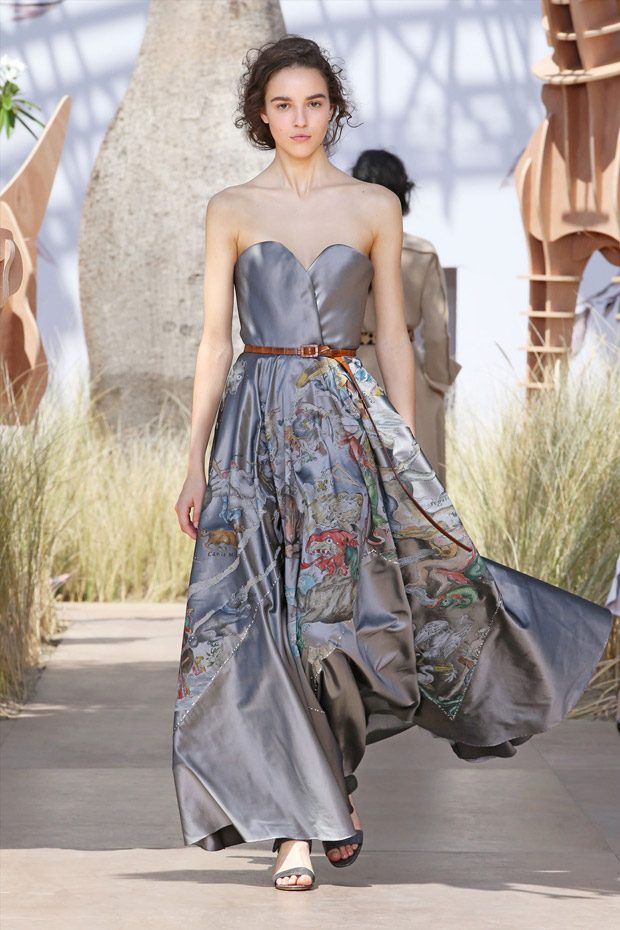“On one hand, there’s the 1953 Albert Decaris etching that turned up in the Dior archives, a map of the five continents that retraces the House’s expansion around the world. On the other, there’s the couturier’s assertion in his autobiography: “A complete collection should address all types of women in all countries.” Both of these inspirations guided Maria Grazia Chiuri, the Artistic Director of women’s collections, in creating the Autumn-Winter 2017-2018 Haute Couture collection that celebrates the House’s 70th anniversary.“
