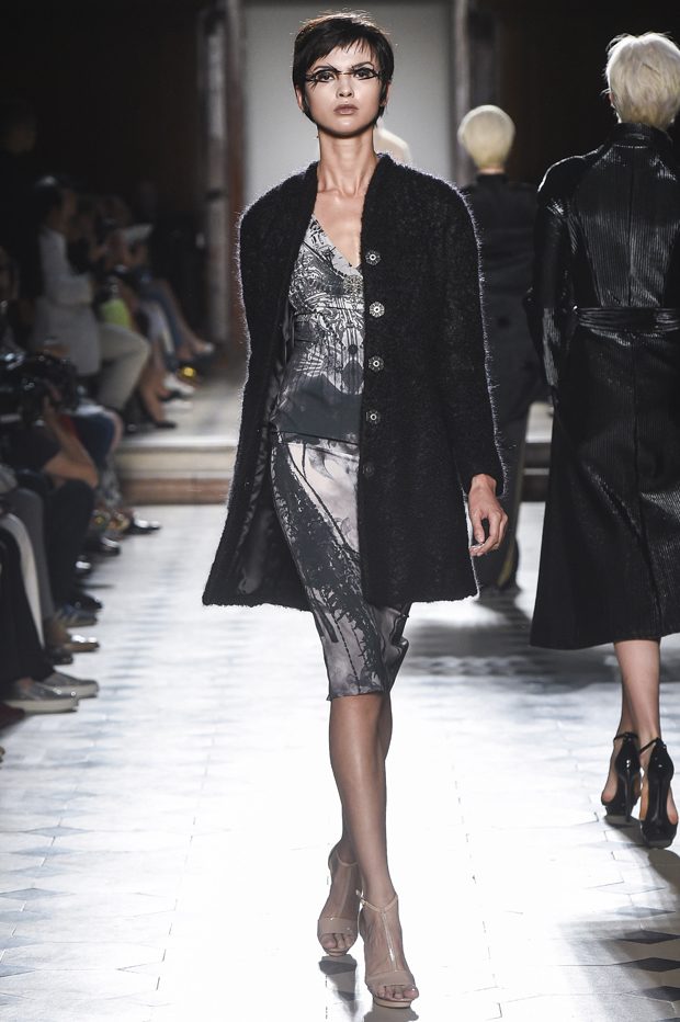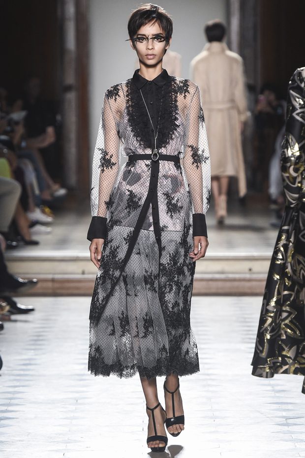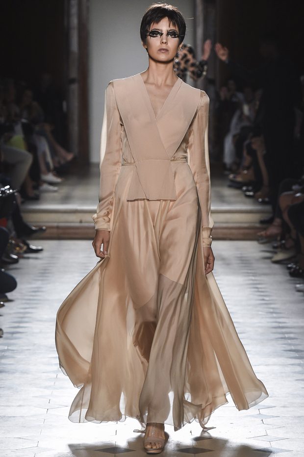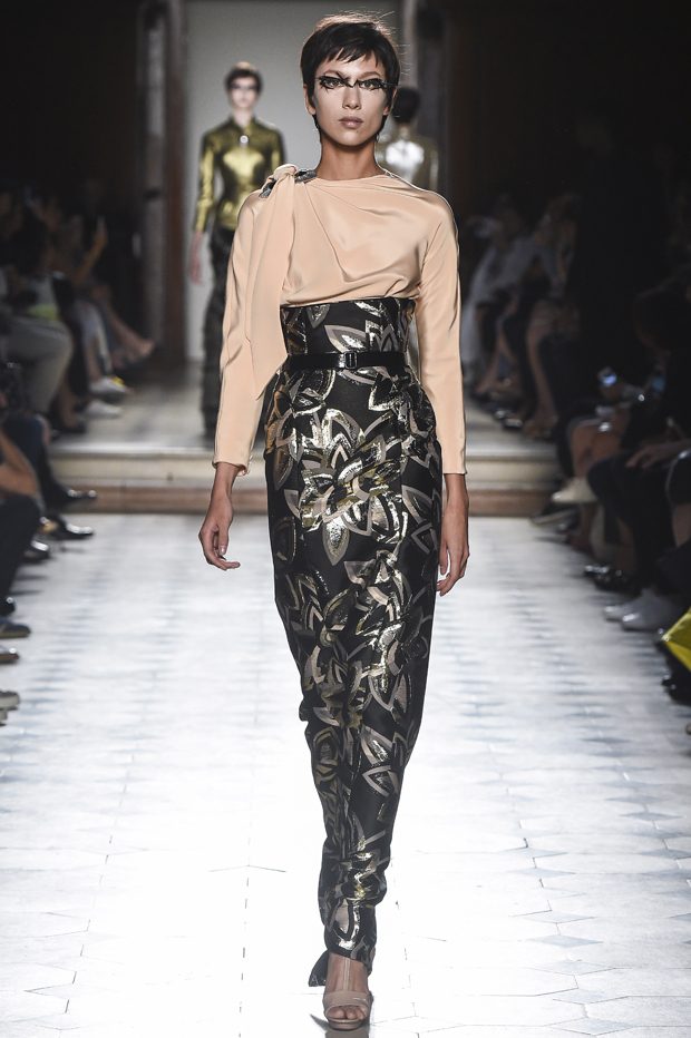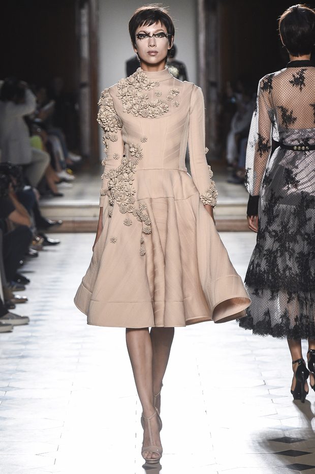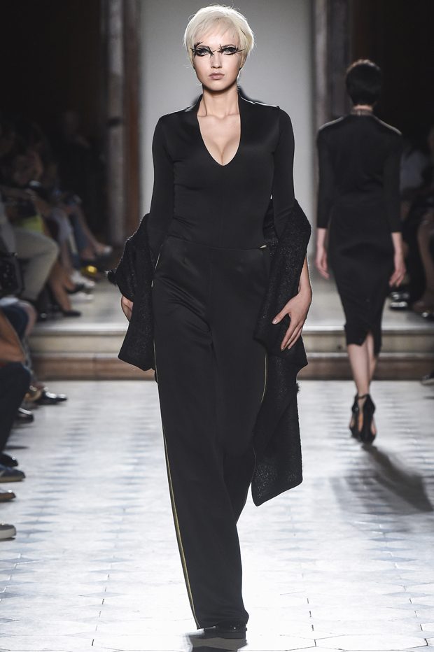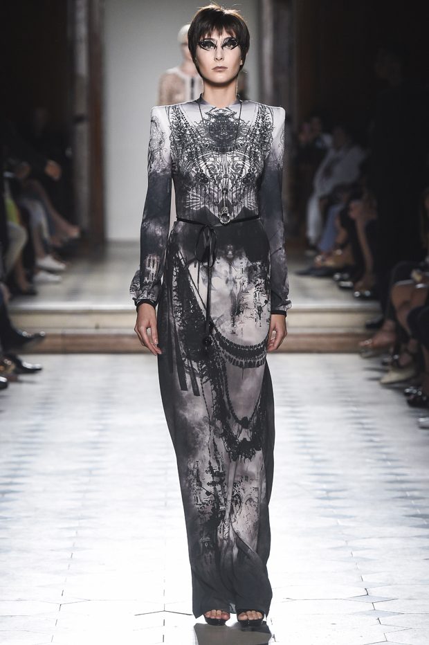 Julien Fournié pays tribute to the ladies with a destiny who have become his customers. Far from any fashion trend and a thousand leagues away from vulgar red carpet outfits, these empowered ladies represent genuine fashion icons. The couturier is proposing to these muses his expert cut looks which help lift up the spine to define the elegance of timeless Haute Couture in a contemporary expression with some delicate Gothic accents. – from Julien Fournié